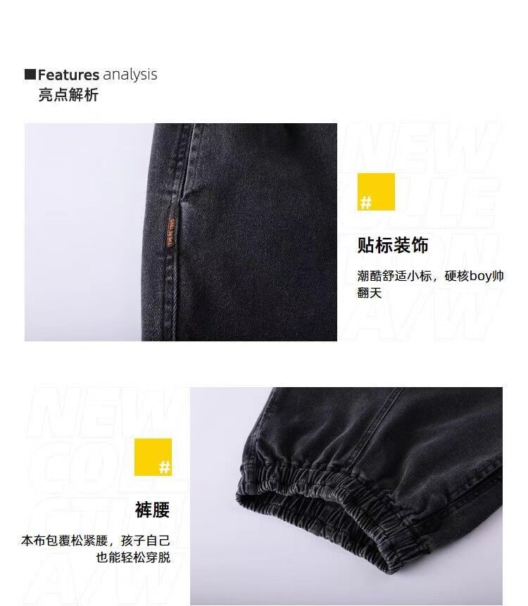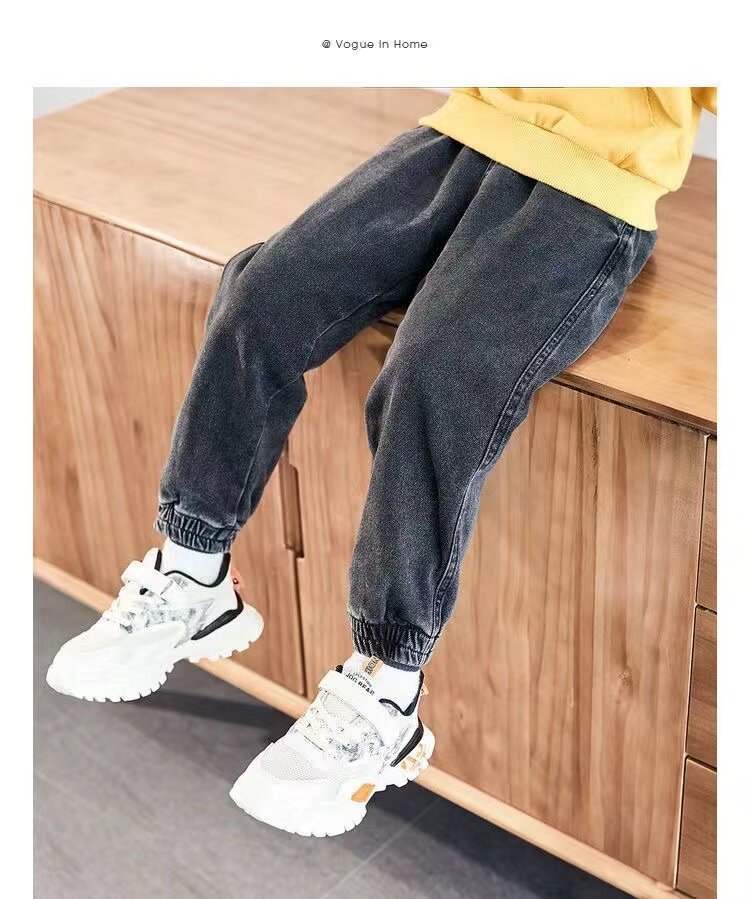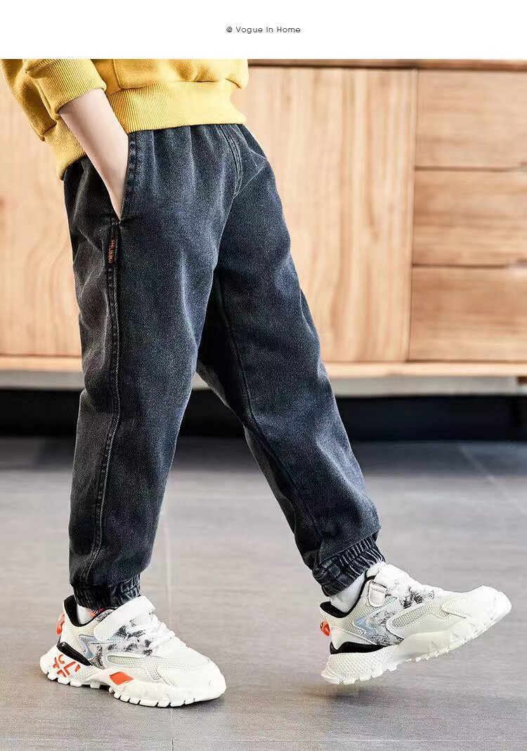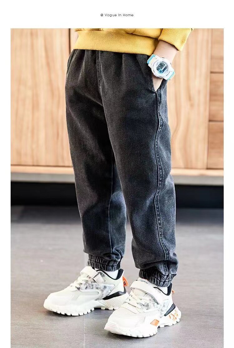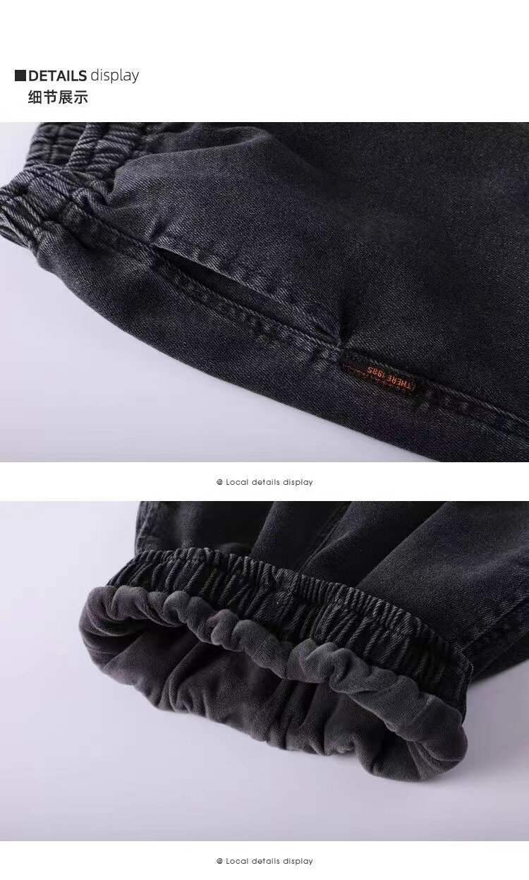 데님 바지 2024 가을과 겨울 새로운 큰 소년 원피스 벨벳 느슨한 패션 기모 따뜻한 데님 바지스토어 가기