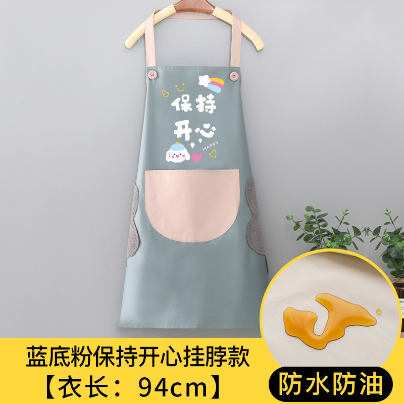 • 파란색 배경과 회색으로 행복하게 지내세요(리브 프린트 방수 및 지울 수 있는 작업복)