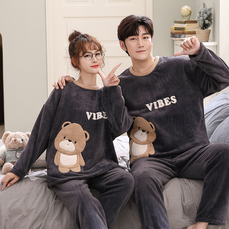 커플 잠옷 겨울 산호 양털 기모 두꺼운 따뜻한 플란넬 가을과 겨울 바깥 옷을 입고 남녀 홈 세트스토어 가기