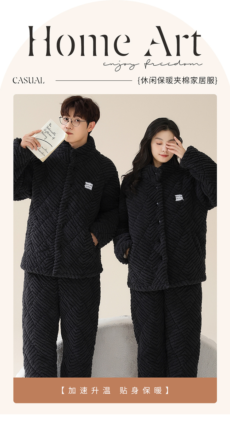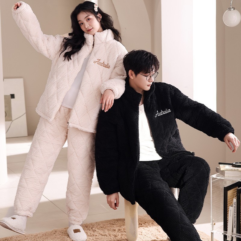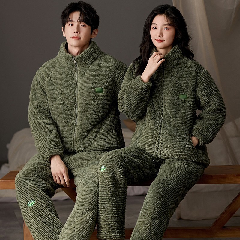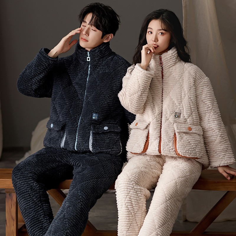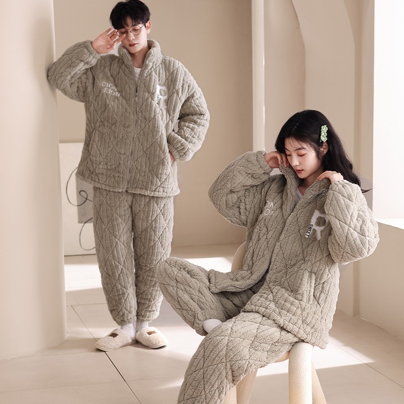 남성과 여성의 겨울 기모 두꺼운 퀼트 커플의 홈 의류 세트 가을 및 겨울 플란넬 파자마 카디건