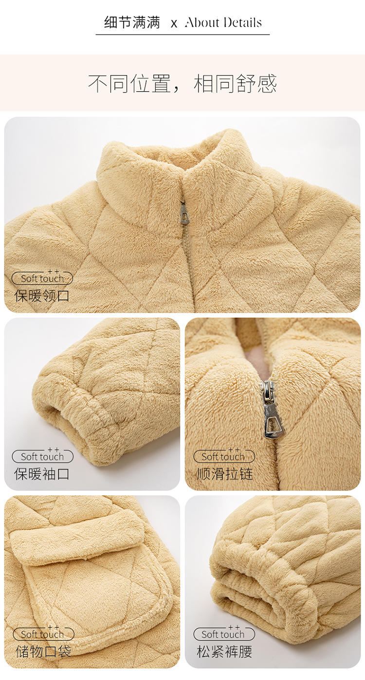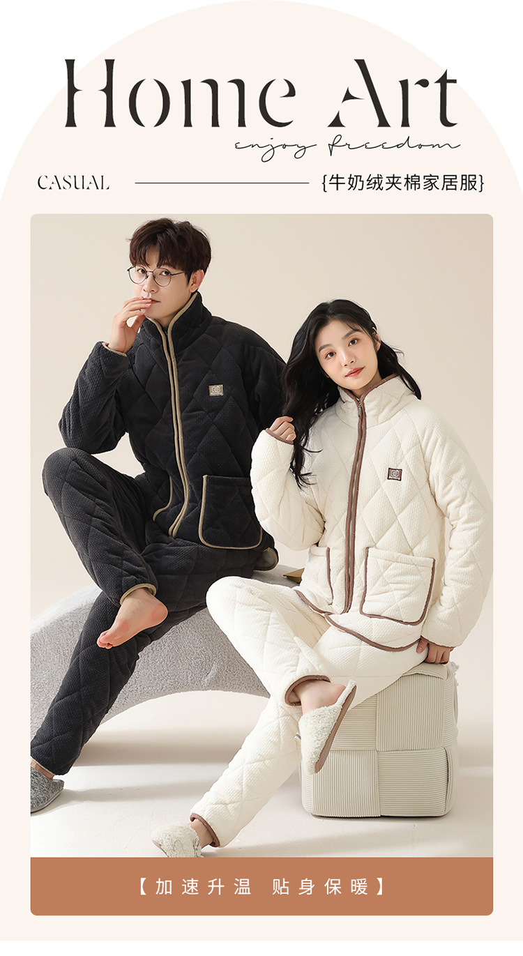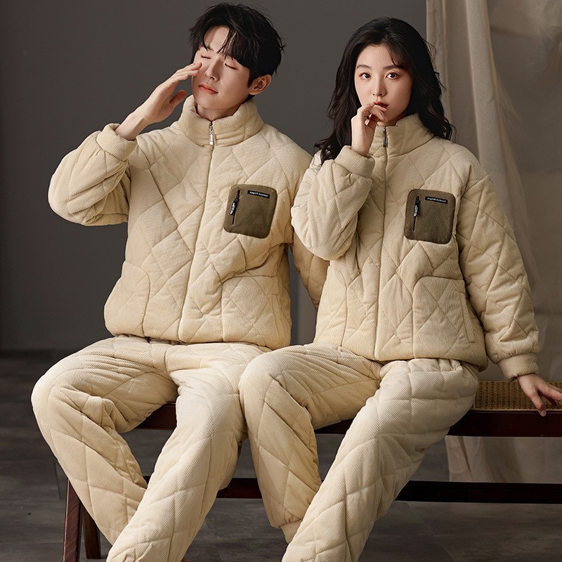 남성과 여성의 겨울 기모 두꺼운 퀼트 커플의 홈 의류 세트 가을 및 겨울 플란넬 파자마 카디건
