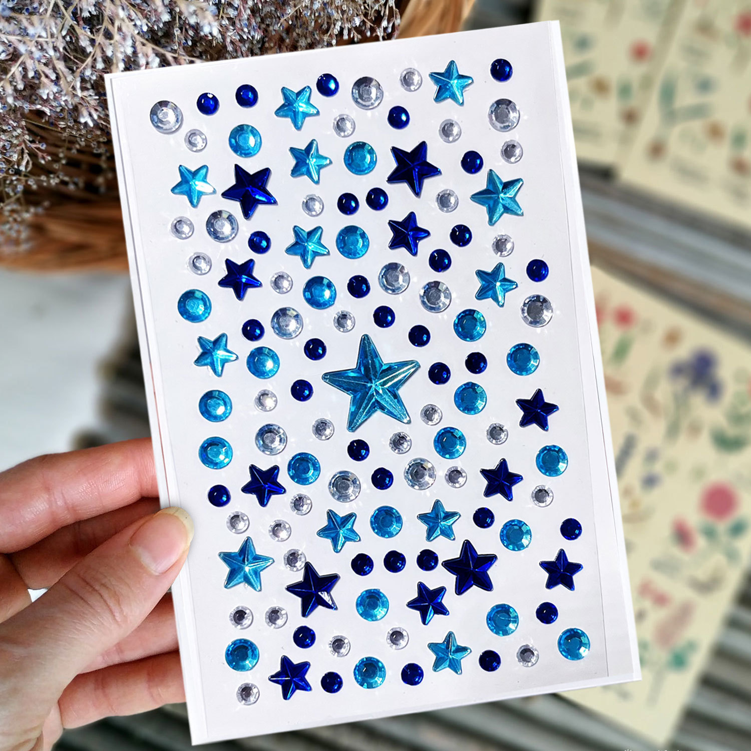 Ins 바람 콘서트는 5 점 별 블루 페이스 쥬얼리 스티커 다이아몬드 스타 다이아몬드 메이크업 아크릴 보석 다이아몬드 스티커를 도와야합니다.스토어 가기