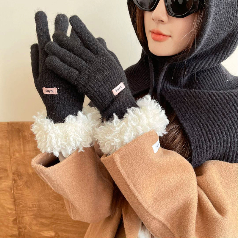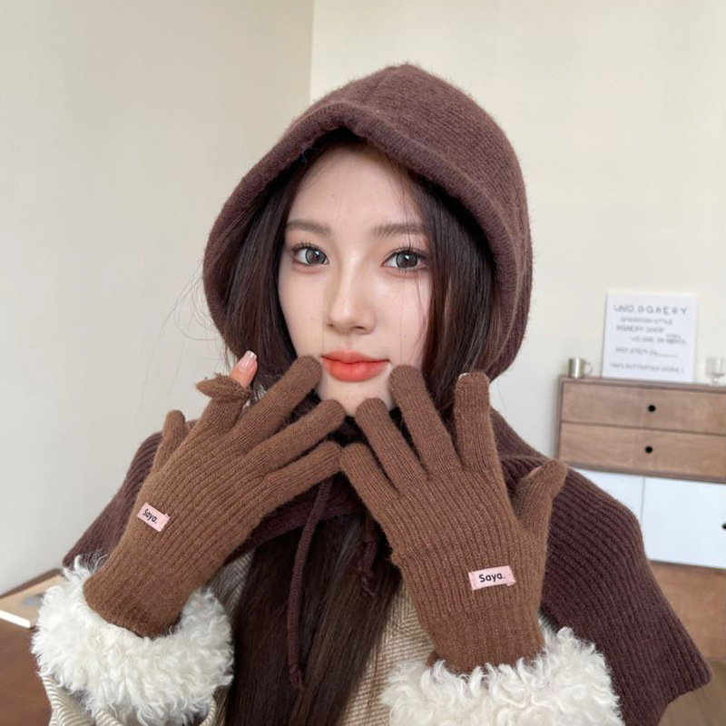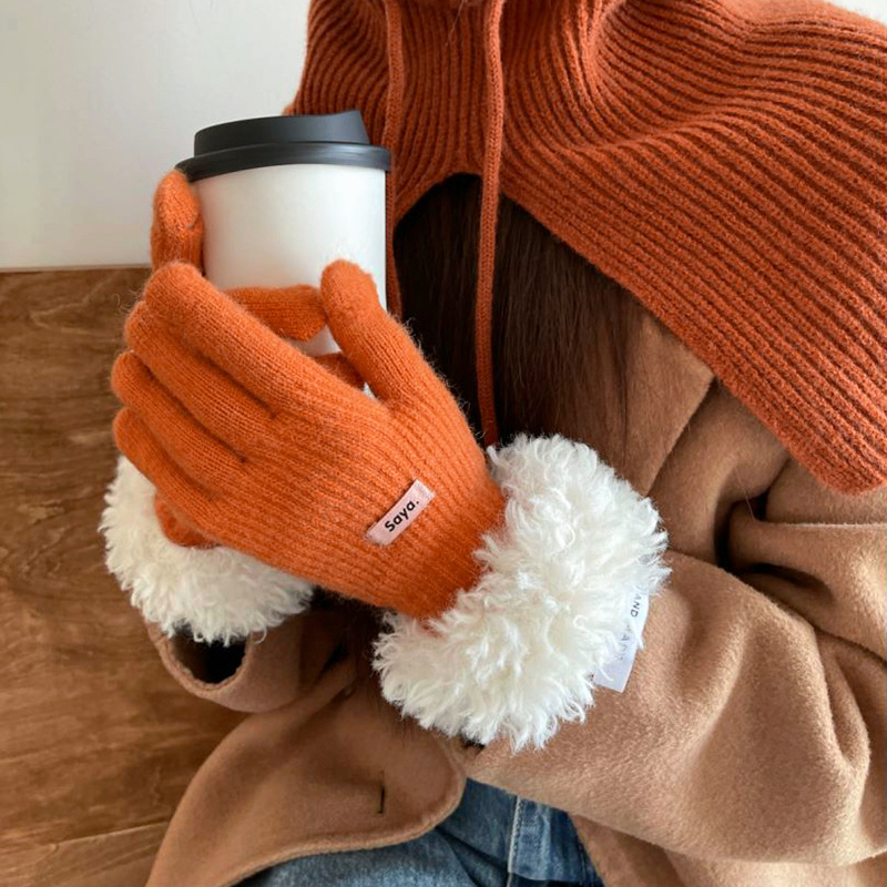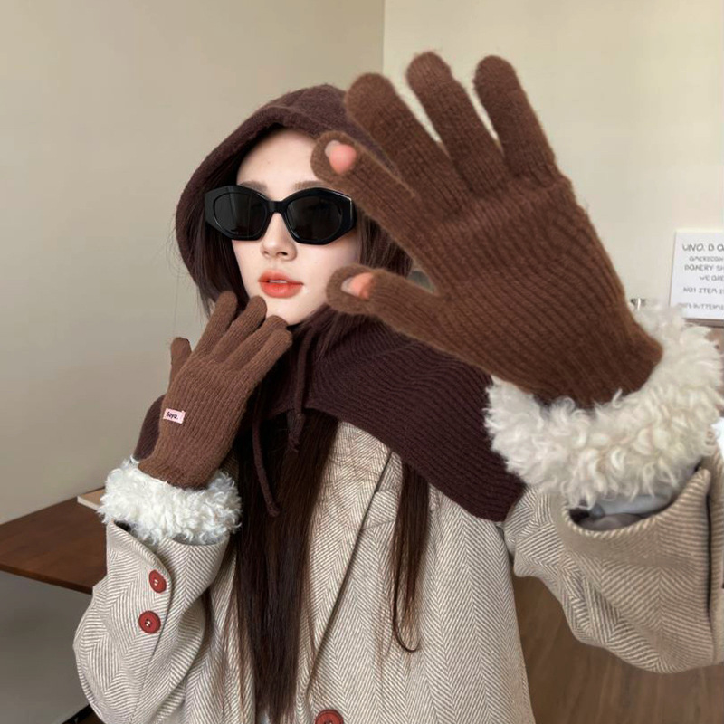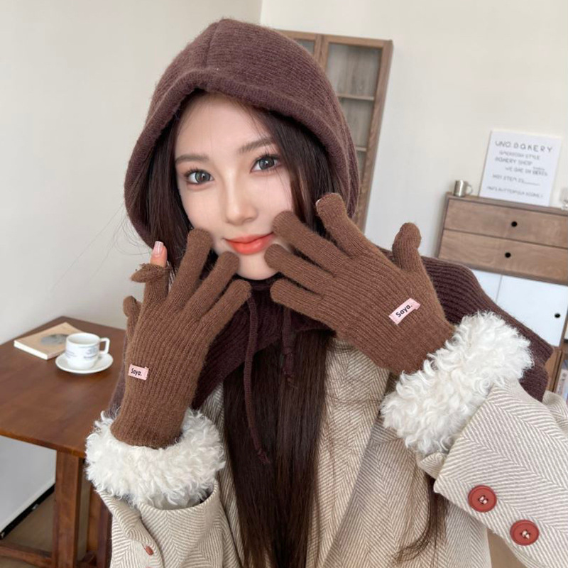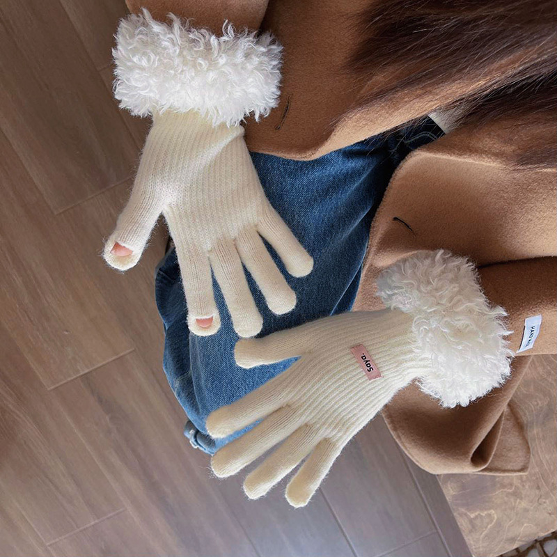 한국식 마오 마오 서양식 패션 니트 양모 장갑 터치스크린 여성의 겨울 따뜻한 사이클링 이슬 두 손가락 풀백 손가락스토어 가기