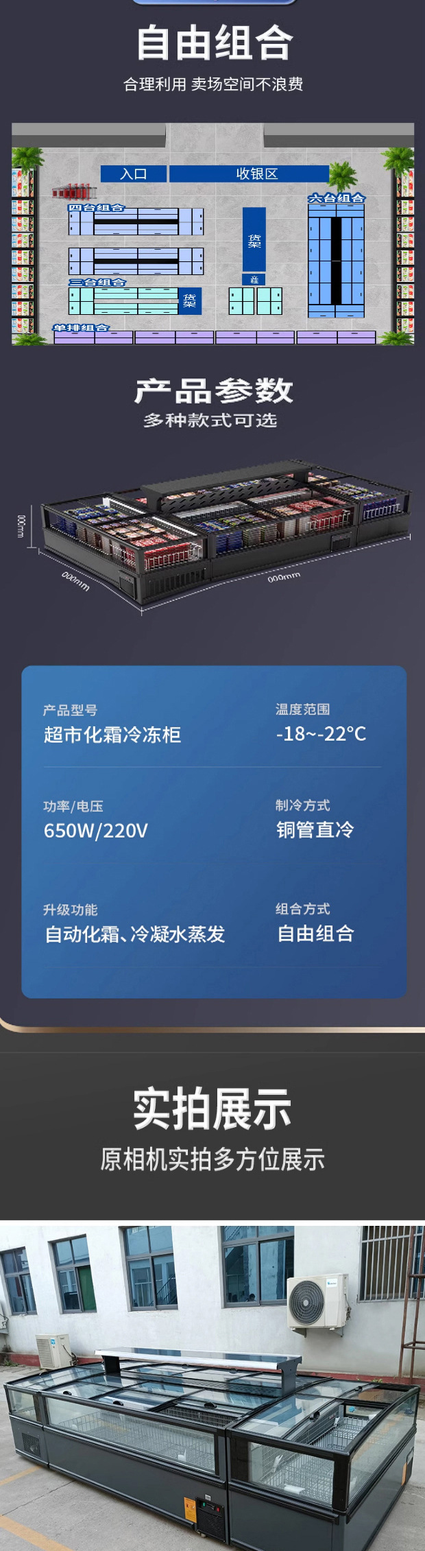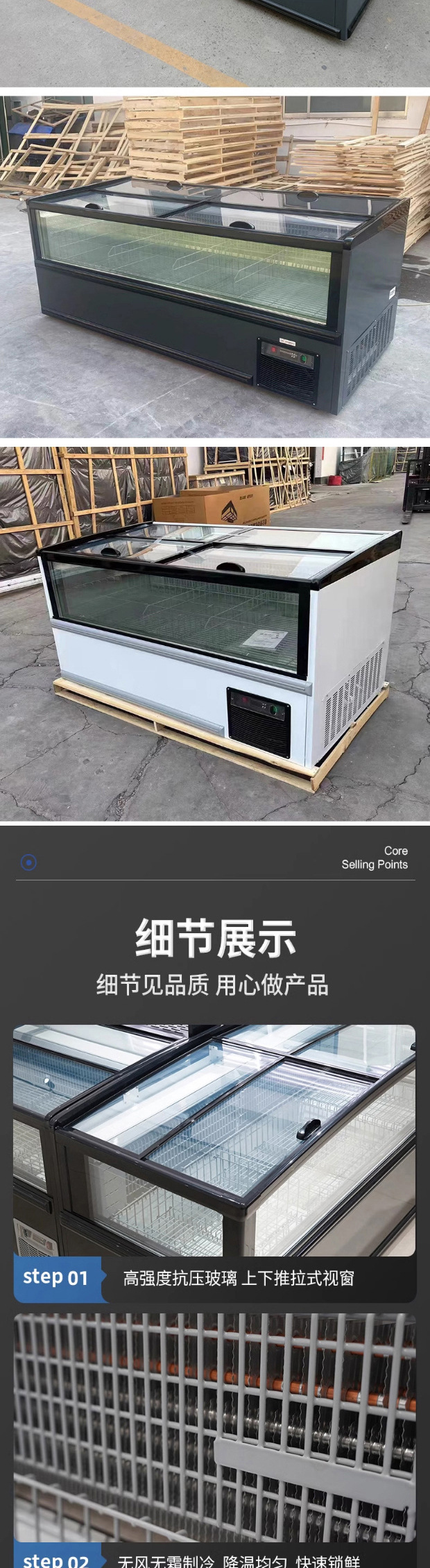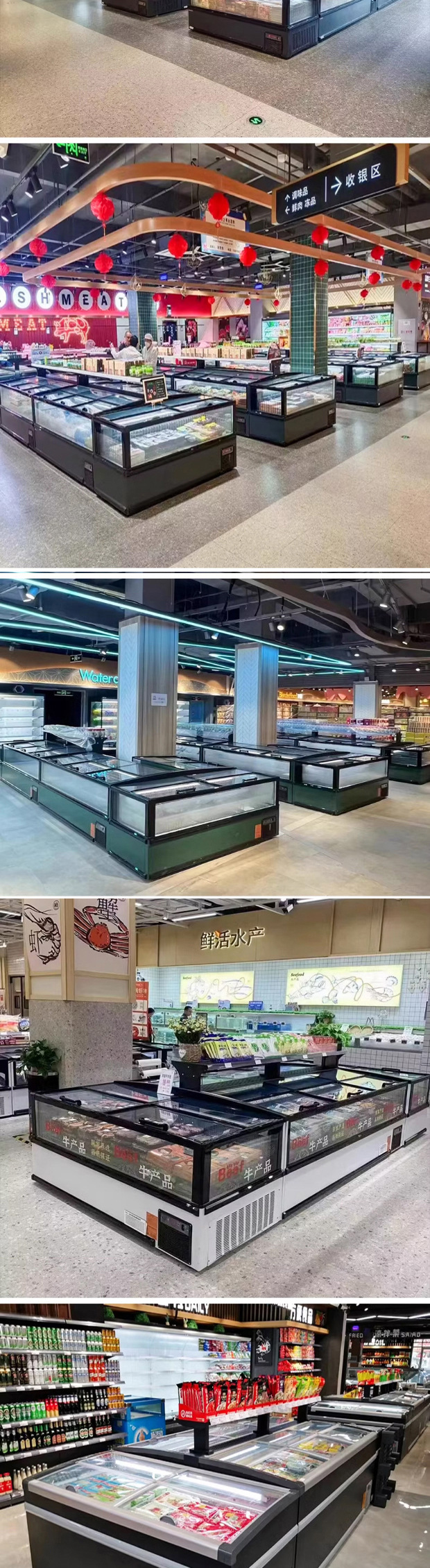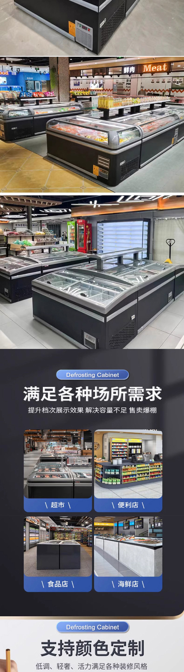 슈퍼마켓 조합 섬 캐비닛 냉동고 상업용 대용량 수평 디스플레이 캐비닛 아이스 케이크 캐비닛 냉동 해산물 프로스트 냉장고스토어 가기