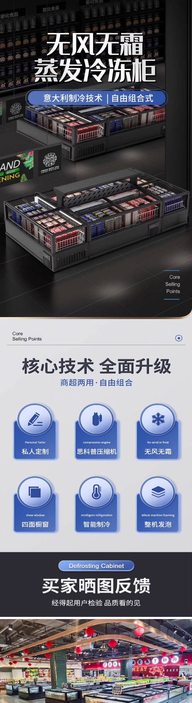 • 파노라마 바람 없는 대형 창 조합 섬 캐비닛 [단면 1.9m 개 + 직선 캐비닛 1.45m 개]