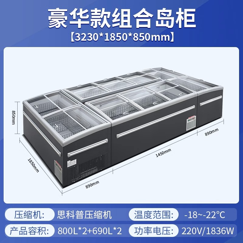 슈퍼마켓 조합 섬 캐비닛 냉동고 상업용 대용량 수평 디스플레이 캐비닛 아이스 케이크 캐비닛 냉동 해산물 프로스트 냉장고