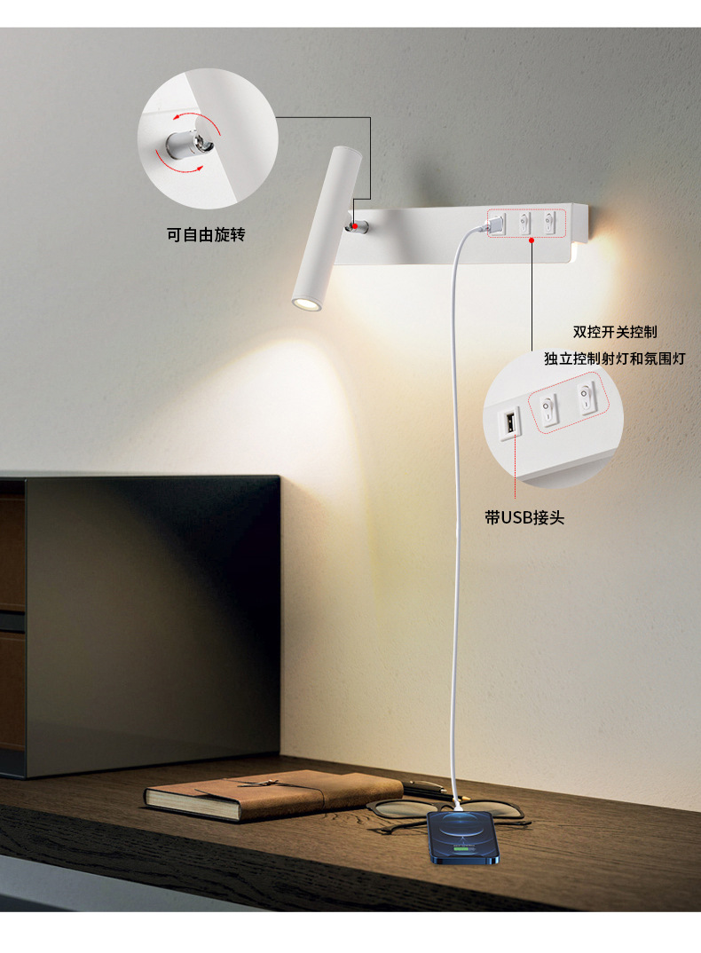 국경 간 북유럽 창조적 인 거실 배경 벽 스포트라이트 전체 스펙트럼 눈 보호 독서 침대 옆 벽 램프 통로 장식 램프