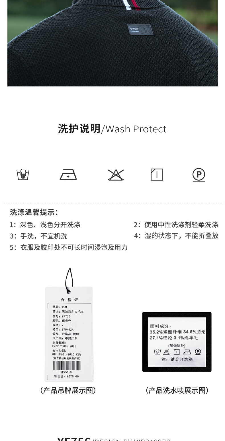 PGM 골프 의류 남자 스웨터 V-Neck 옷깃 스포츠 따뜻하고 편안한 풀오버 모직 니트웨어 탑