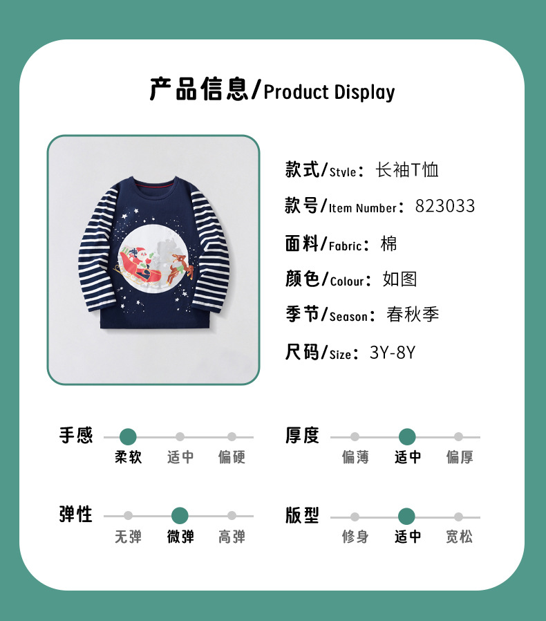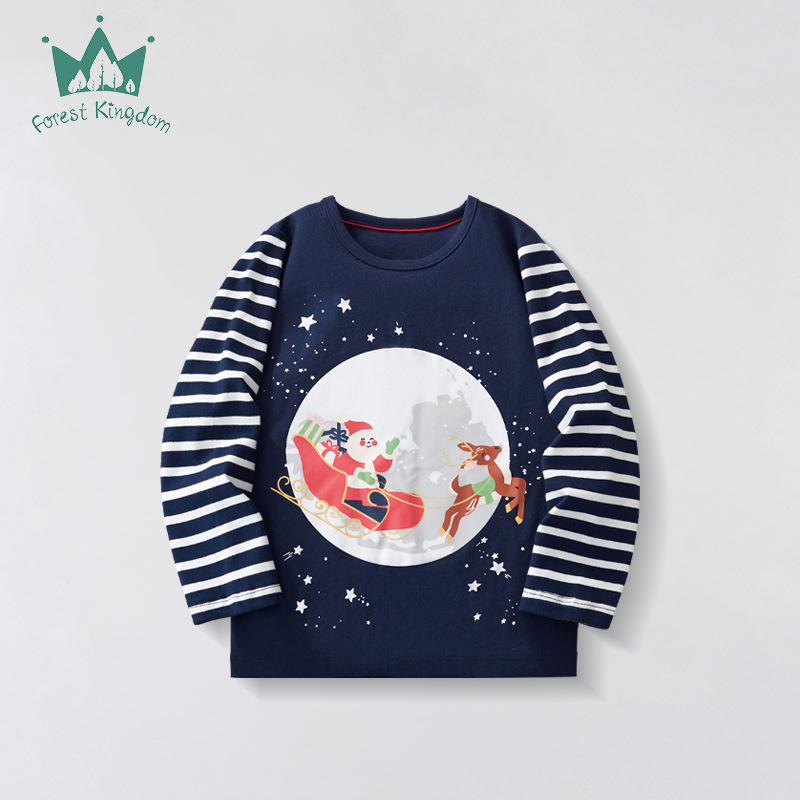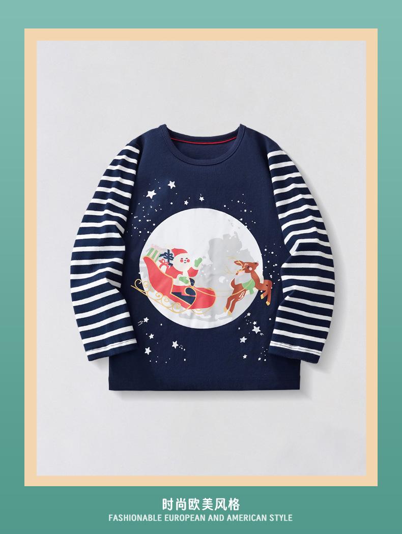 봄과 가을 2024 새로운 소년 긴 소매 티셔츠 크리스마스 유럽과 미국 스타일의 어린이 탑 티셔츠 아동복스토어 가기