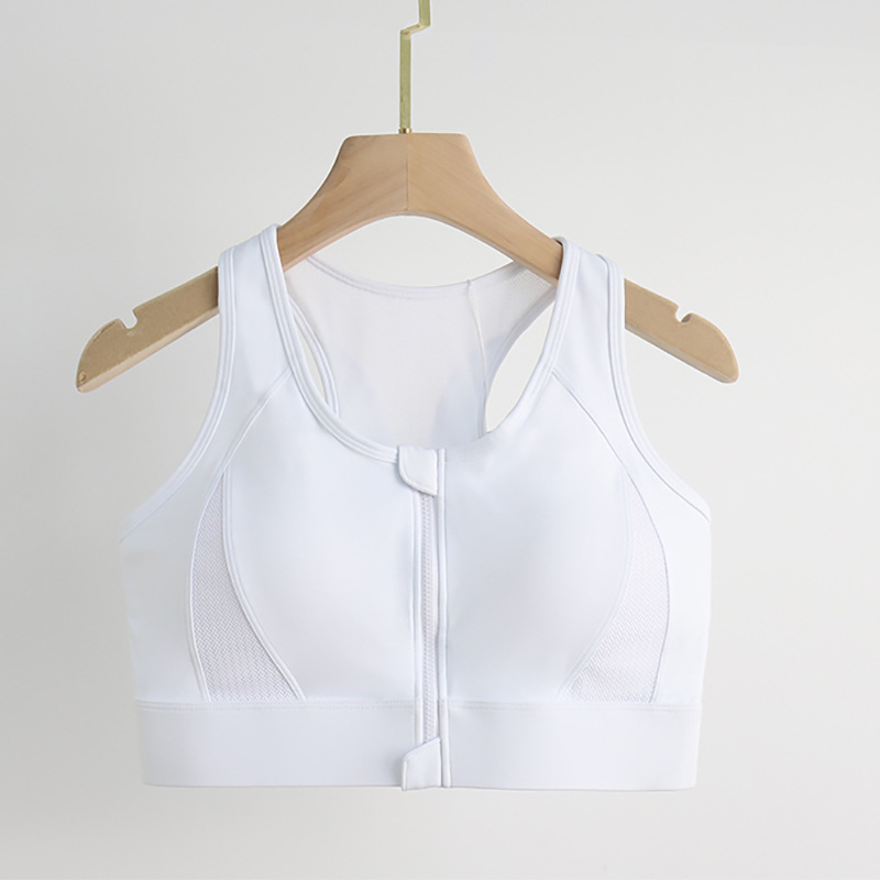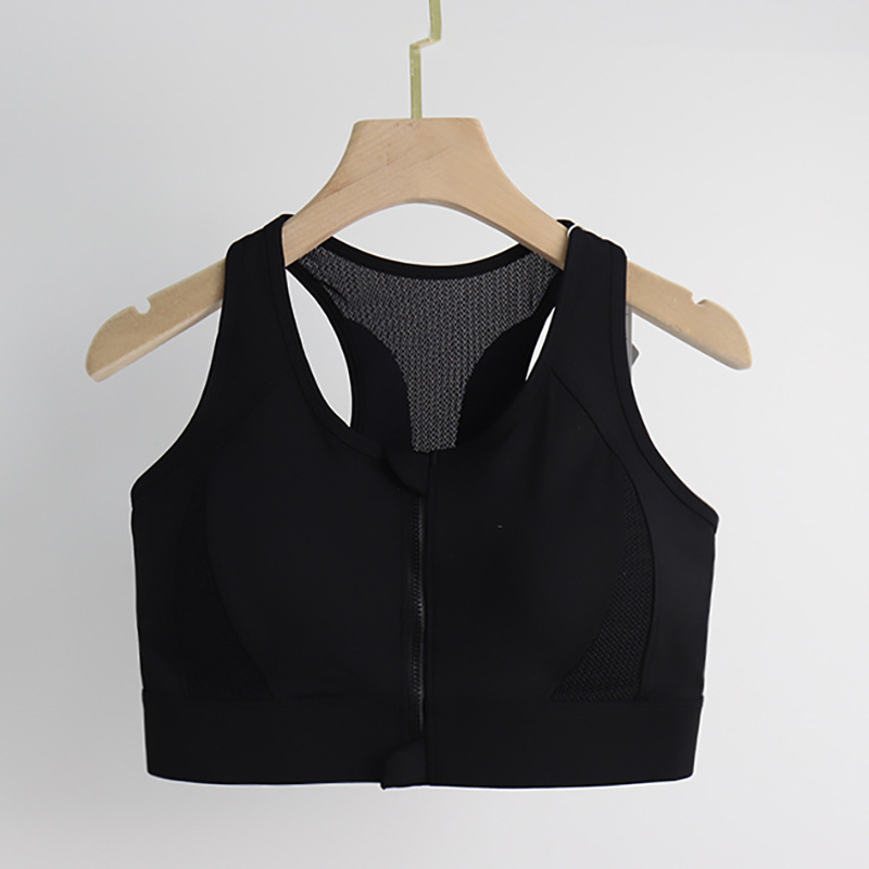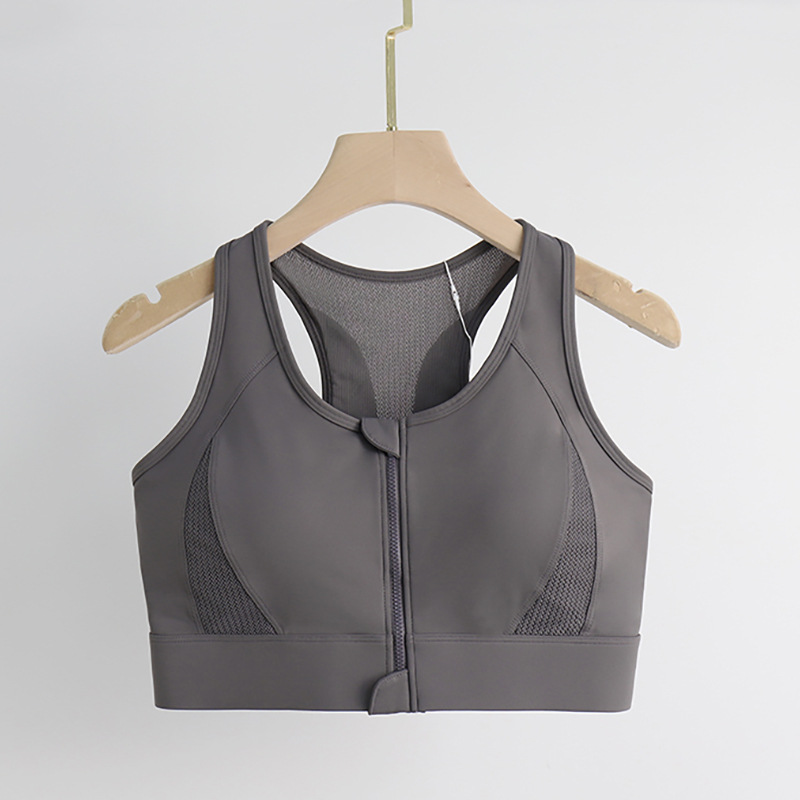 [엄격한 선택] 여름 앞 지퍼 피트니스 스포츠 속옷 여성 고강도 메쉬 뷰티 백 고정 컵 요가 속옷