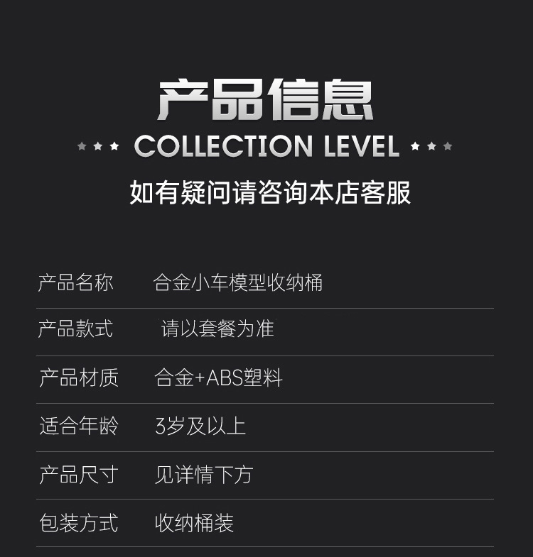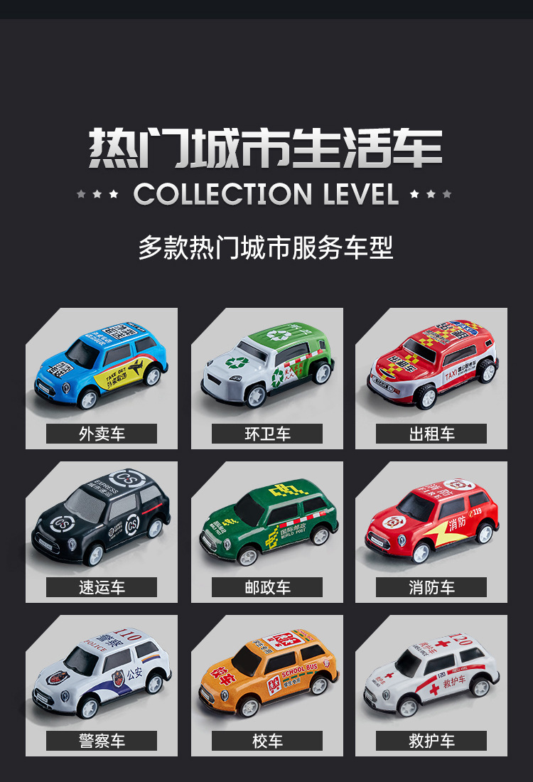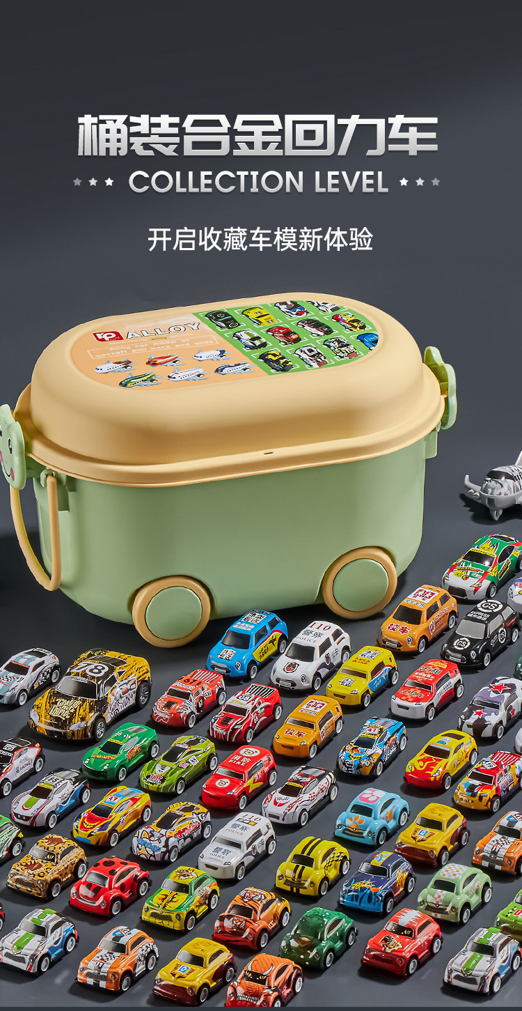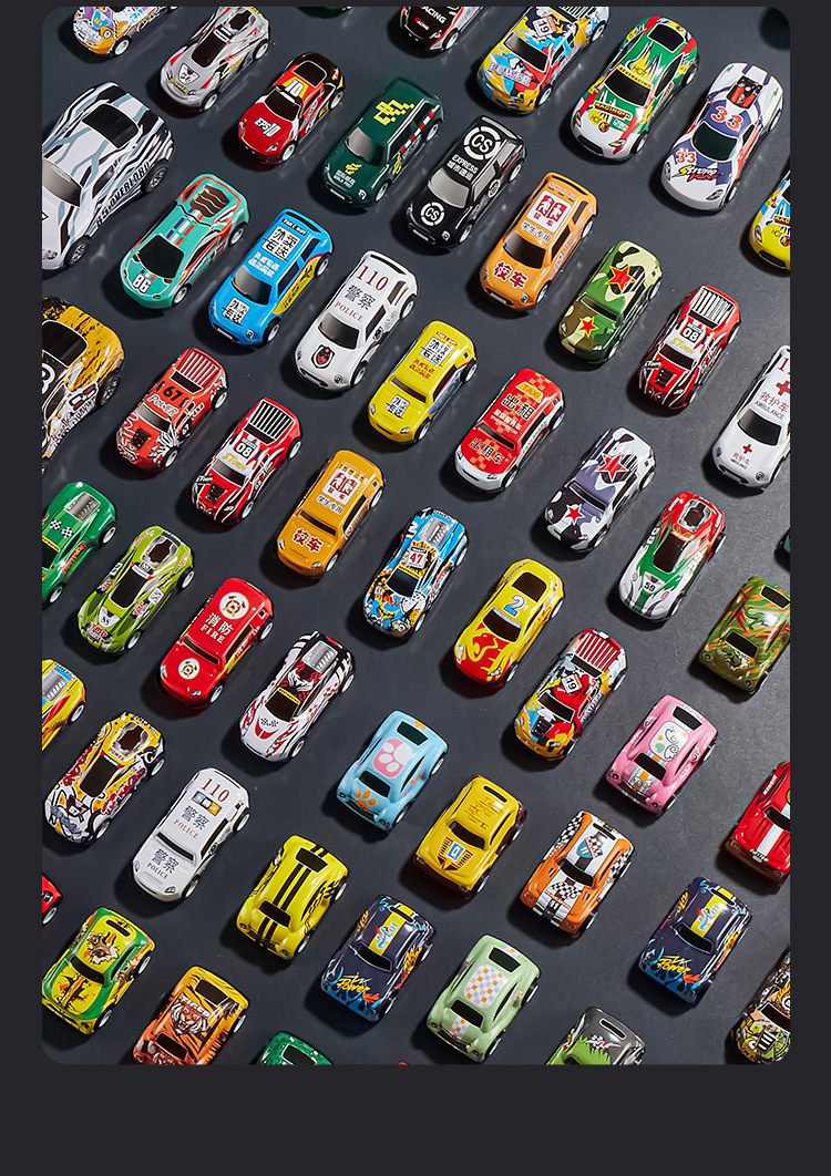 • 6.8cm 풀백 차량 50대 + 금속 오프로드 차량 2대 + 보관통 + 통신판매 상자