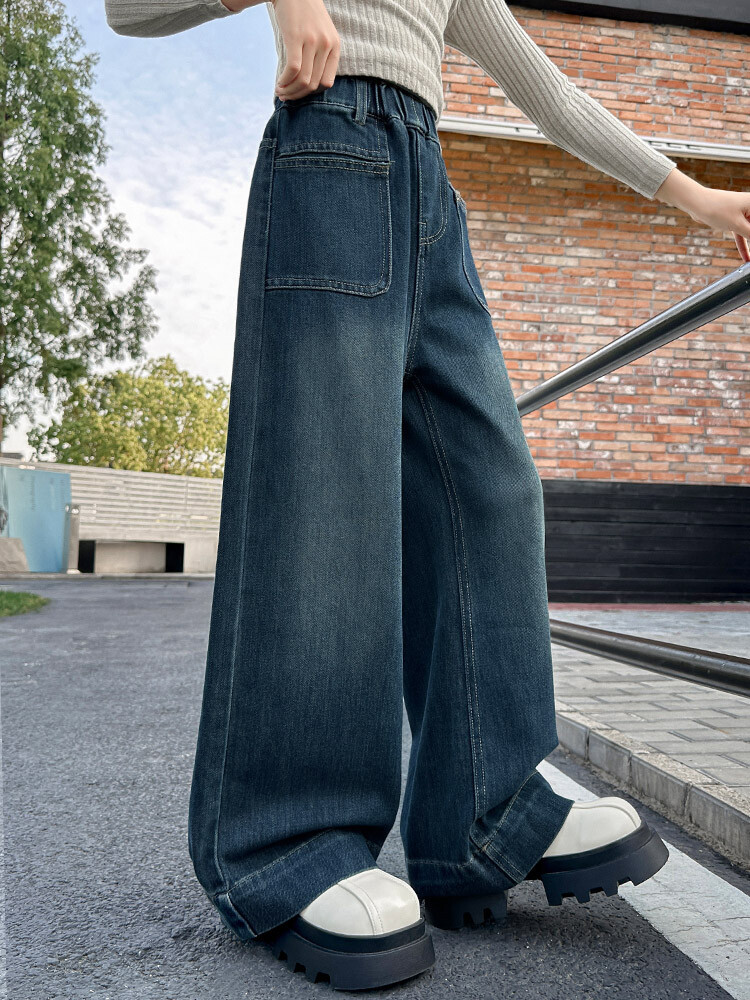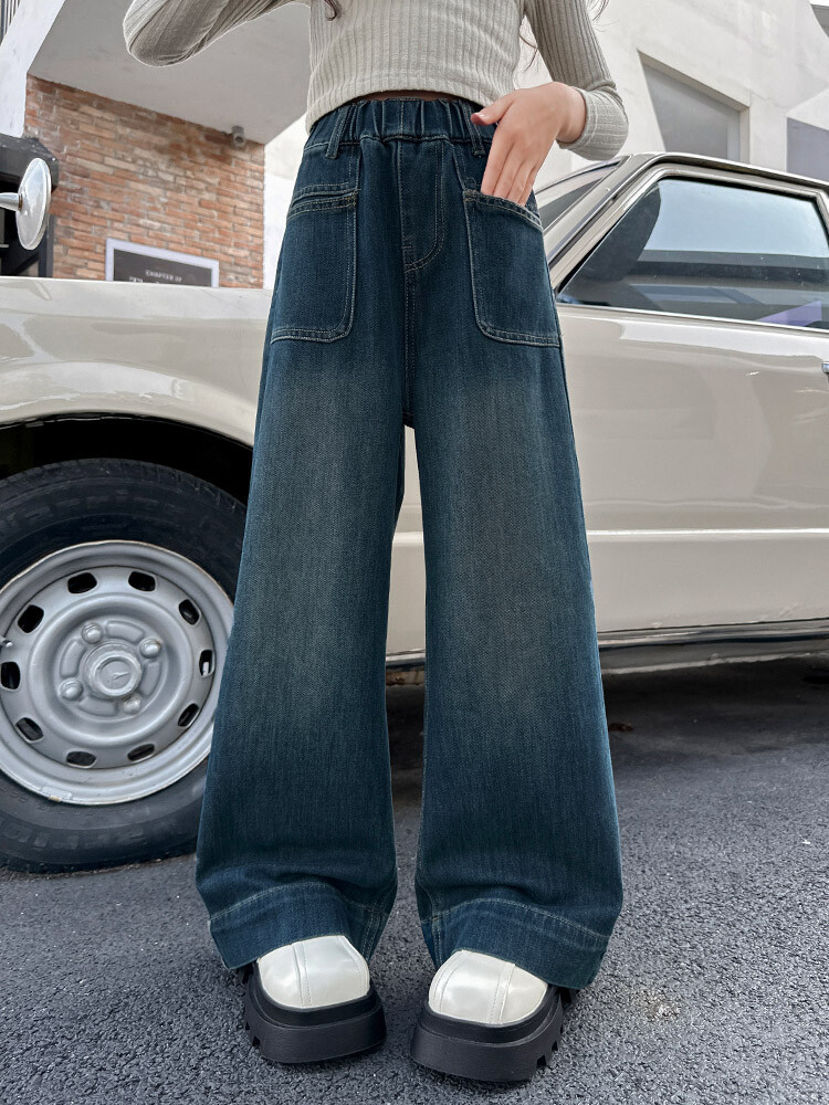 봄과 가을 소녀 청바지 유행 올매치 느슨한 넓은 다리 바지 크고 큰 어린이 캐주얼 바지 한국 스타일 스트레이트 다리 바지