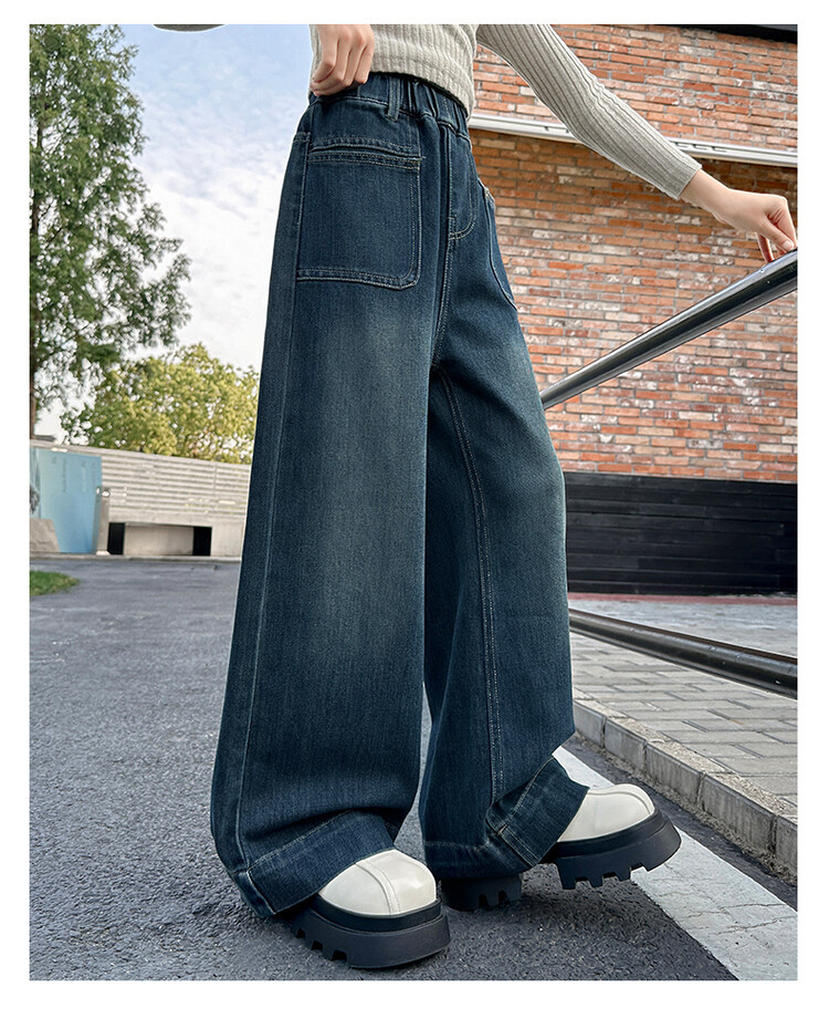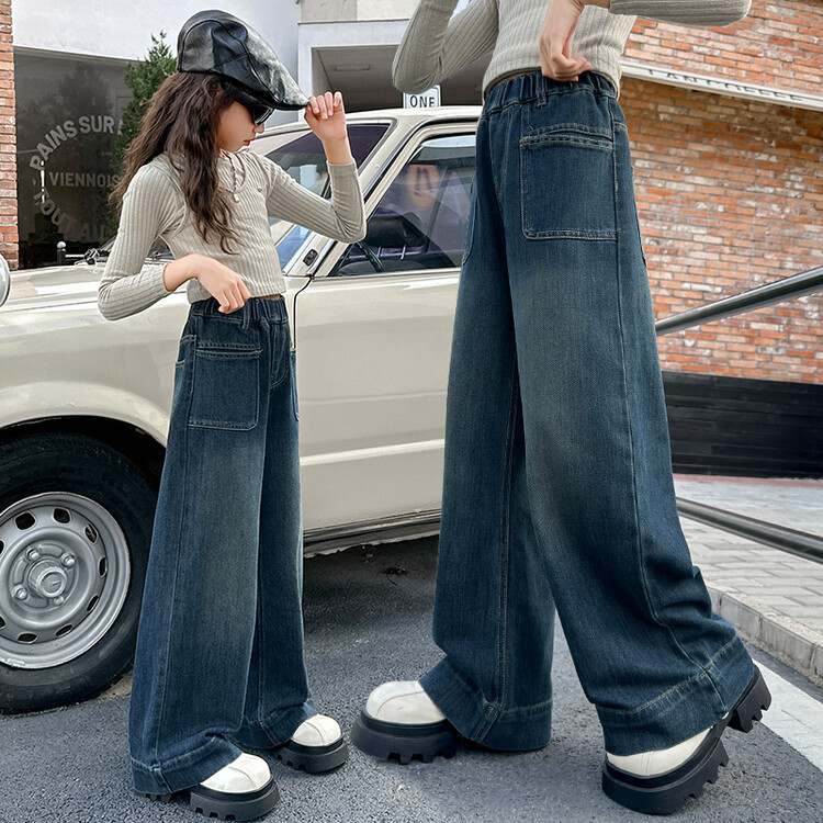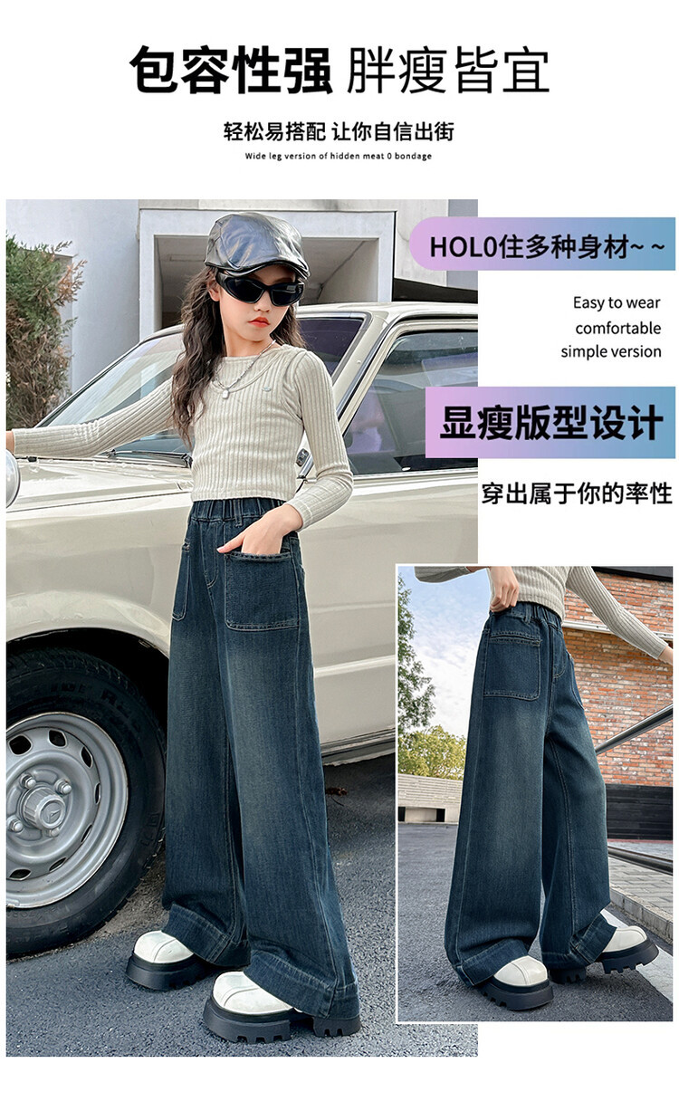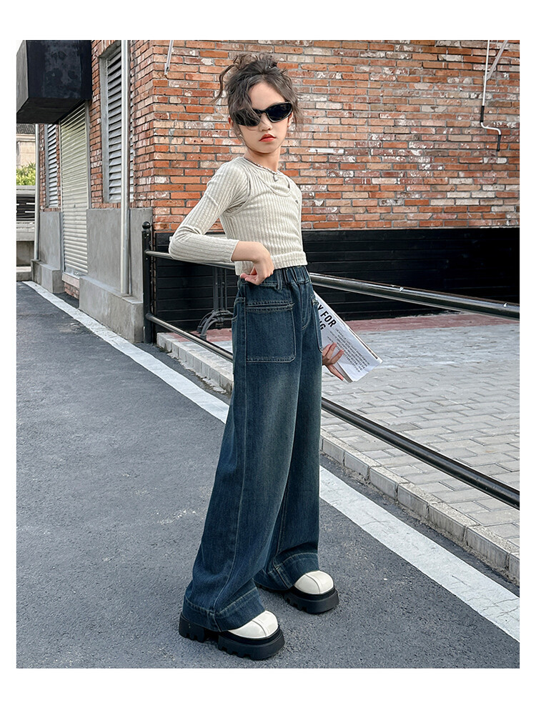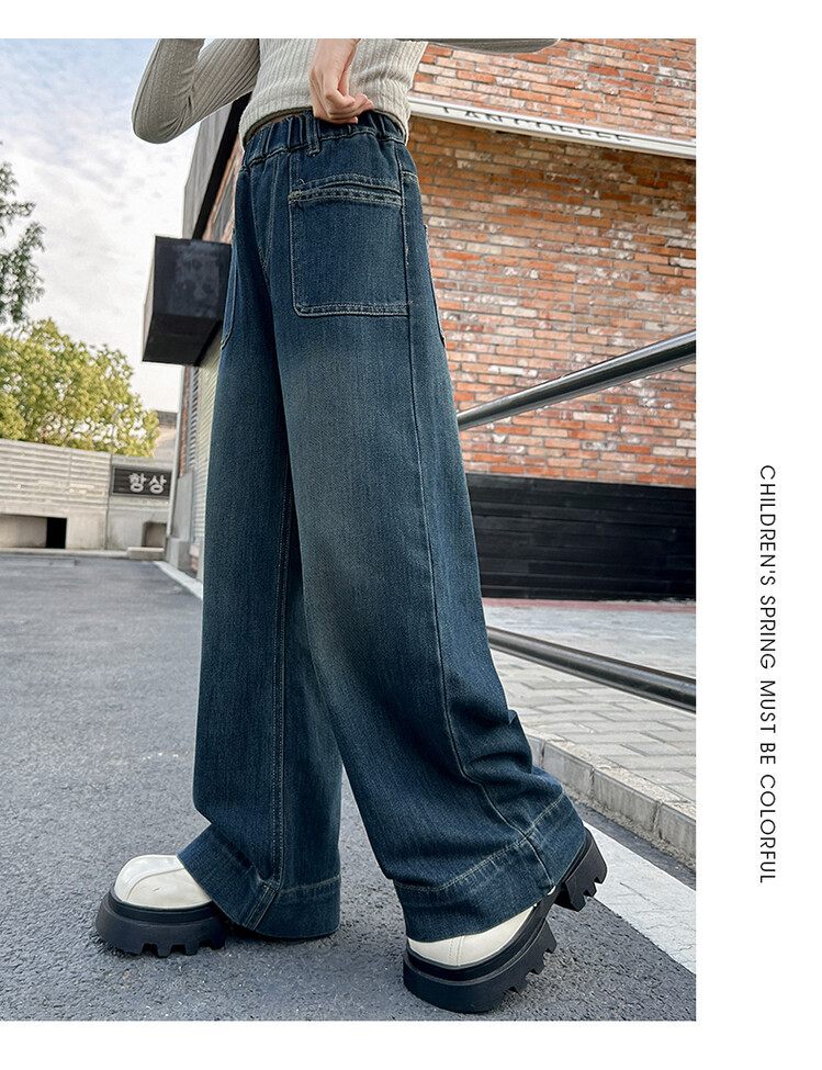 봄과 가을 소녀 청바지 유행 올매치 느슨한 넓은 다리 바지 크고 큰 어린이 캐주얼 바지 한국 스타일 스트레이트 다리 바지스토어 가기