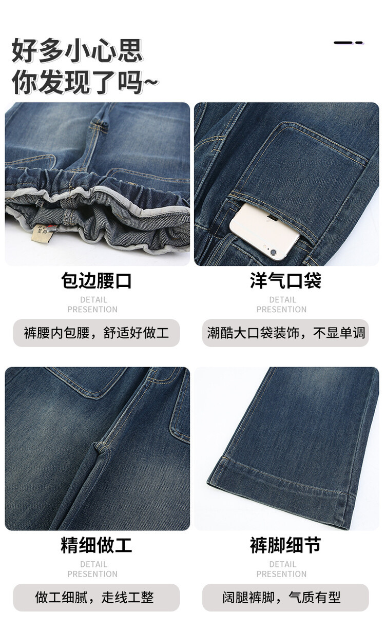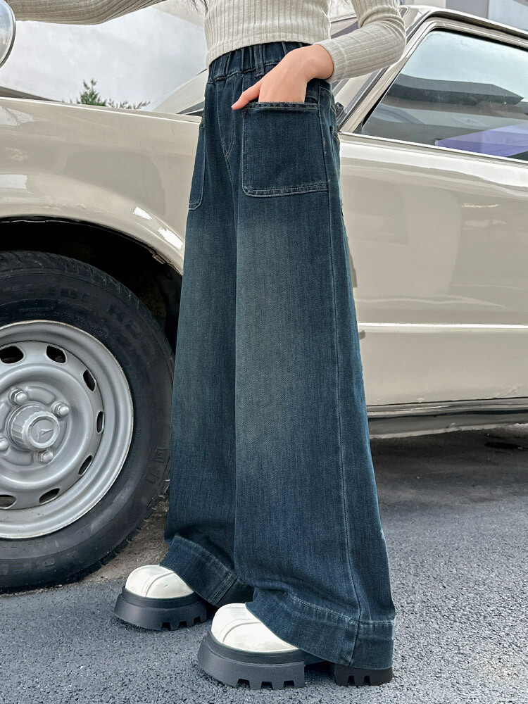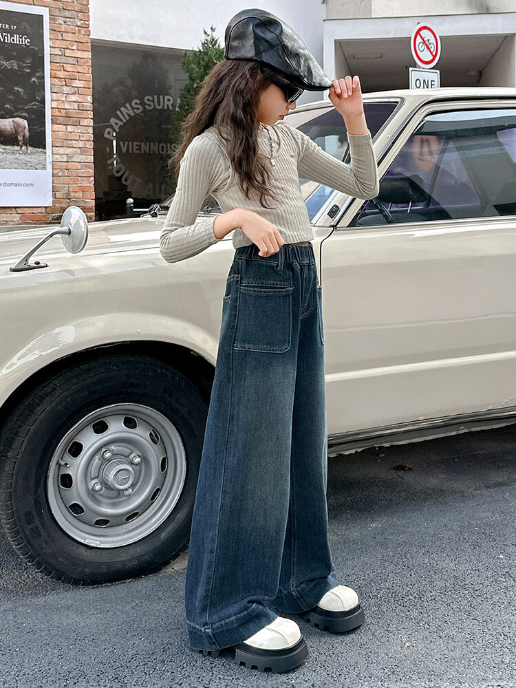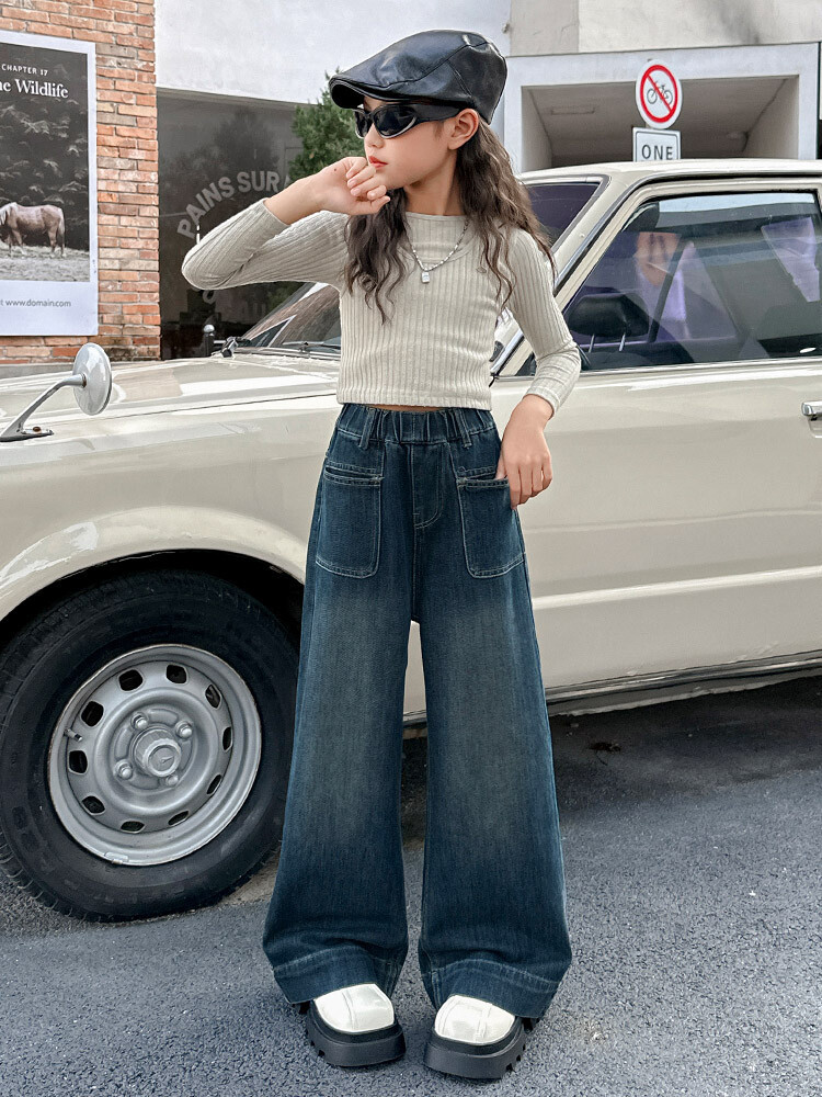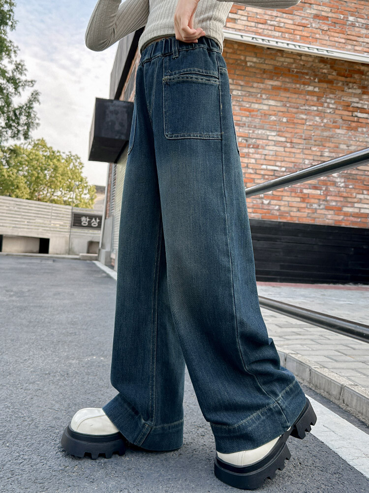 봄과 가을 소녀 청바지 유행 올매치 느슨한 넓은 다리 바지 크고 큰 어린이 캐주얼 바지 한국 스타일 스트레이트 다리 바지스토어 가기