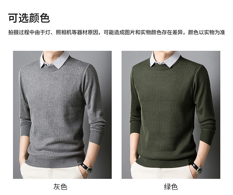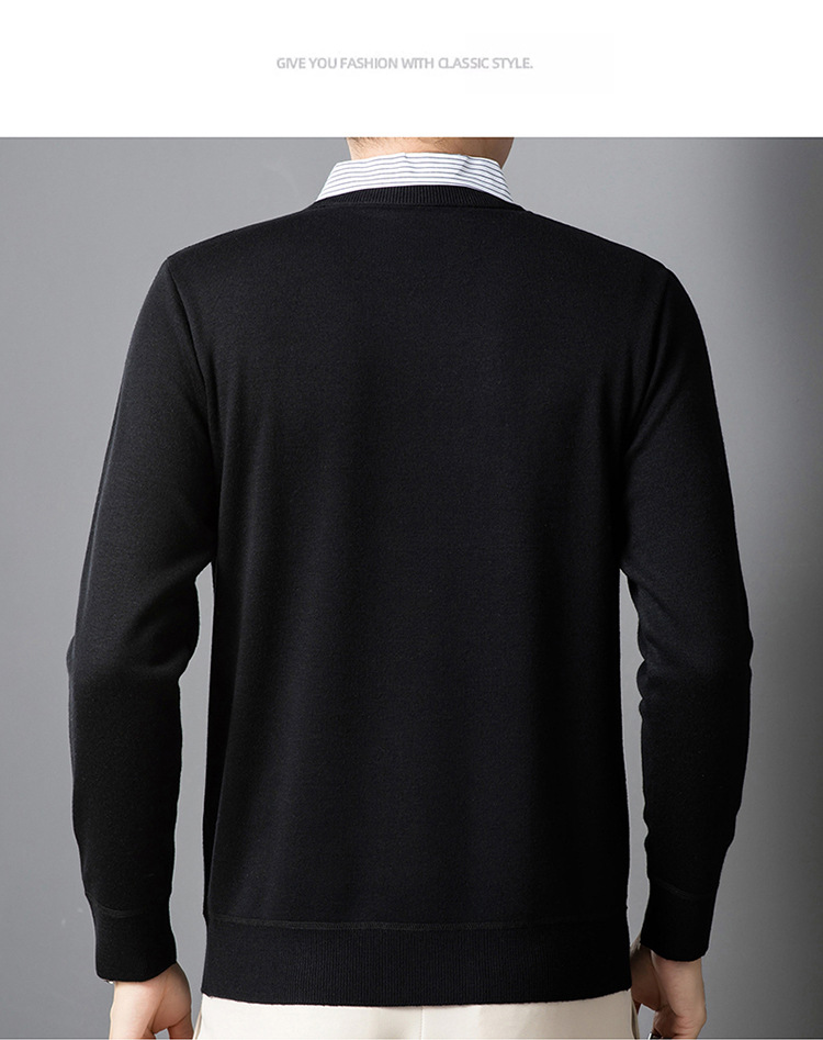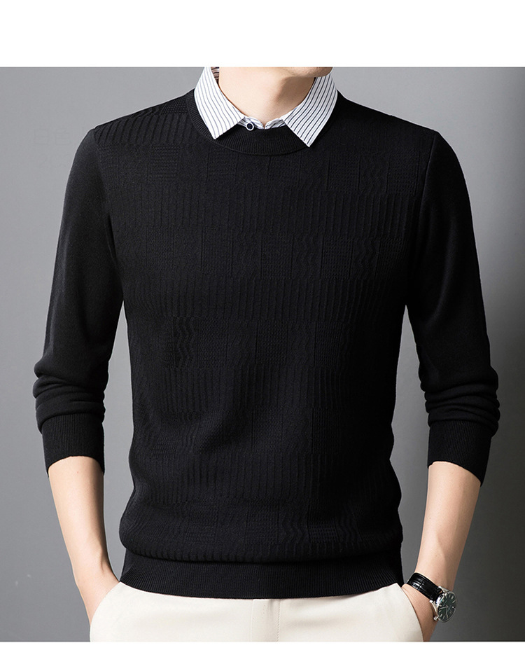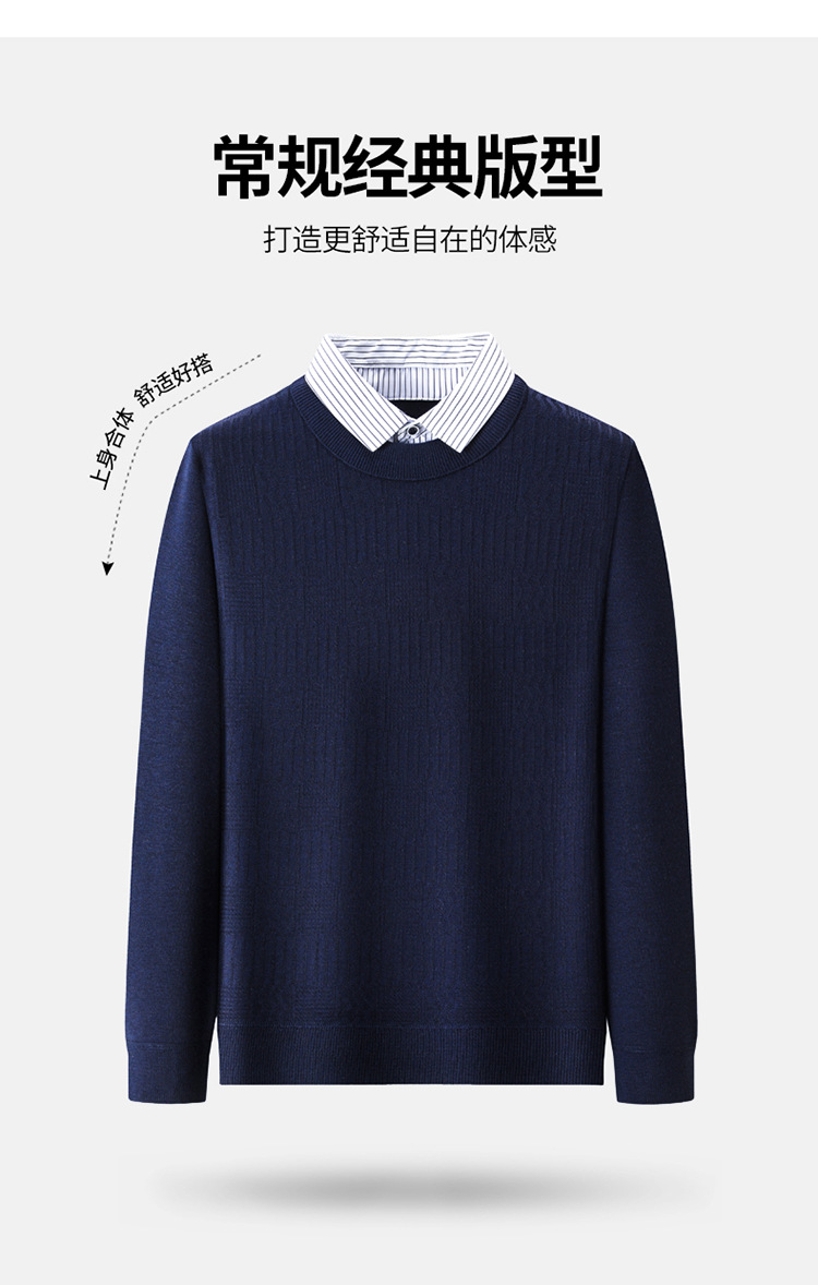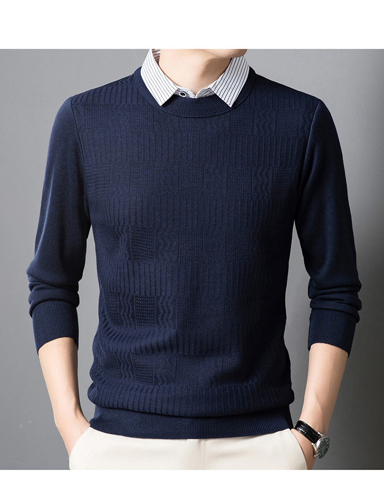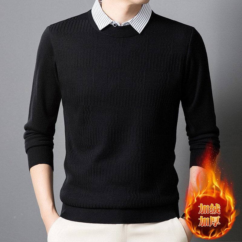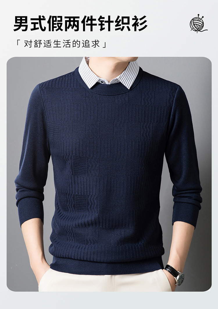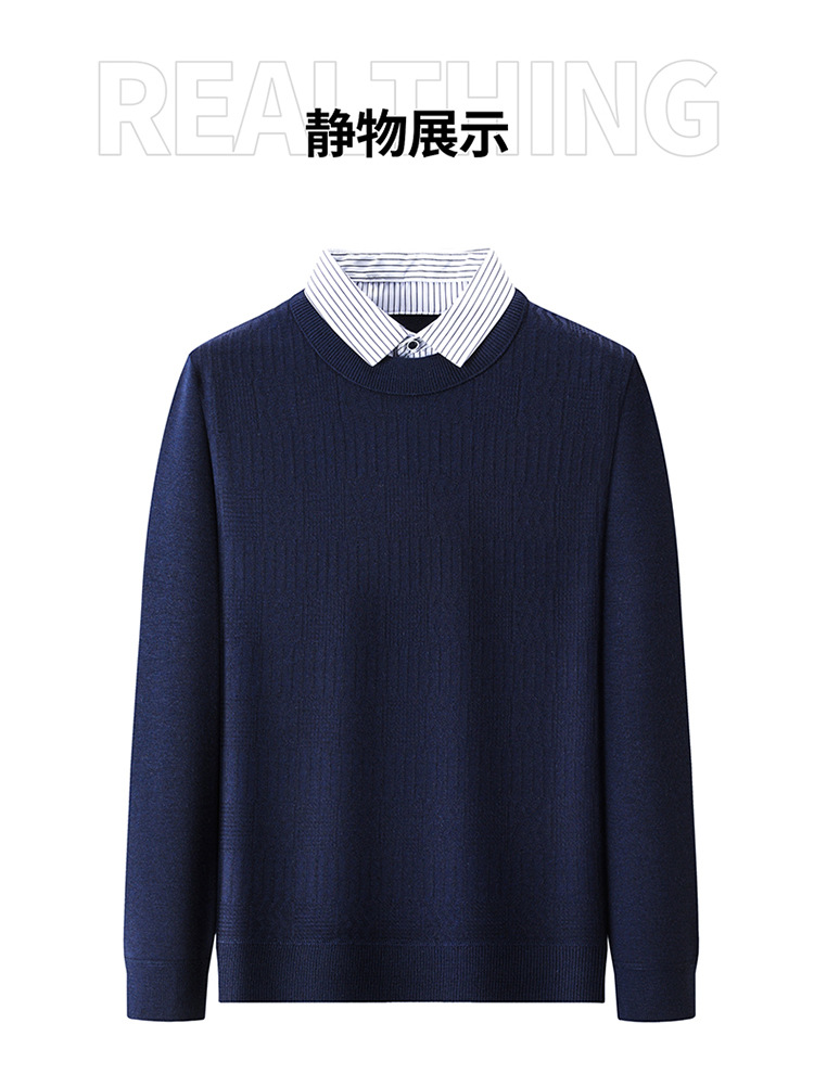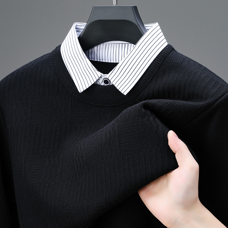 2025 가을 신상 페이크 투피스 울 스웨터 남성용 두꺼운 긴팔 셔츠 칼라 캐주얼 이너웨어 남성 니트웨어스토어 가기