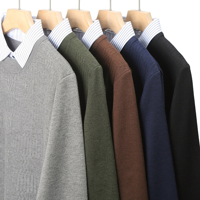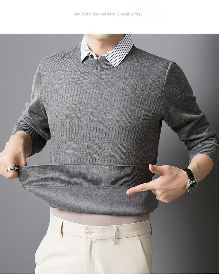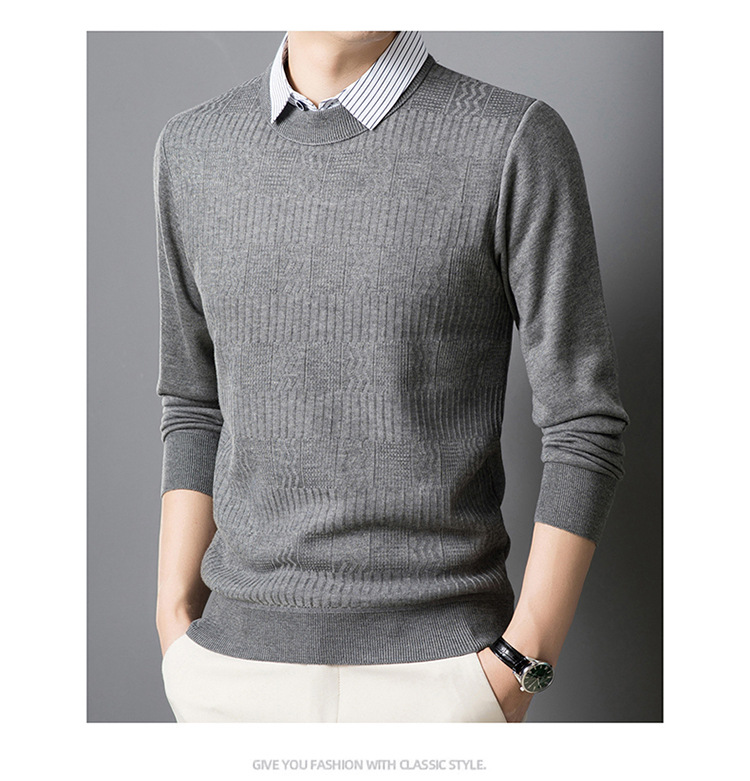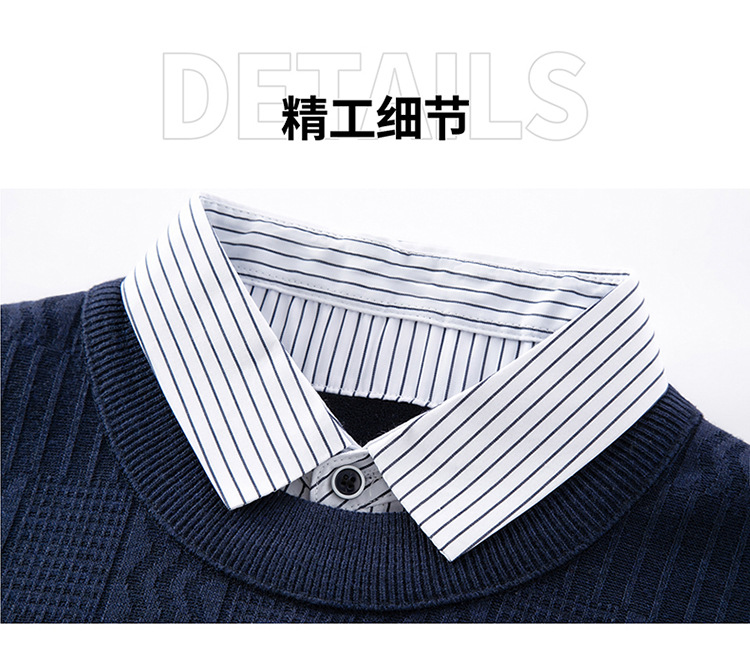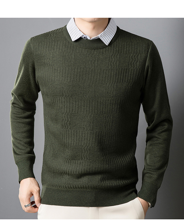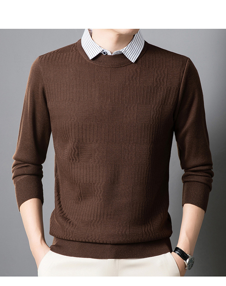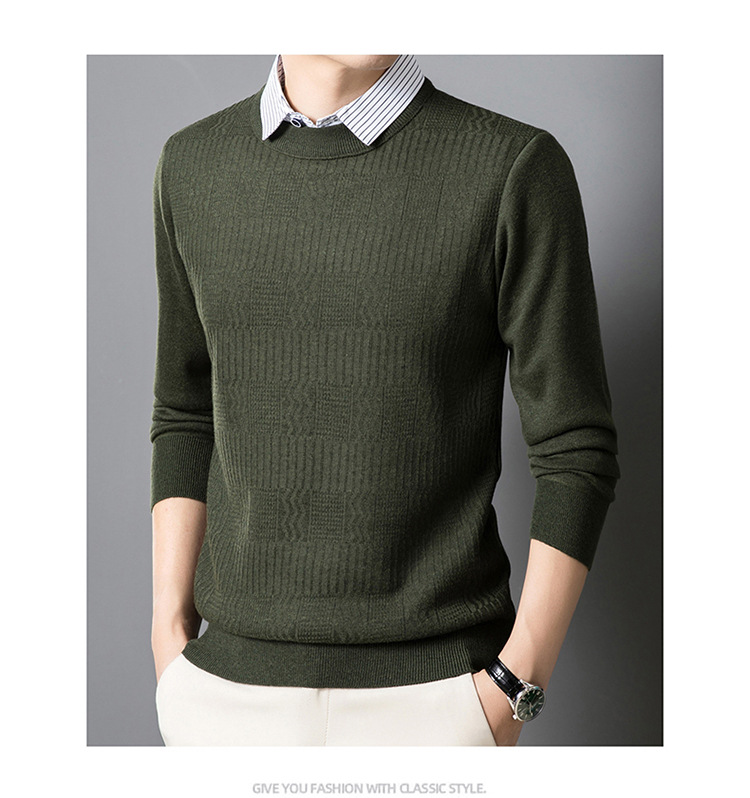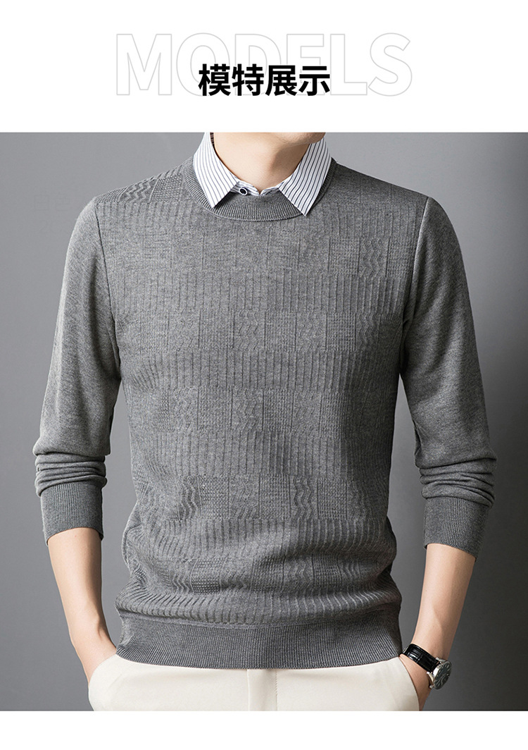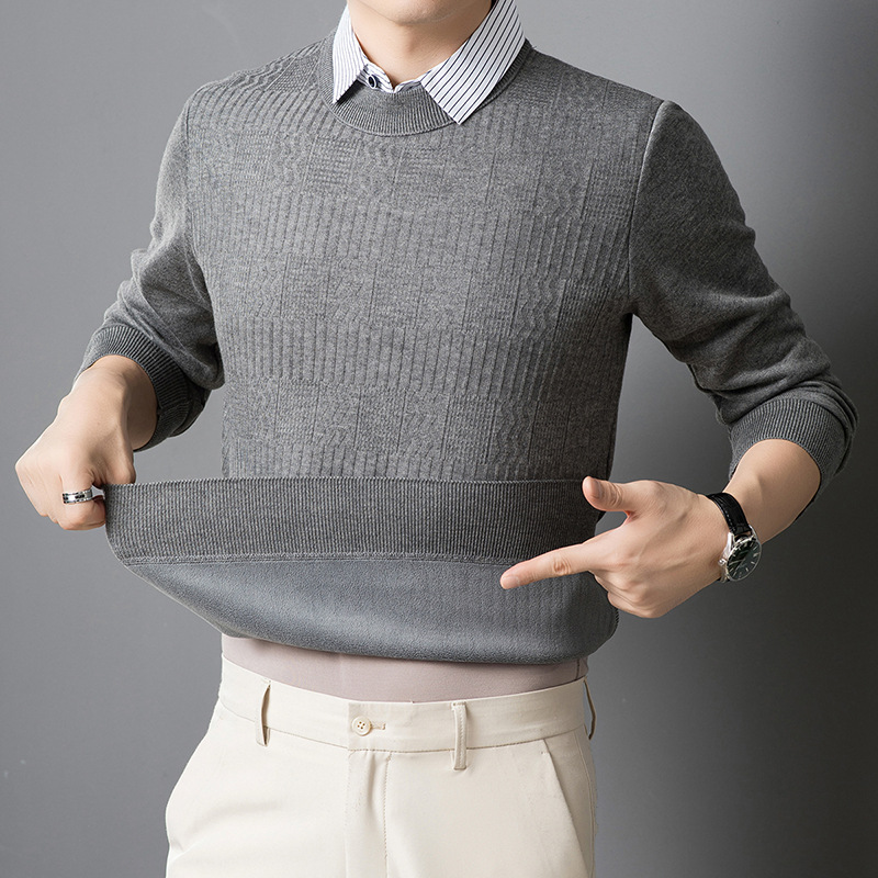 2025 가을 신상 페이크 투피스 울 스웨터 남성용 두꺼운 긴팔 셔츠 칼라 캐주얼 이너웨어 남성 니트웨어스토어 가기