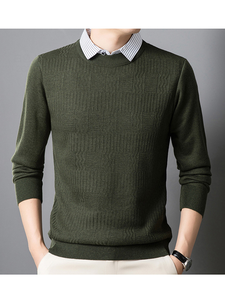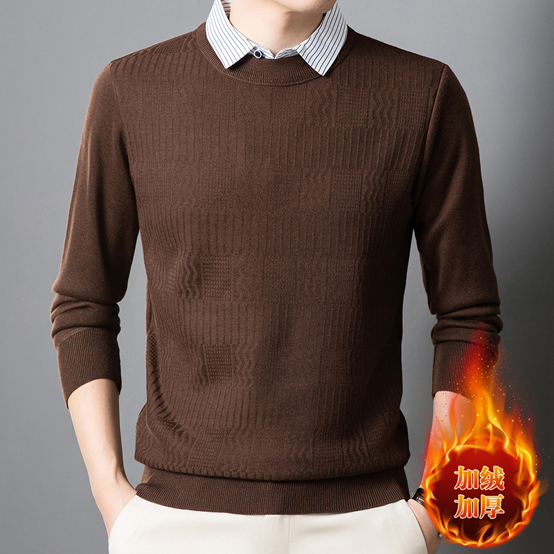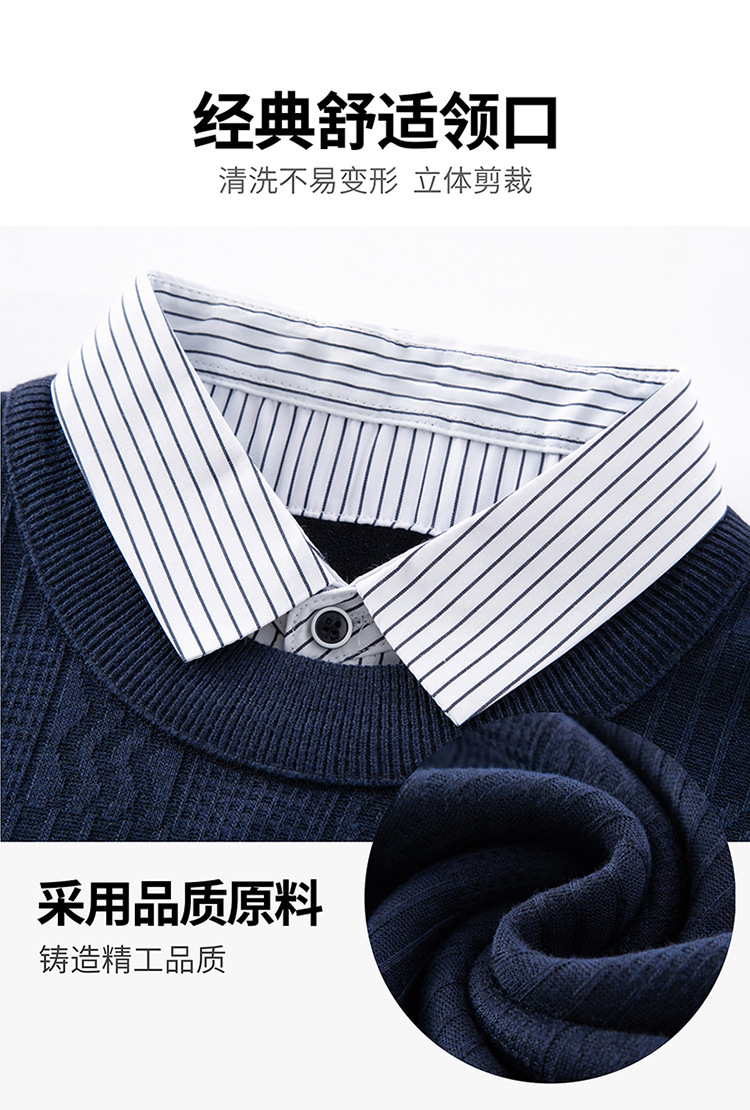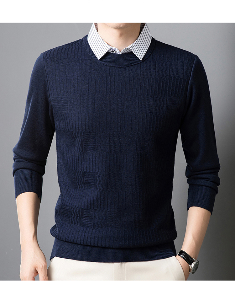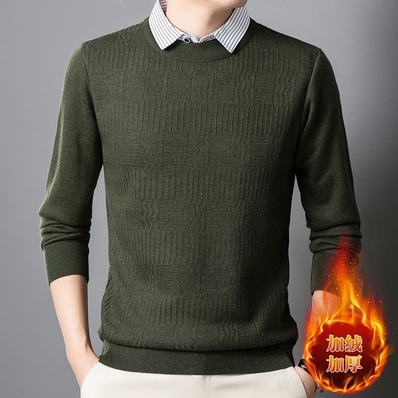 2025 가을 신상 페이크 투피스 울 스웨터 남성용 두꺼운 긴팔 셔츠 칼라 캐주얼 이너웨어 남성 니트웨어
