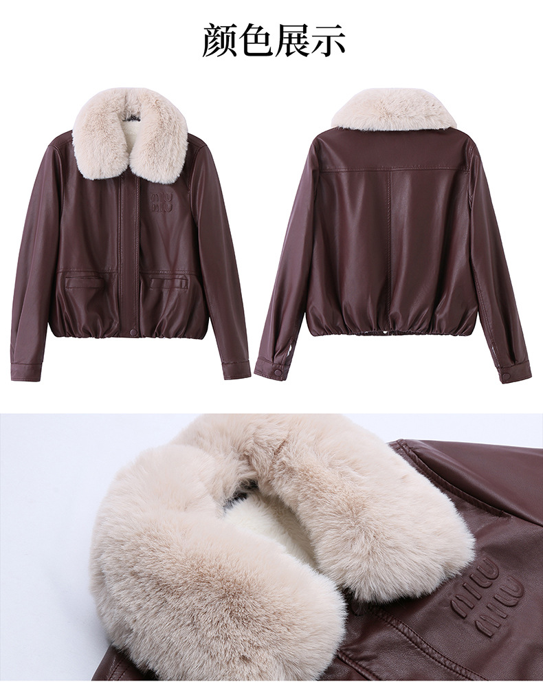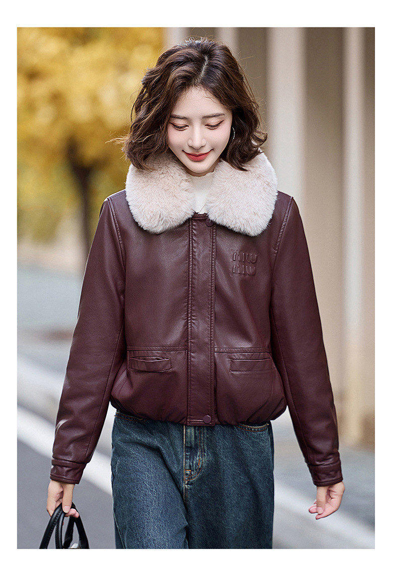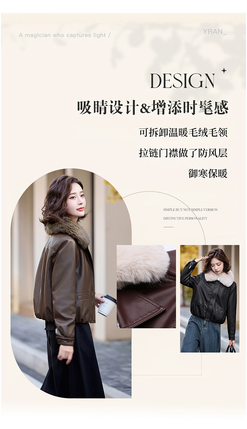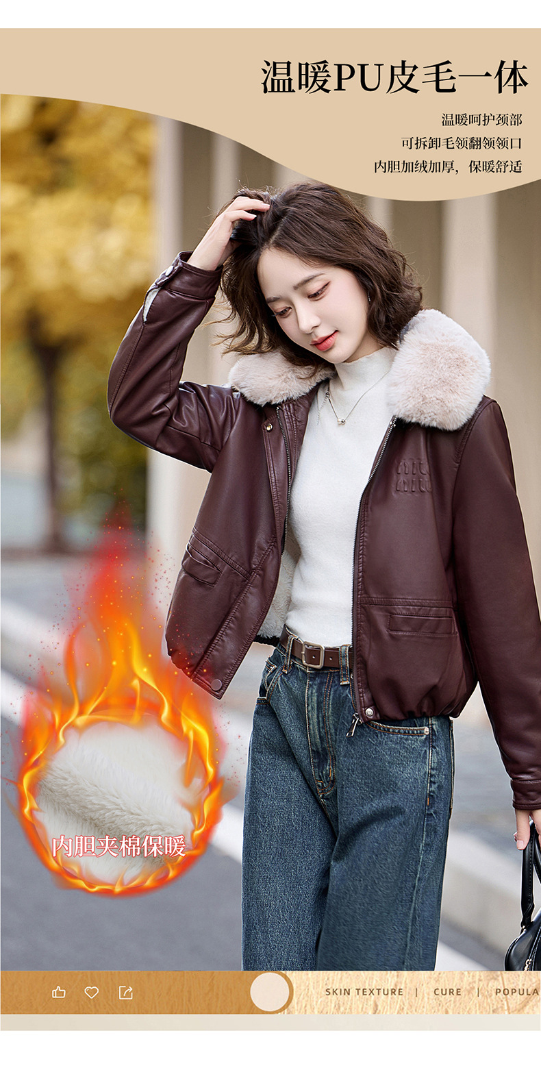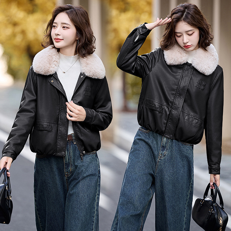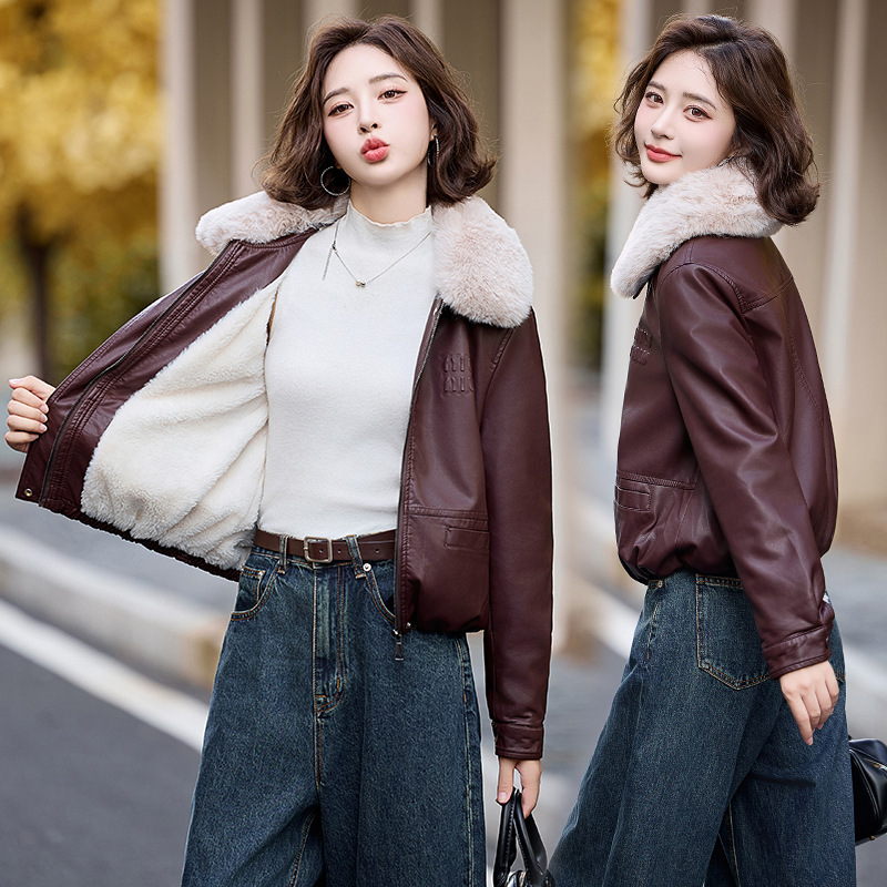 여성용 가죽 가을과 겨울 새로운 큰 울 칼라 기모 두꺼운 작은 재킷 PU 가죽 자켓 ZH1137