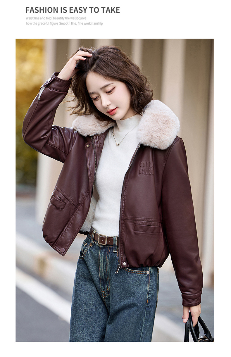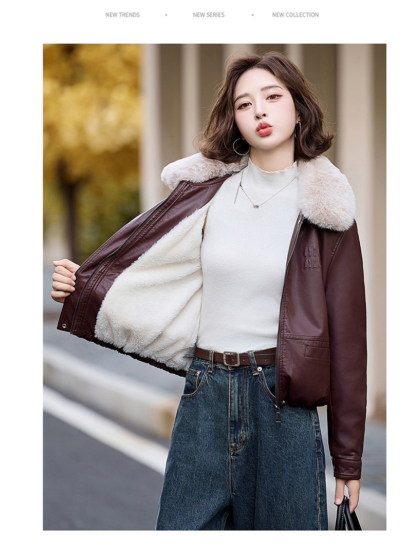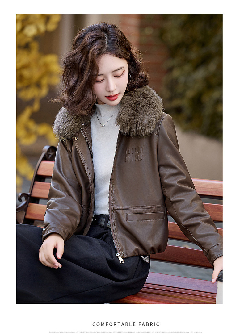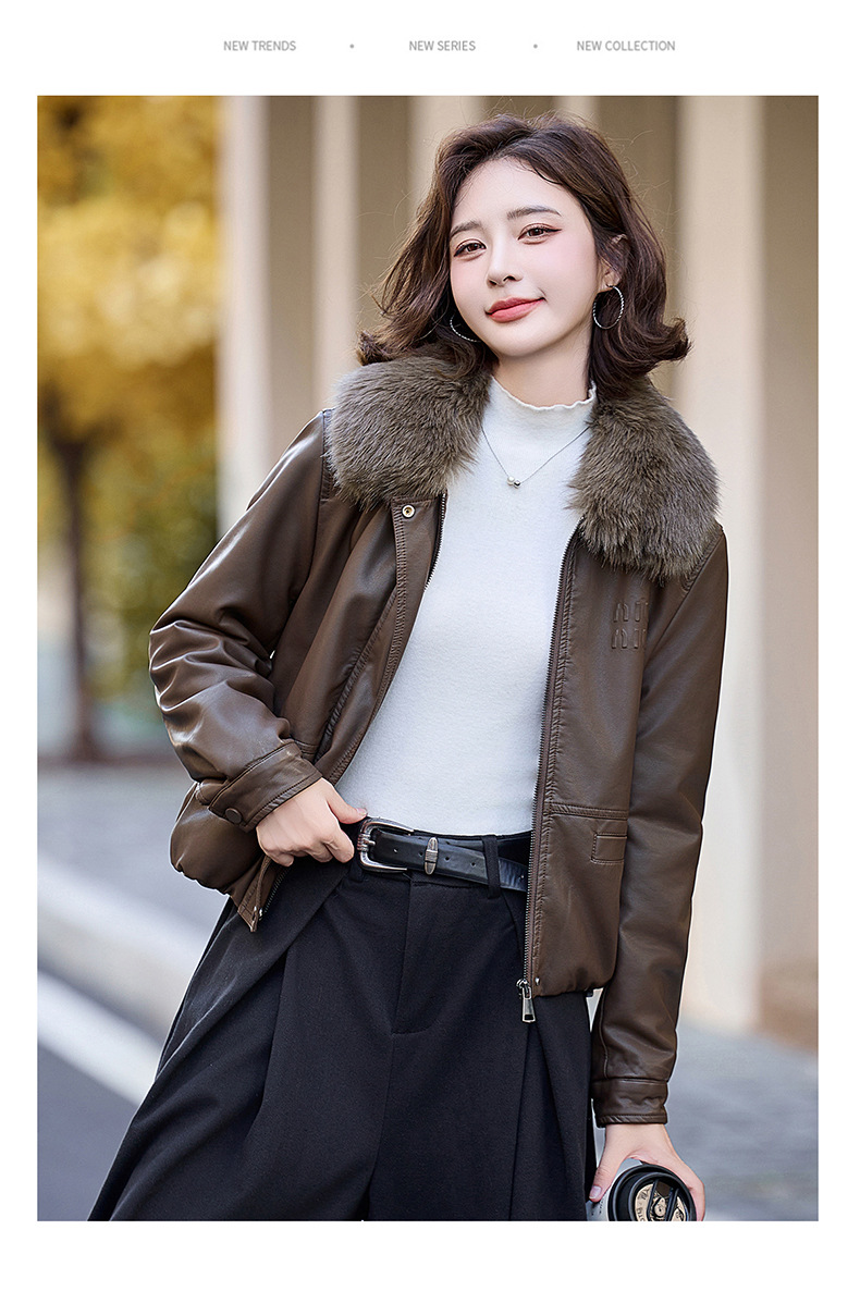 여성용 가죽 가을과 겨울 새로운 큰 울 칼라 기모 두꺼운 작은 재킷 PU 가죽 자켓 ZH1137스토어 가기