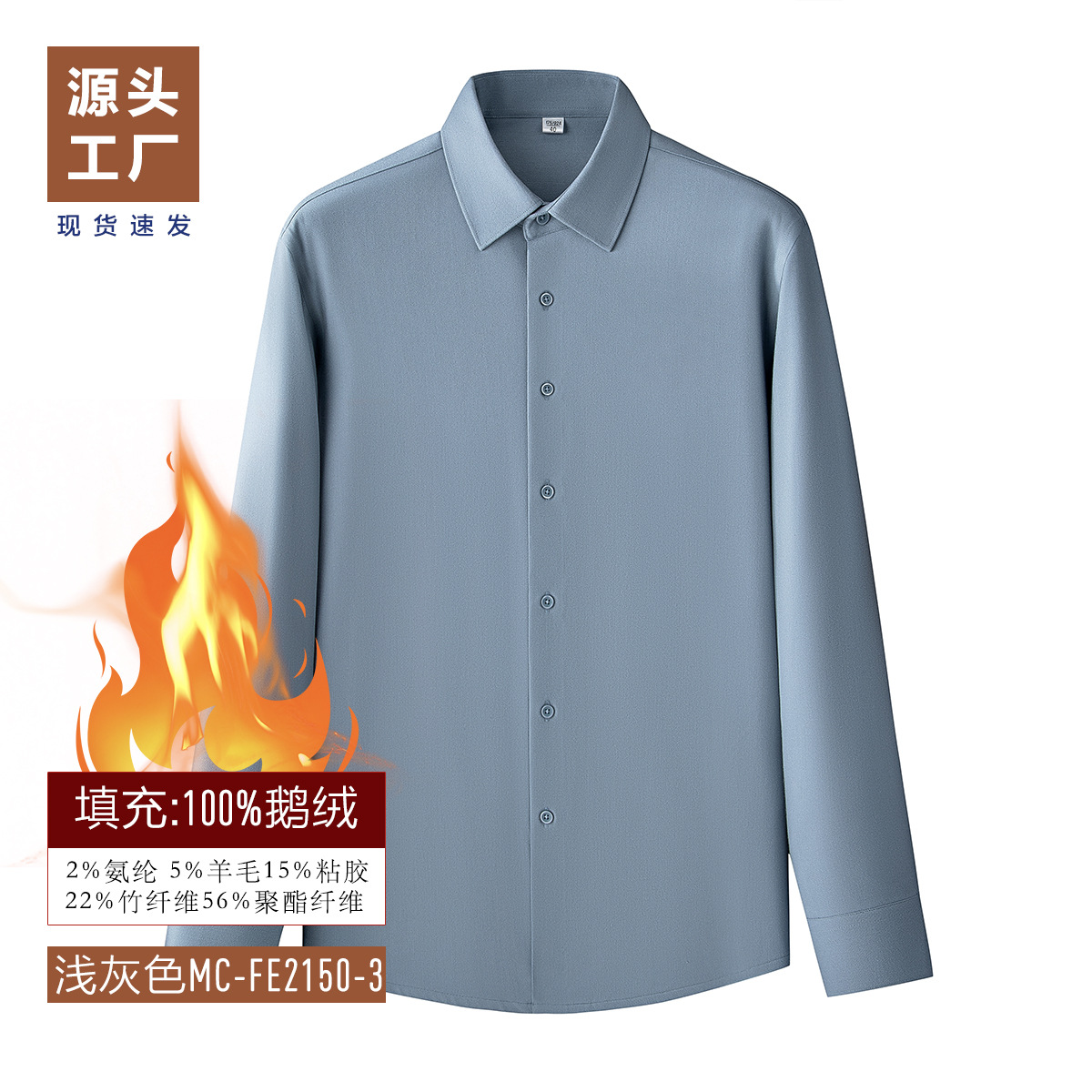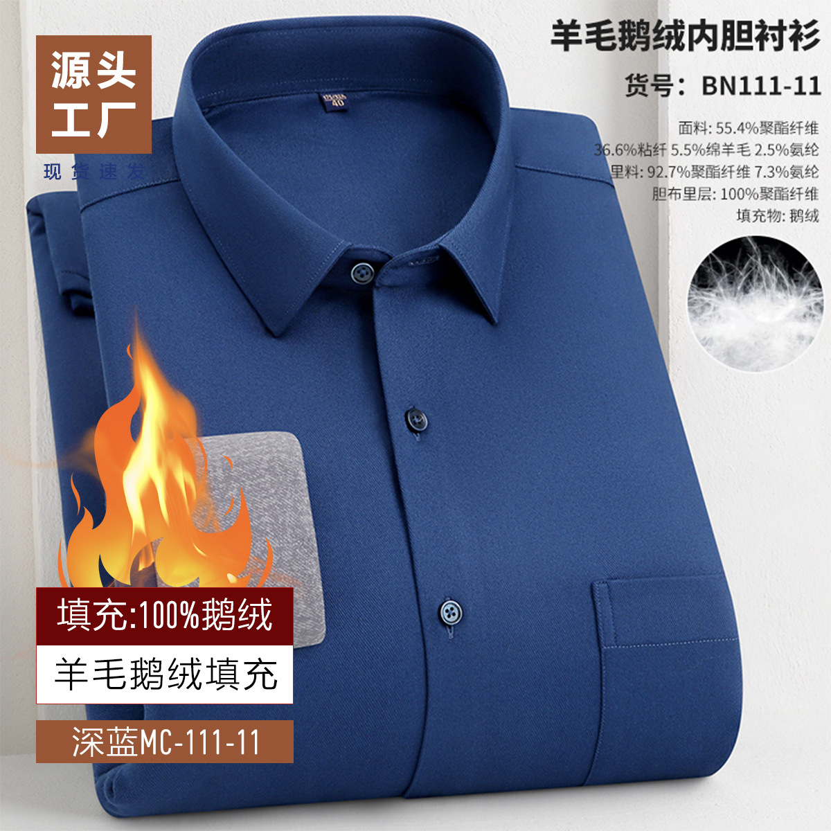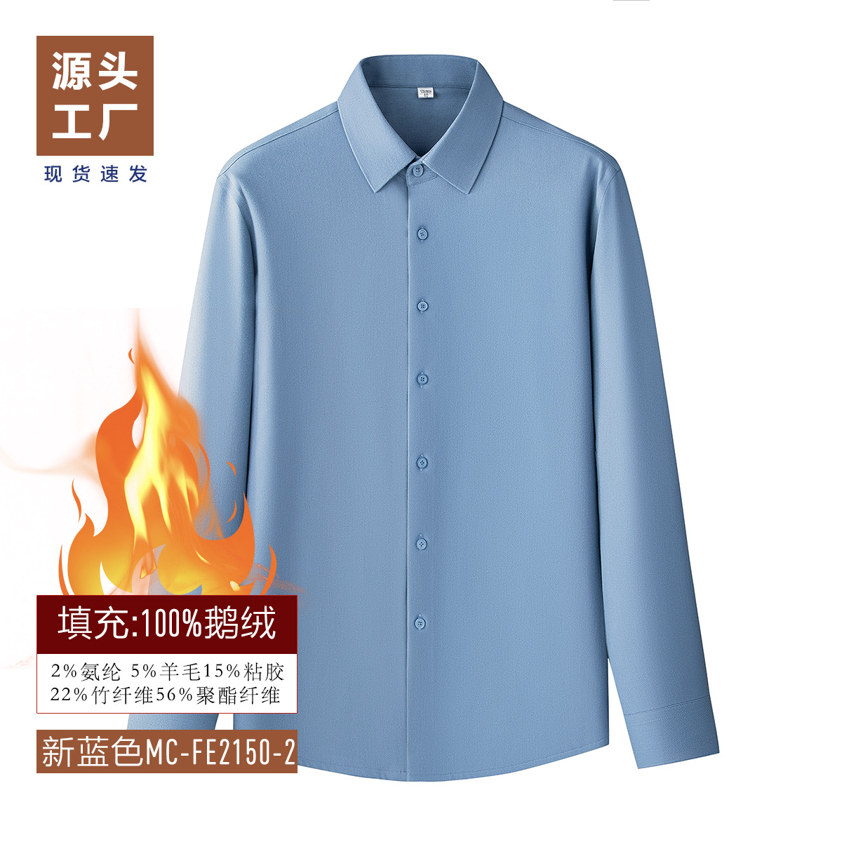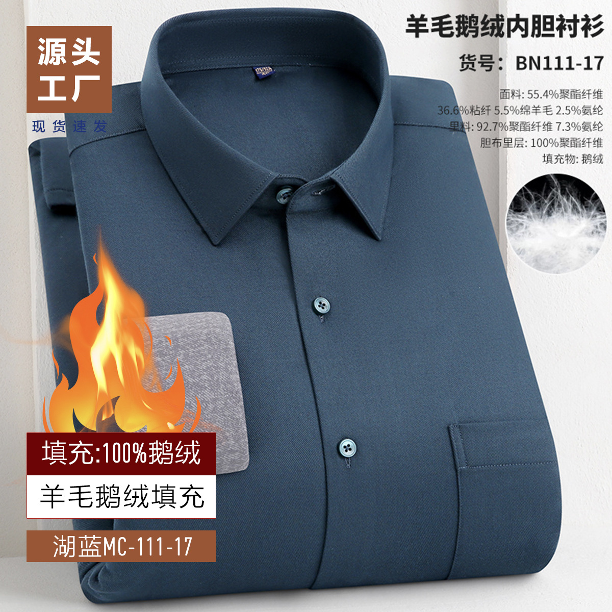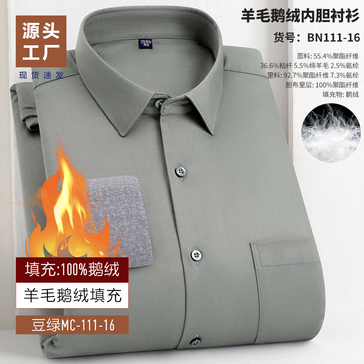 겨울 기모 두꺼운 남성 셔츠 남성 비즈니스 캐주얼 따뜻한 안티 주름 충전 거위 아래로 대나무 섬유 양모 셔츠