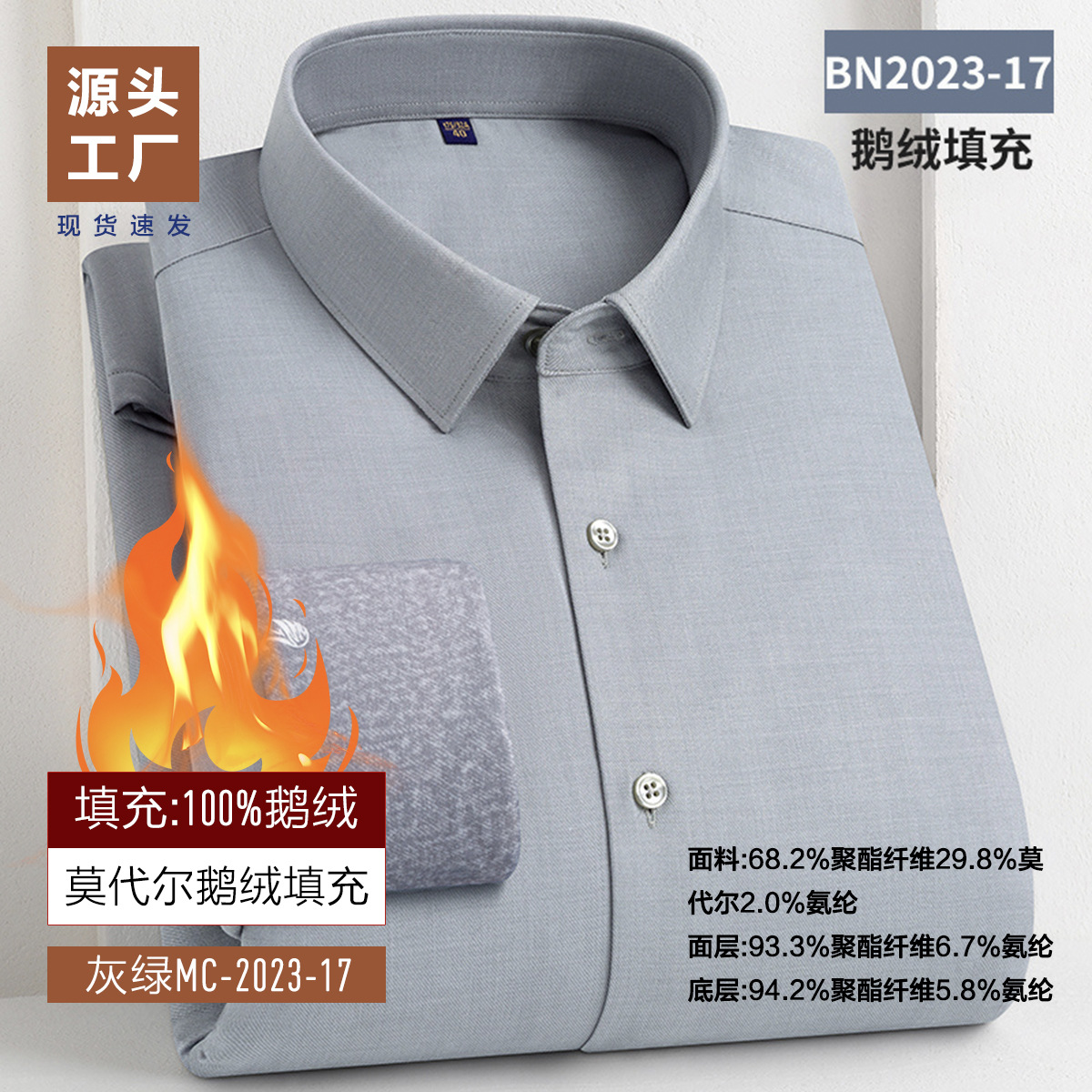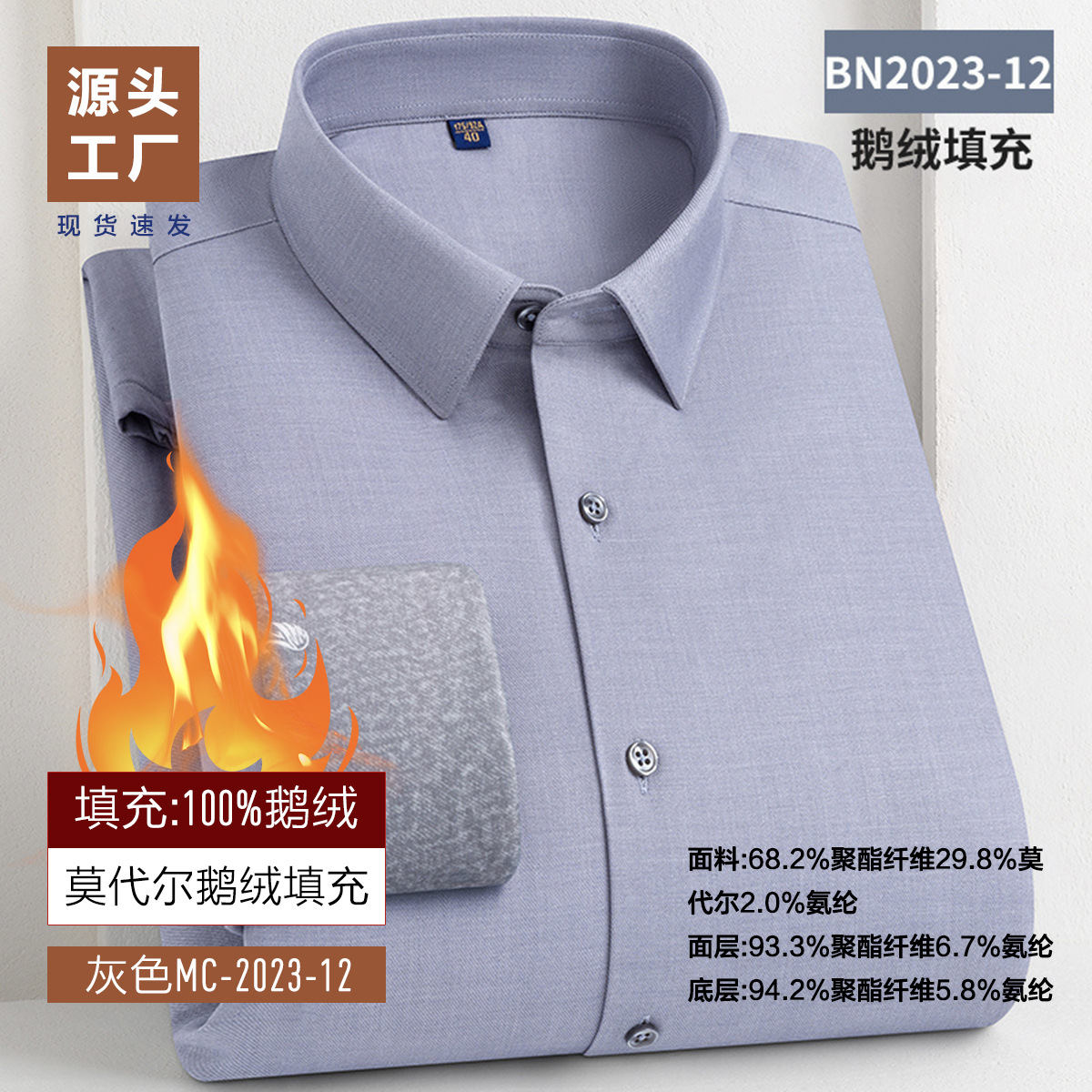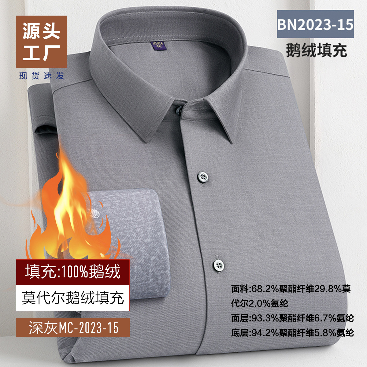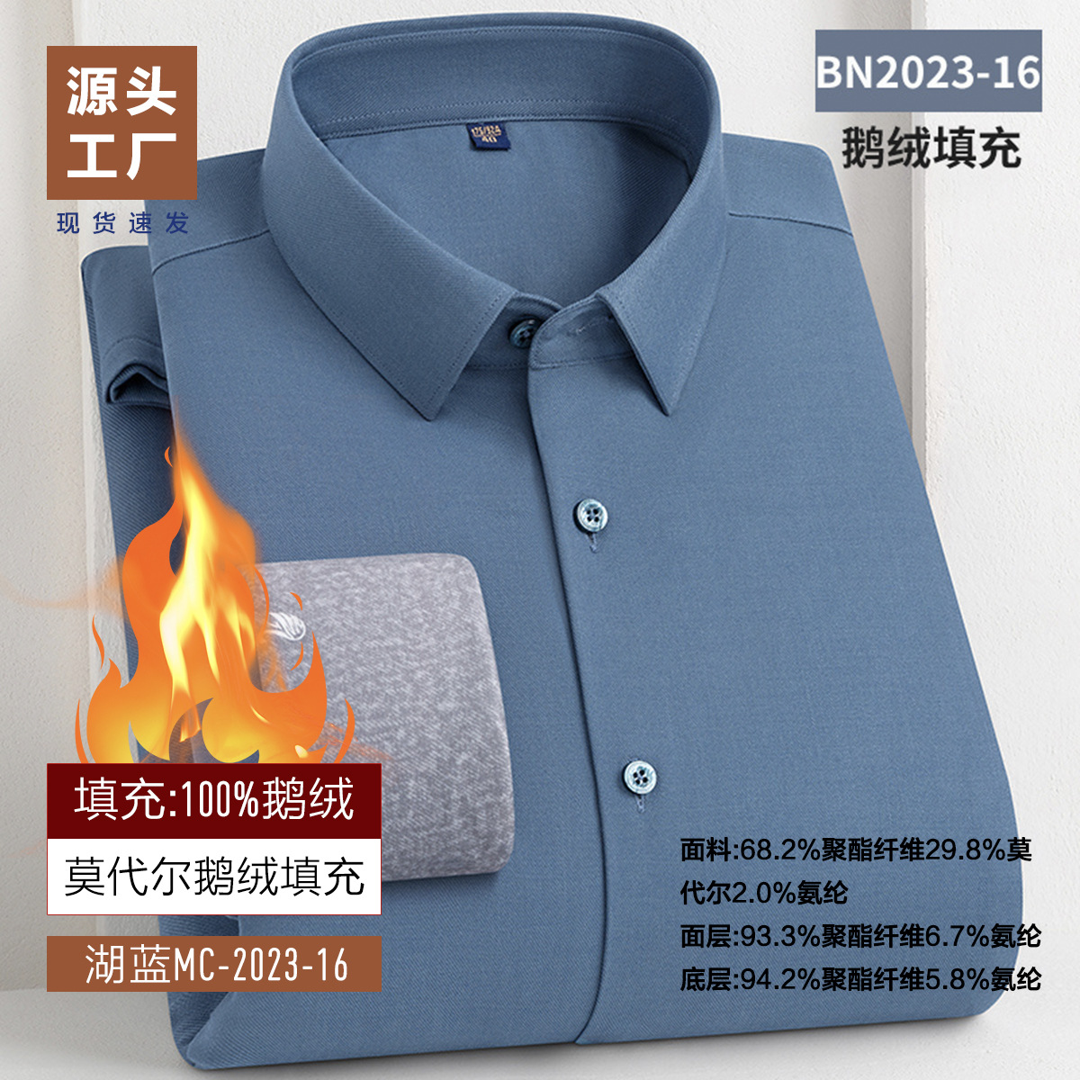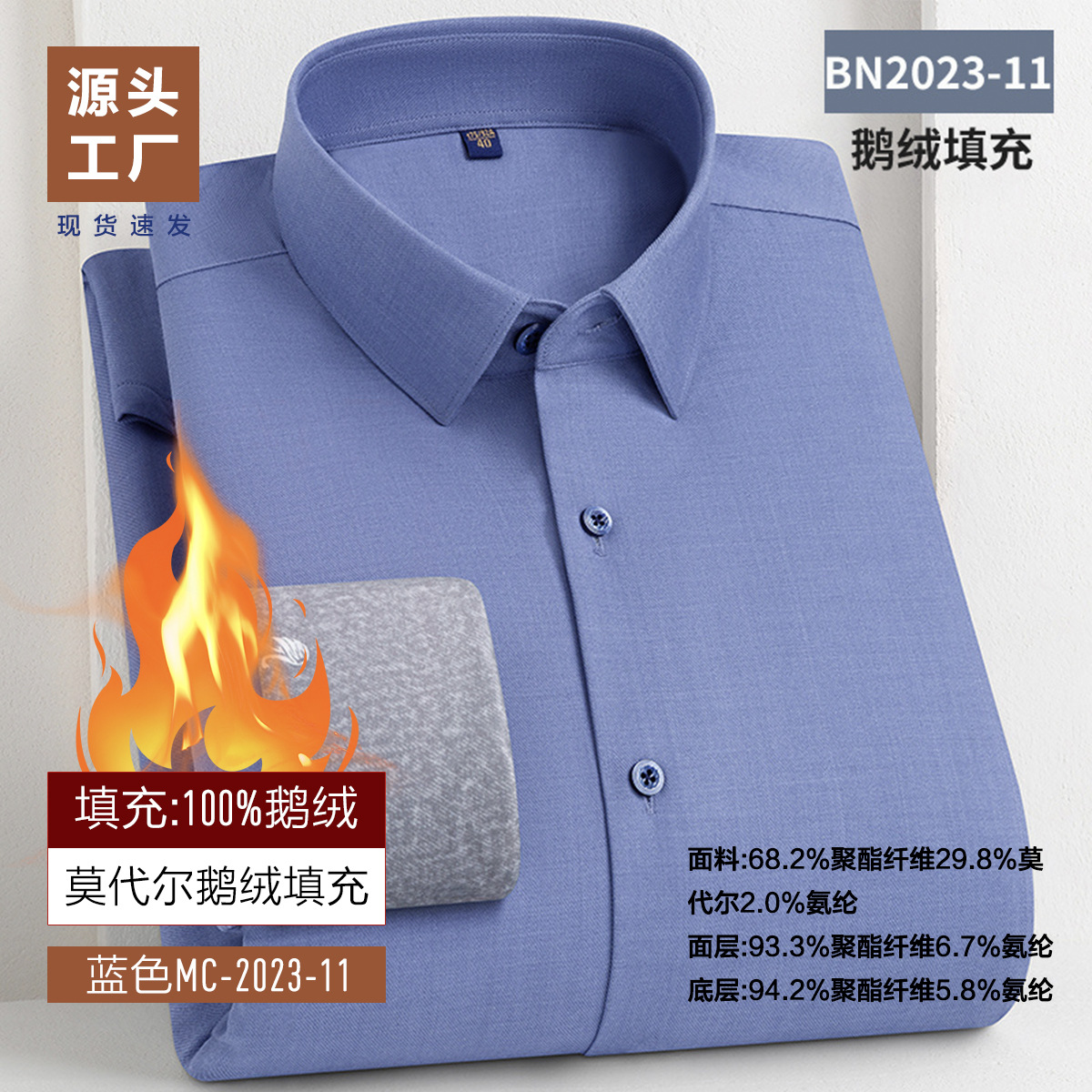 겨울 기모 두꺼운 남성 셔츠 남성 비즈니스 캐주얼 따뜻한 안티 주름 충전 거위 아래로 대나무 섬유 양모 셔츠스토어 가기