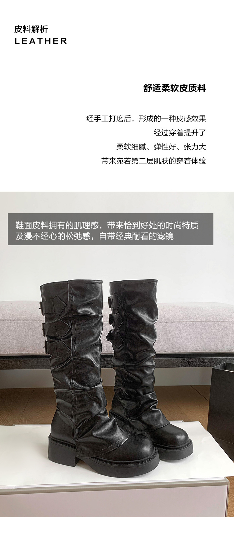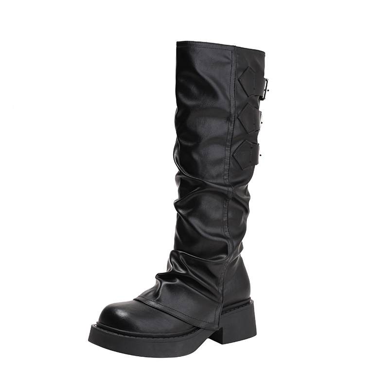 Maillard Super Fire Pleated Pants 튜브 부츠 여성용 2024 겨울 새 스타일 작은 부츠 두꺼운 바닥 라운드 발가락 부츠 증가스토어 가기