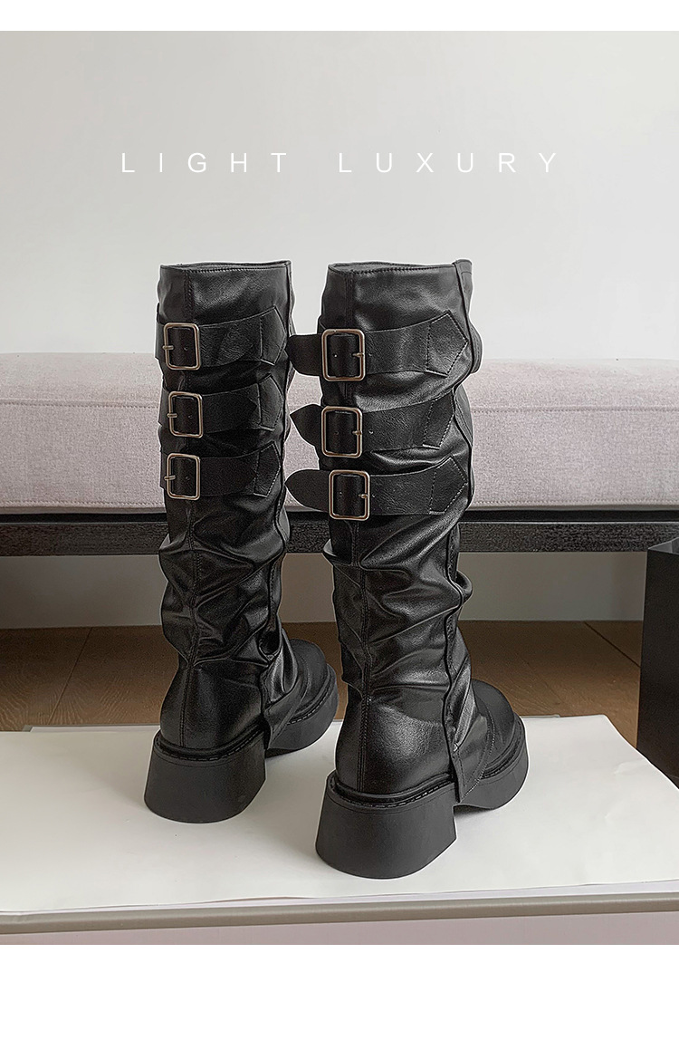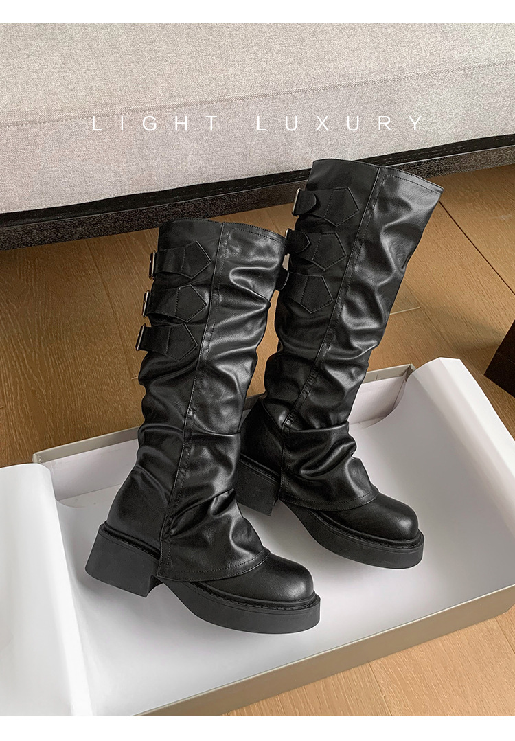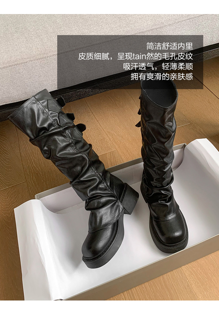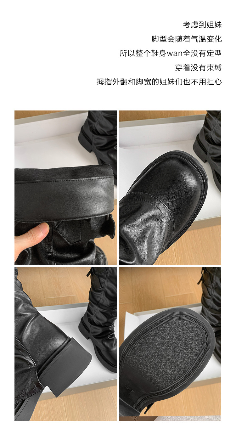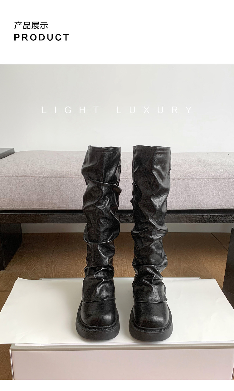 Maillard Super Fire Pleated Pants 튜브 부츠 여성용 2024 겨울 새 스타일 작은 부츠 두꺼운 바닥 라운드 발가락 부츠 증가