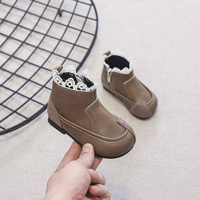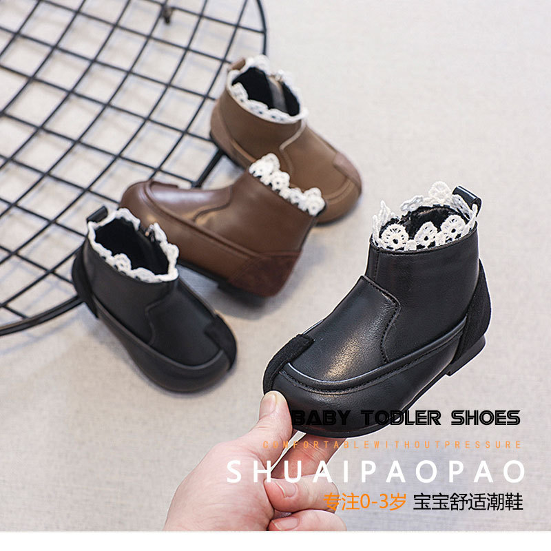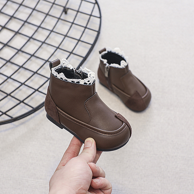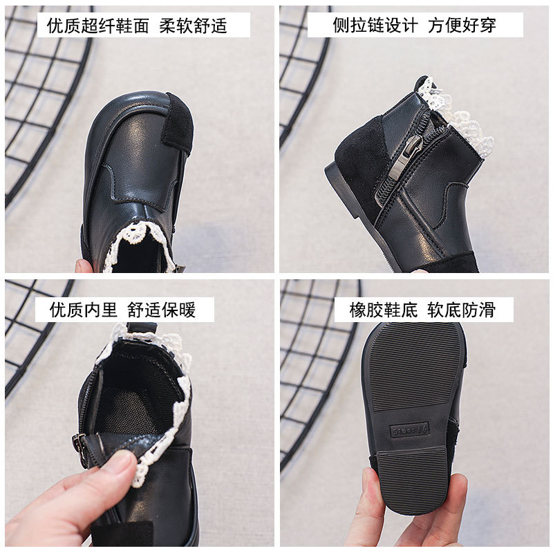 가을과 겨울 빈티지 소녀 편안한 레이스 쇼트 부츠 유행 올 매치 하이 탑 마틴 부츠 어린이 사이드 지퍼 가죽 부츠스토어 가기