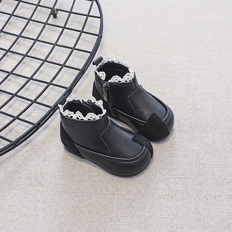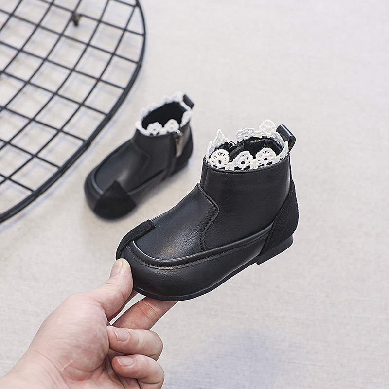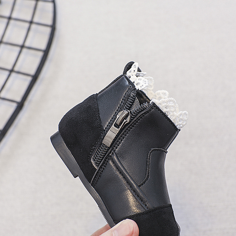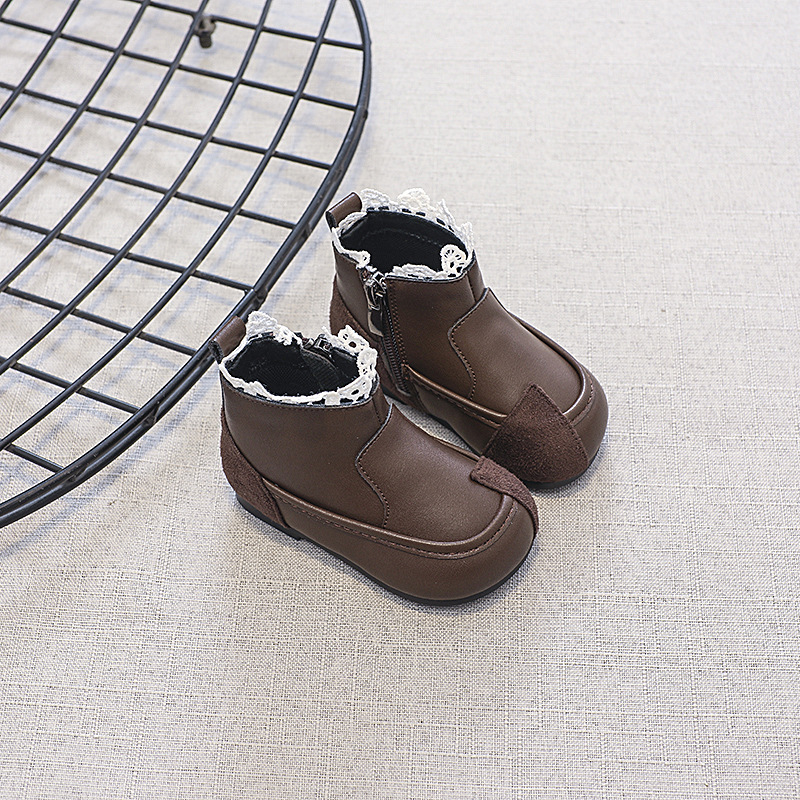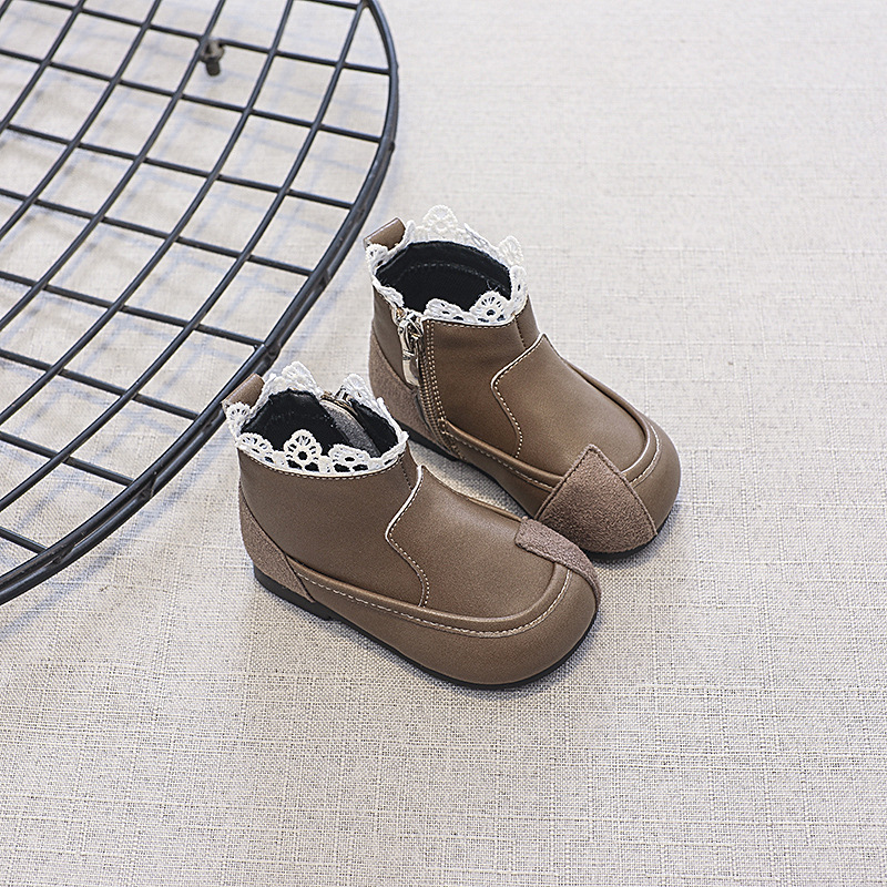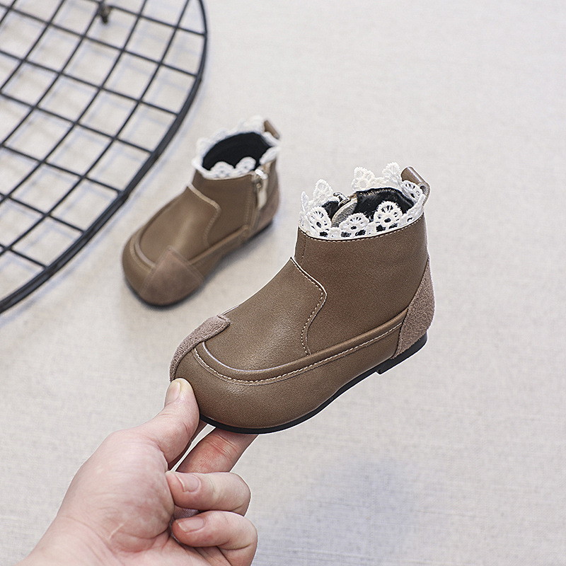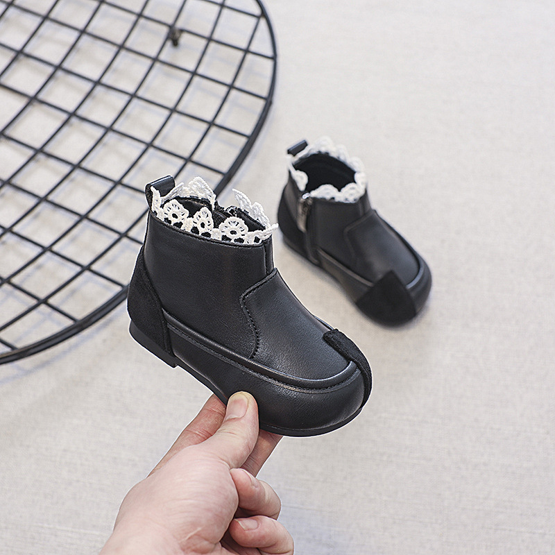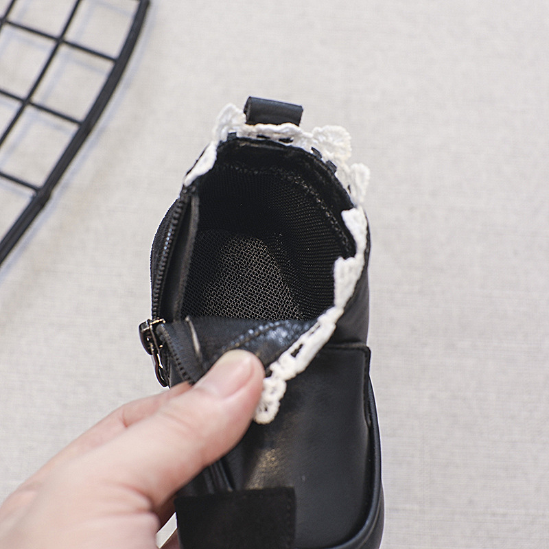 가을과 겨울 빈티지 소녀 편안한 레이스 쇼트 부츠 유행 올 매치 하이 탑 마틴 부츠 어린이 사이드 지퍼 가죽 부츠