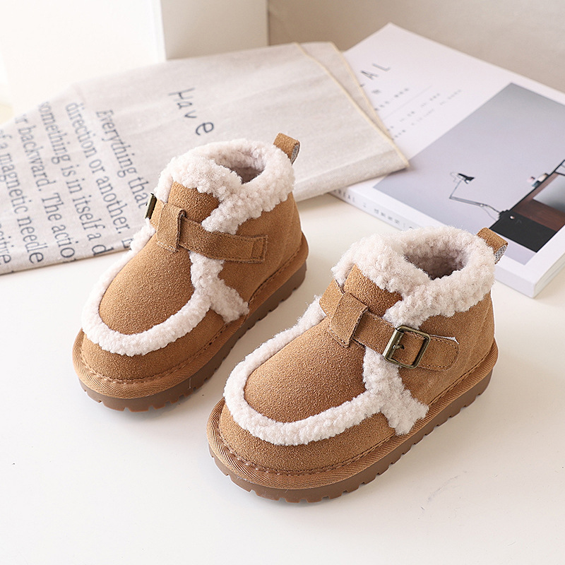 어린이 눈 부츠 2024 겨울 새 소녀 면화 기모 두꺼운 따뜻한 어린이 짧은 부츠 부드러운 바닥 가죽 부츠스토어 가기
