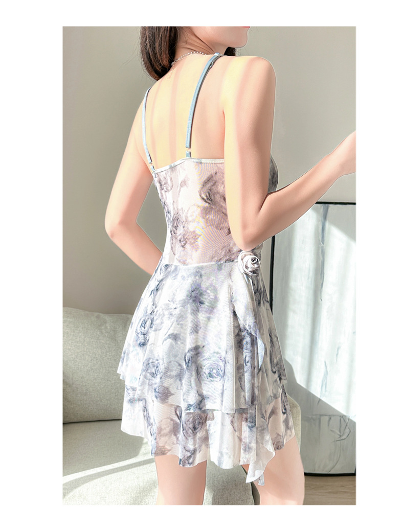 뜨거운 봄 수영복 여성 결합 된 플랫 코너 보수적 인 배꼽 커버 슬리밍 요정 스타일 한국 성적 스커트 하이 엔드 새 수영복스토어 가기