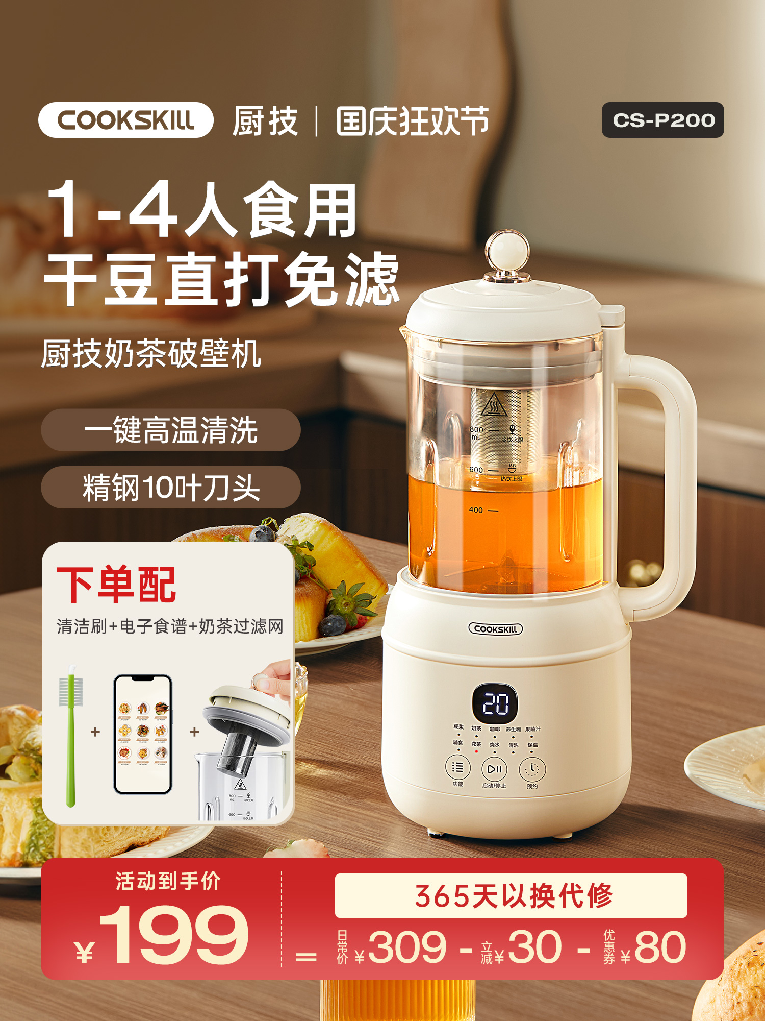 주방 기술 콩 우유 기계 미니 작은 가정용 완전 자동 필터-비 조리 비 조용한 단일 벽 깨기 기계 1-2 명스토어 가기