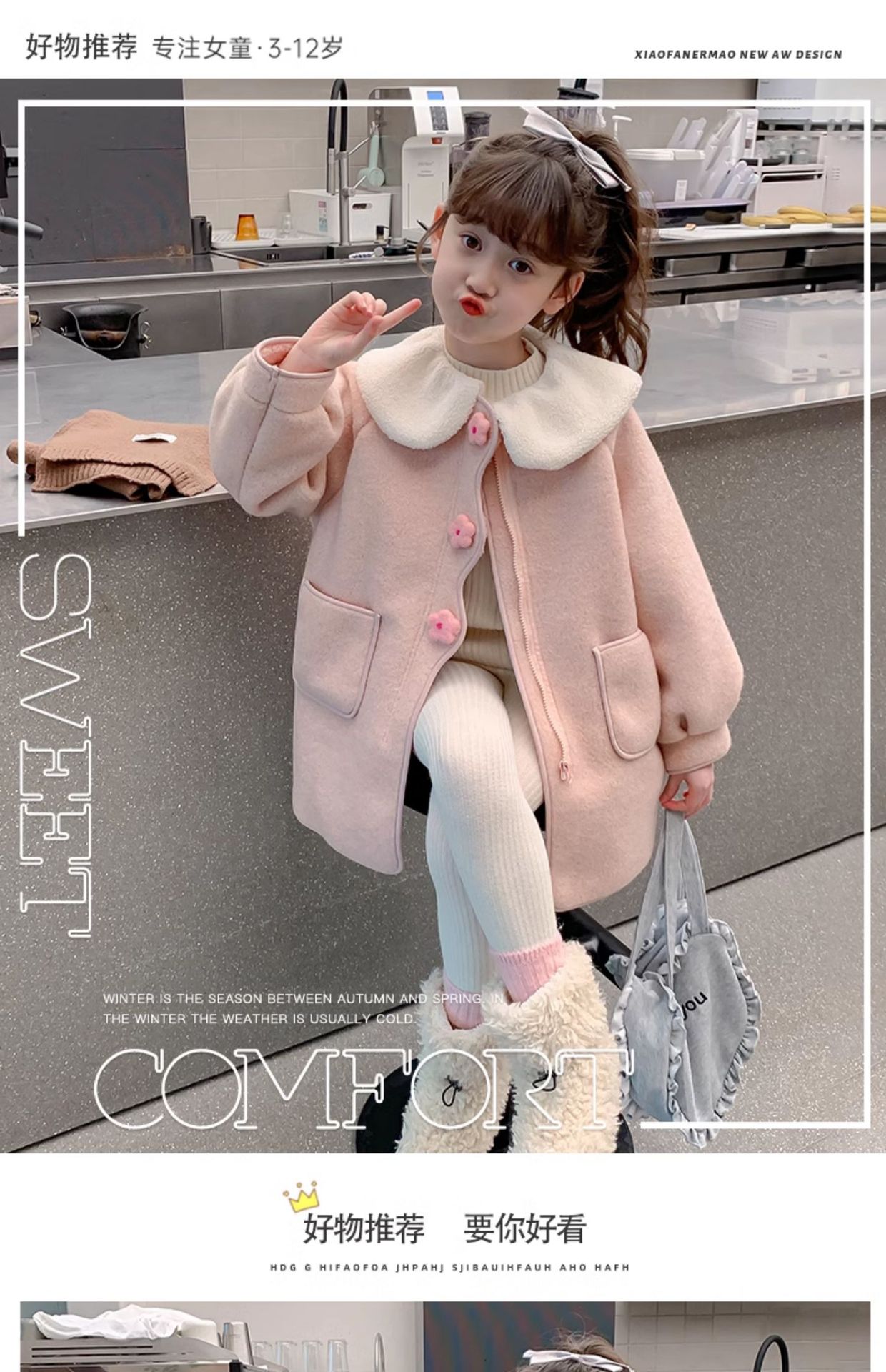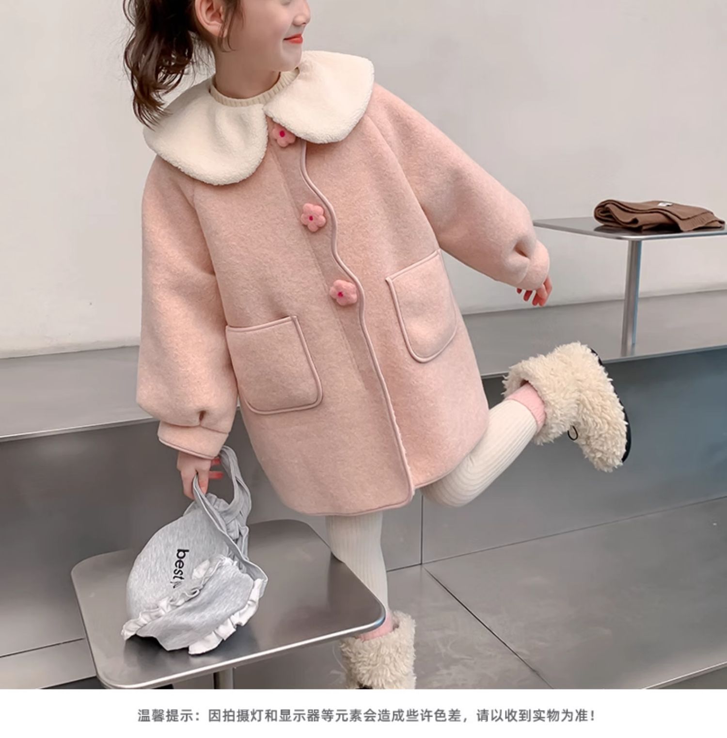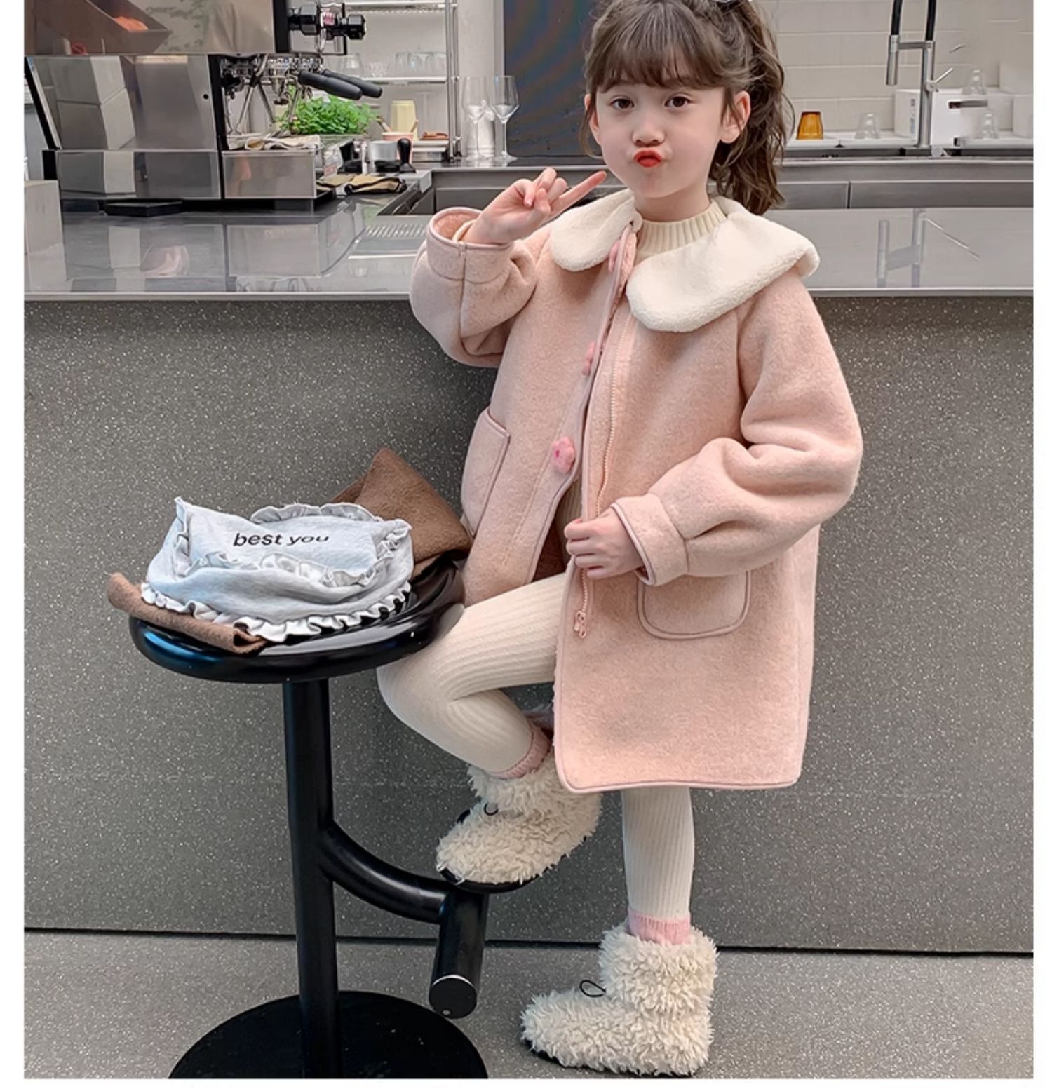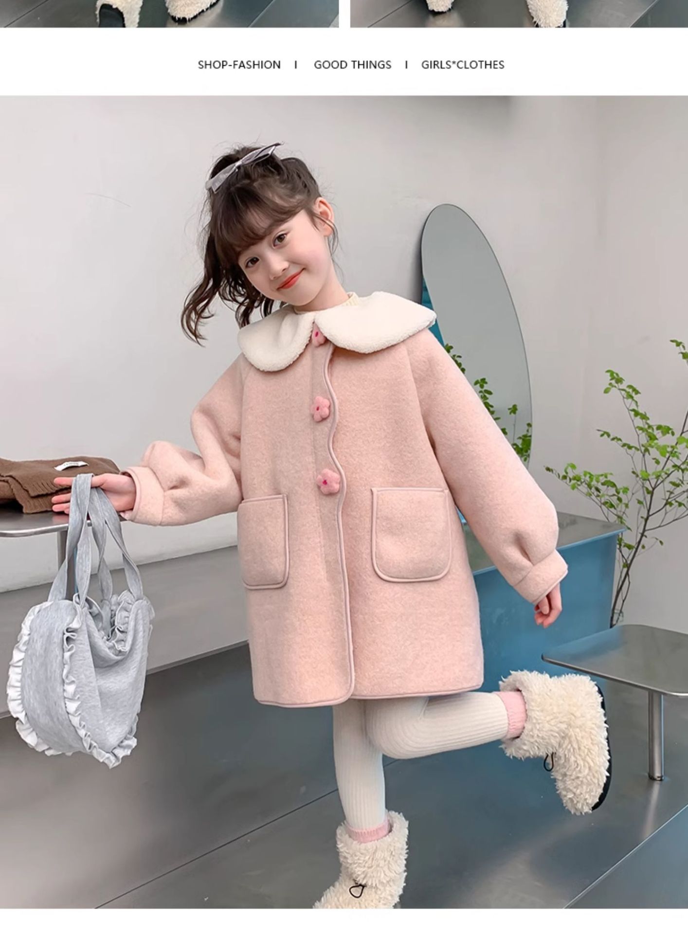 소녀 코트 2024 가을과 겨울 새로운 어린이 서양식 모직 코트 겨울 두꺼운 양고기 양털 탑스토어 가기