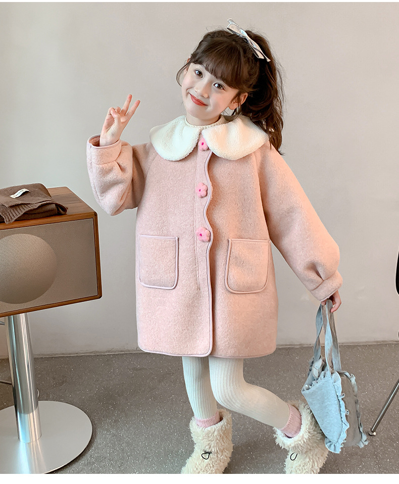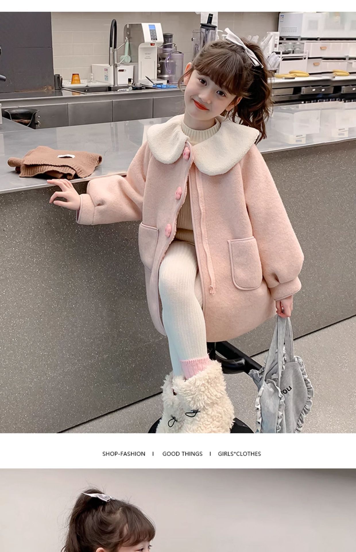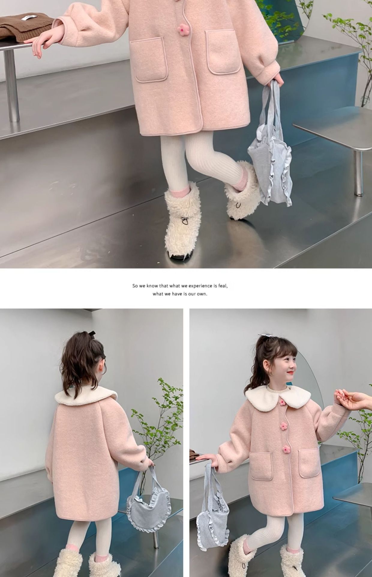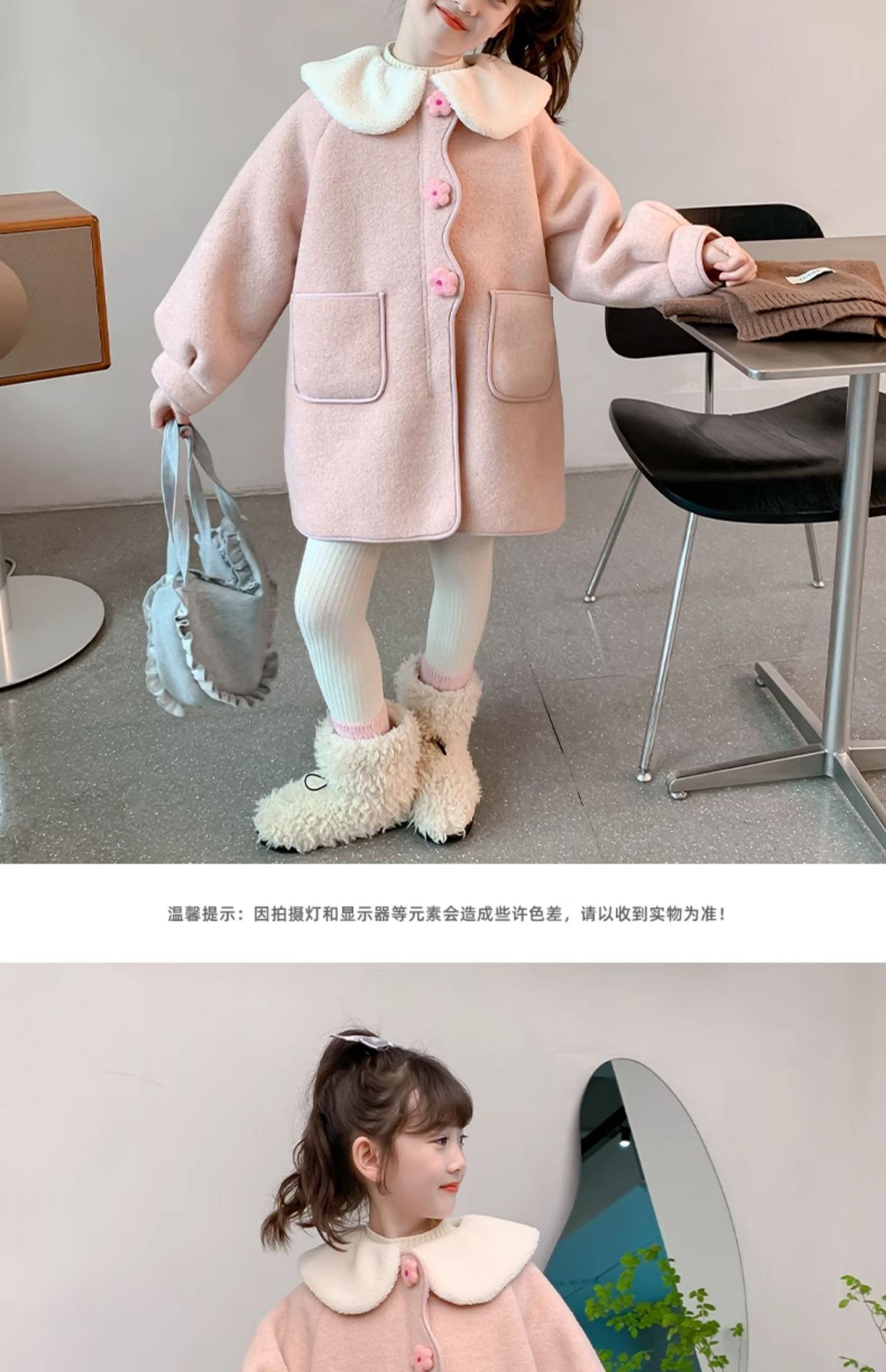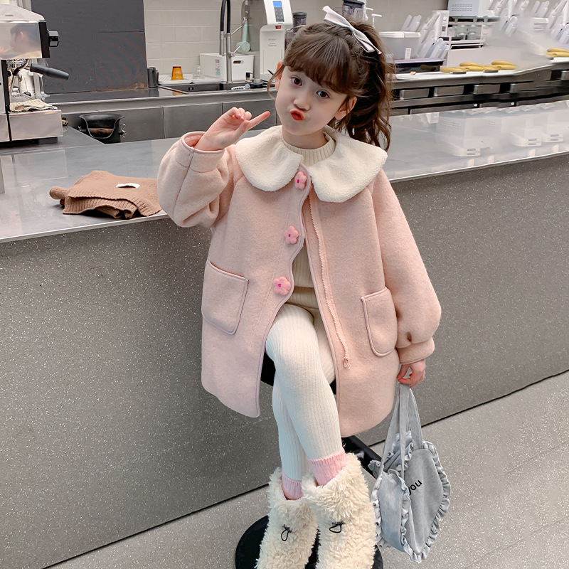 소녀 코트 2024 가을과 겨울 새로운 어린이 서양식 모직 코트 겨울 두꺼운 양고기 양털 탑스토어 가기
