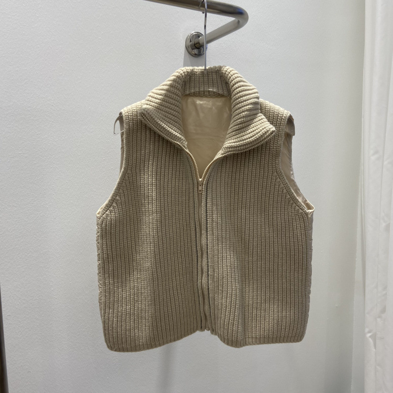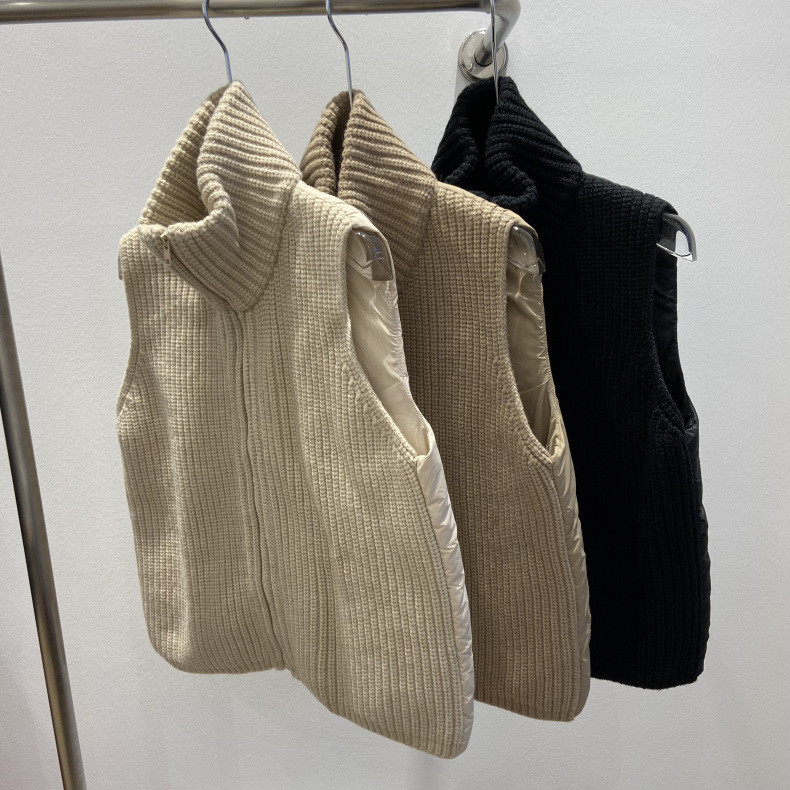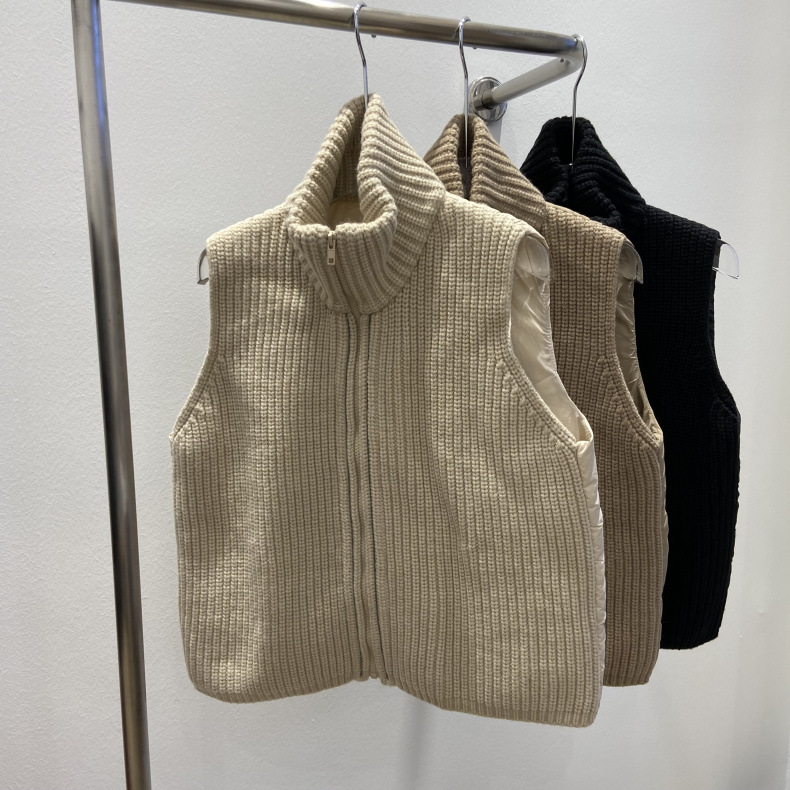 유럽 24 가을과 겨울 새로운 여성 슬림 핏 슬리밍 하이 엔드 레이디스 구스 다운 칼라 니트 스티칭 다운 조끼