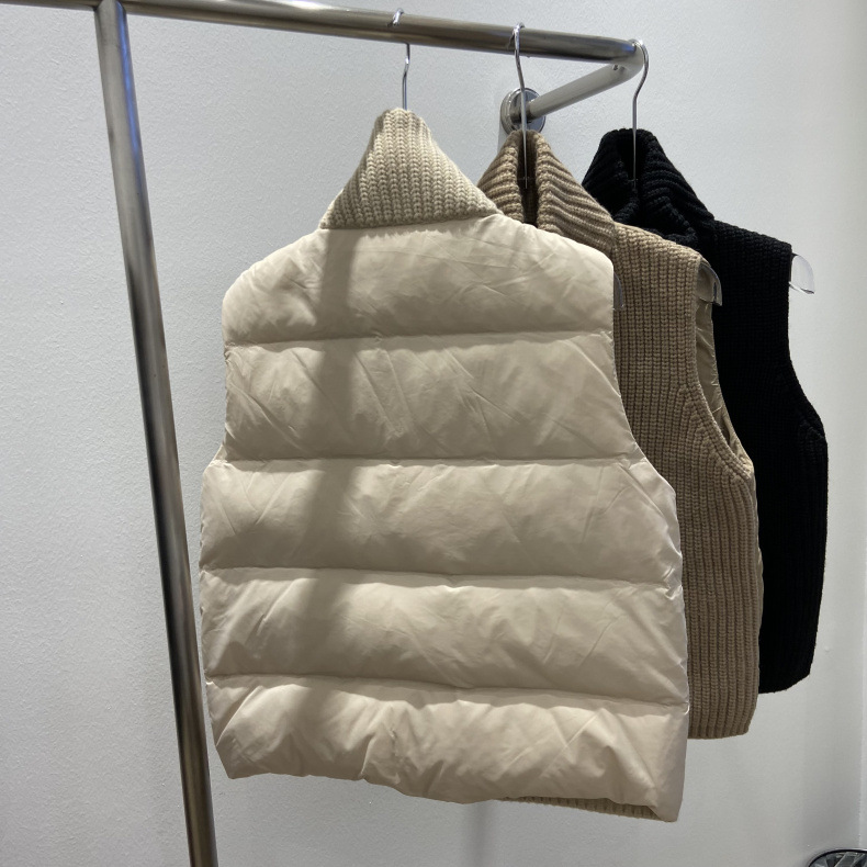 유럽 24 가을과 겨울 새로운 여성 슬림 핏 슬리밍 하이 엔드 레이디스 구스 다운 칼라 니트 스티칭 다운 조끼스토어 가기