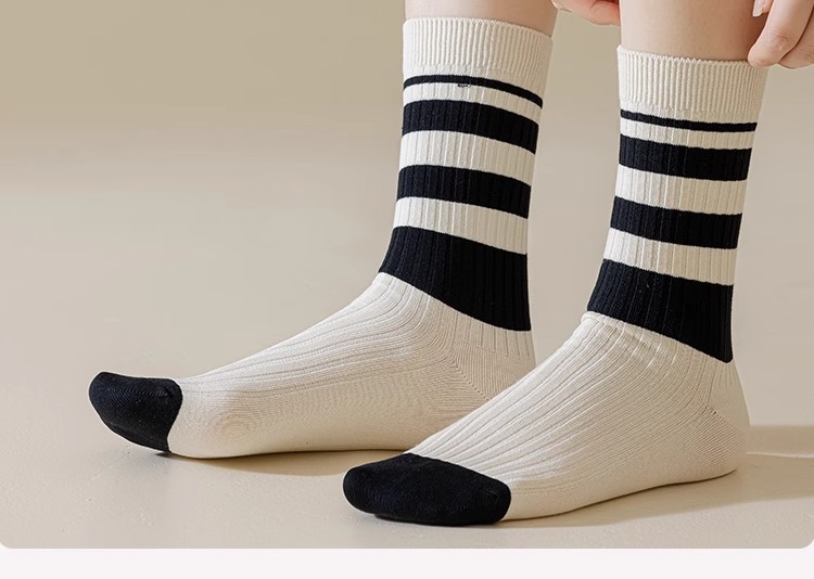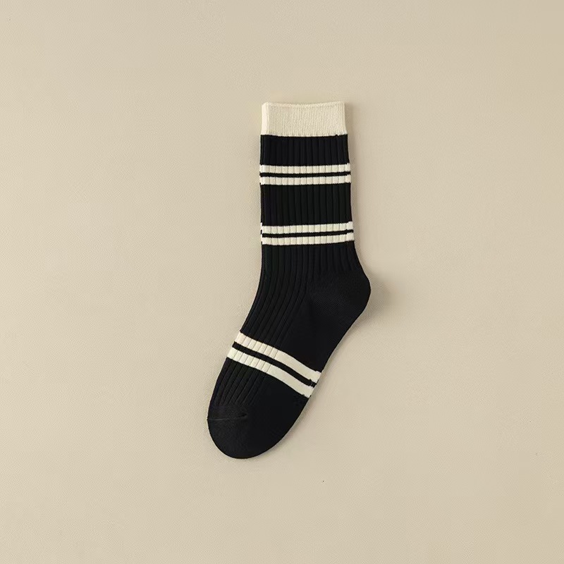 검은 양말 여성의 중간 길이 양말 봄과 가을 단색 줄무늬 여성의 악취 방지 스타킹 땀 흡수성 부드러운 스타킹스토어 가기