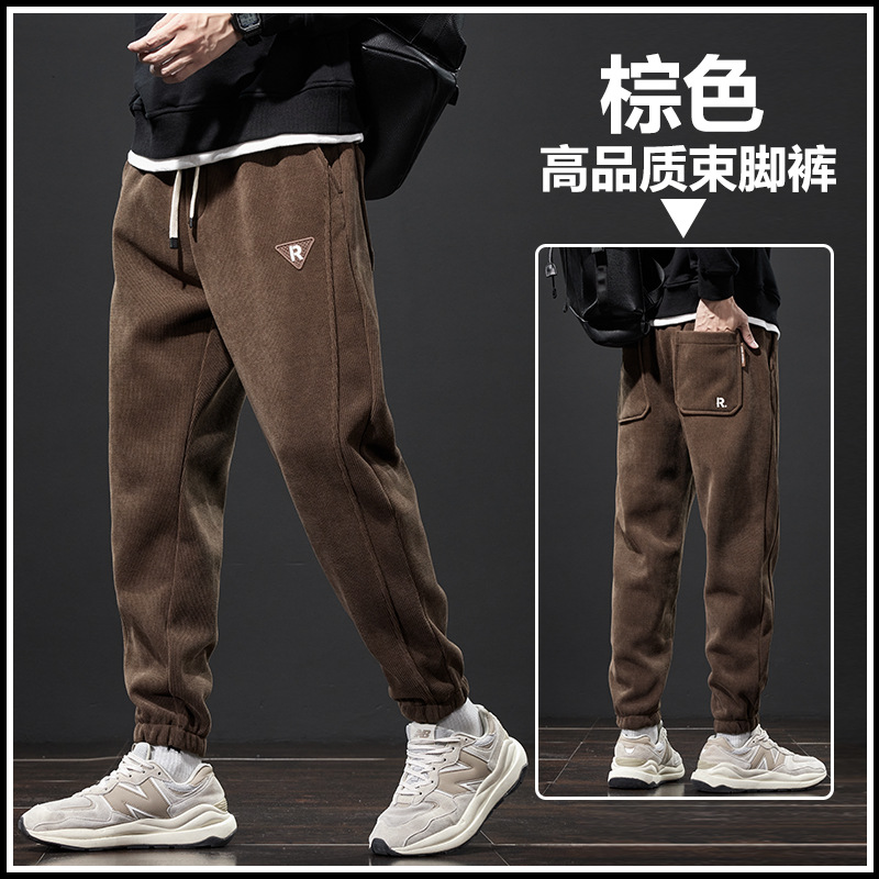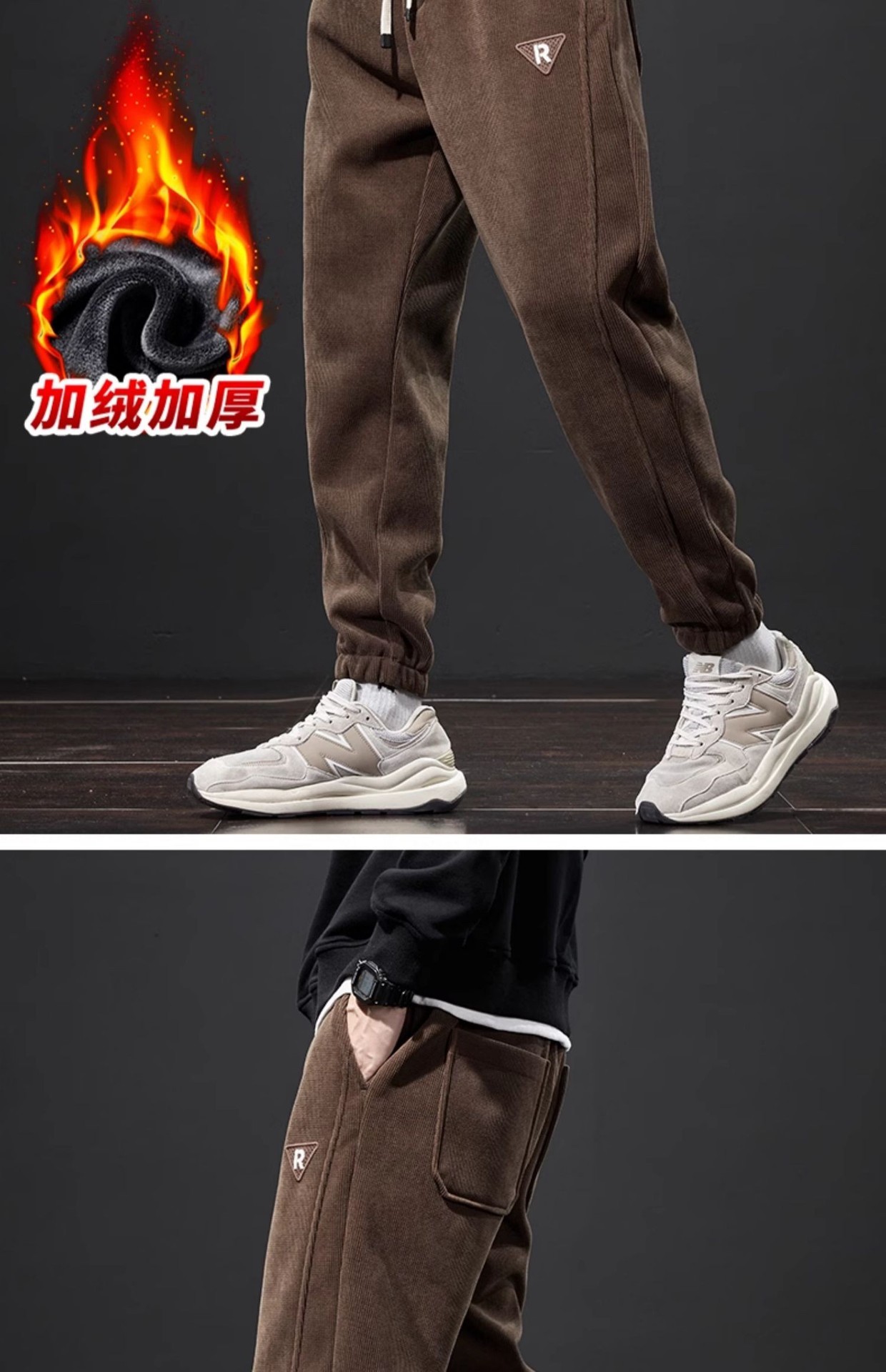가을 겨울용 두꺼운 코듀로이 스웨트팬츠 남성용 2025년 겨울 신상 조임끈 캐주얼 바지