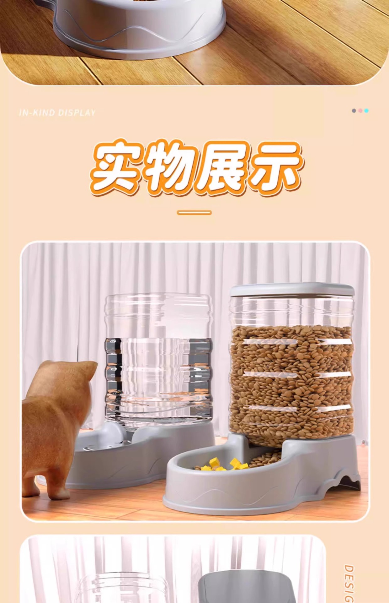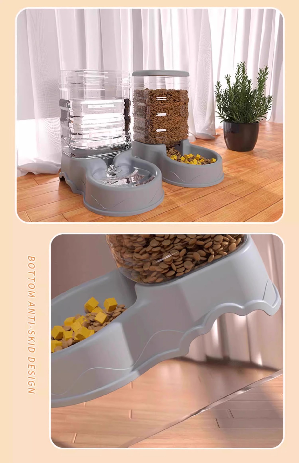 • [7일 외출시 당황하지 마세요] 우아한 그레이 식수대 + 피더 - 3.8L 초대형 용량