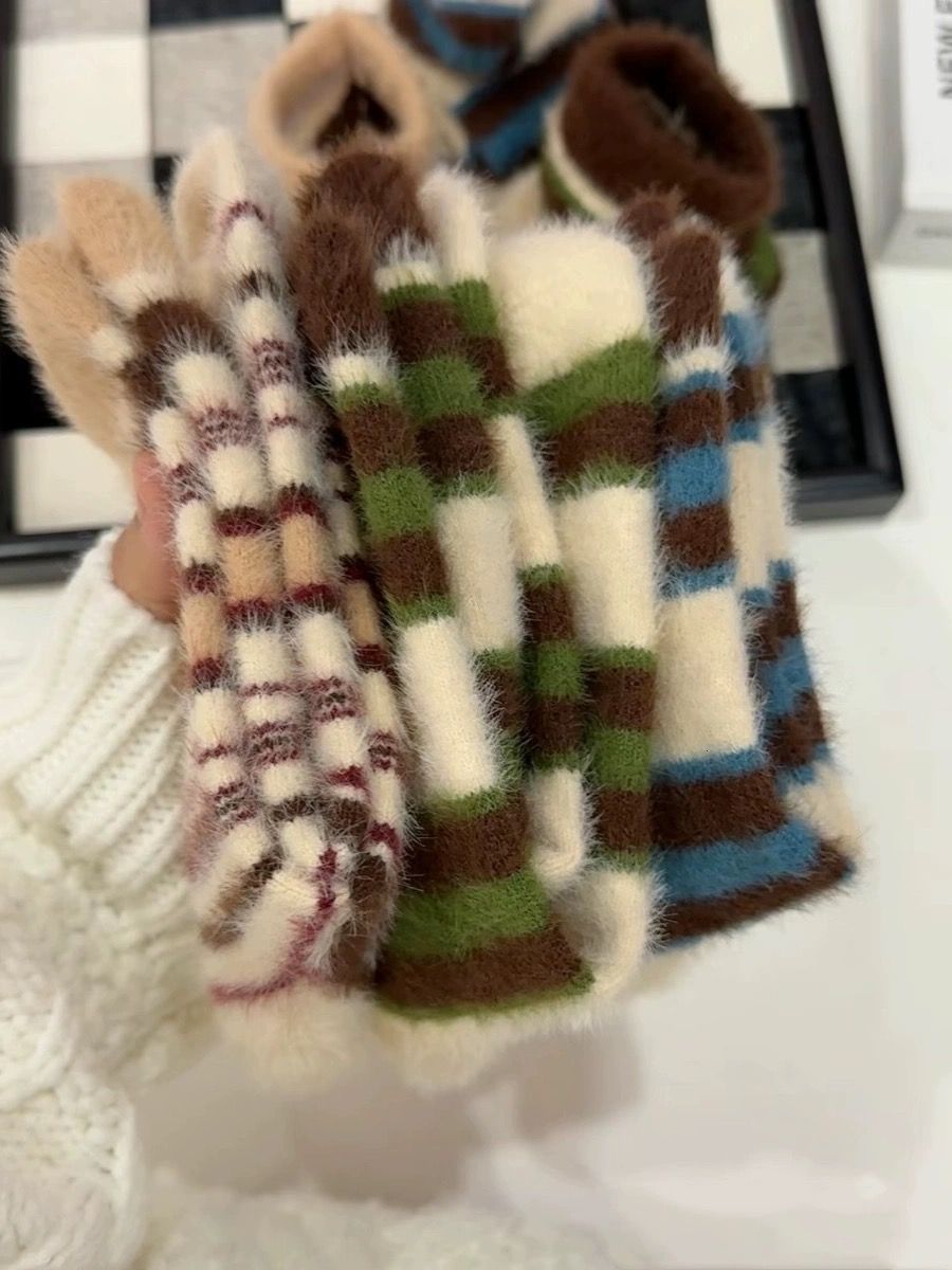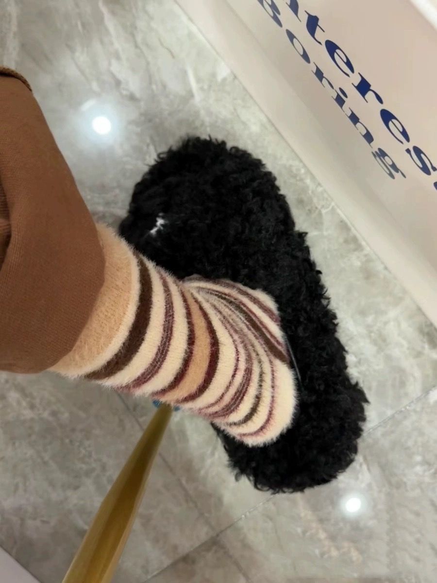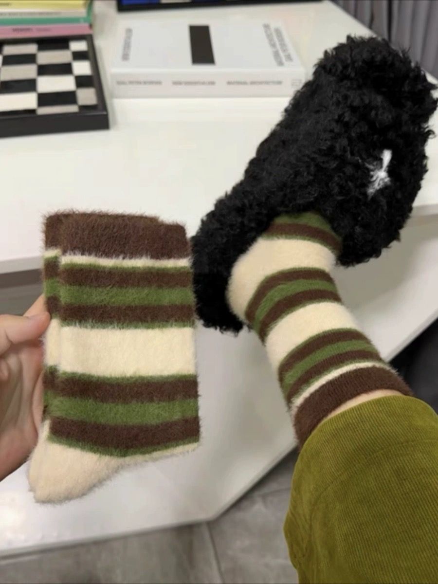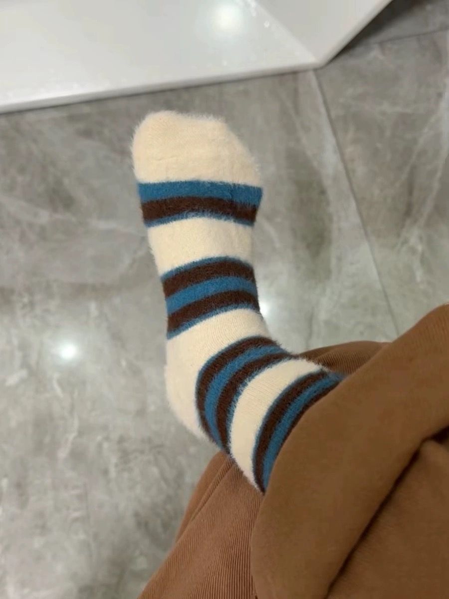 가을과 겨울 따뜻한 봉제 양말 밍크 벨벳 빈티지 컬러 블록 줄무늬 소녀 양말 기모 달 양말스토어 가기