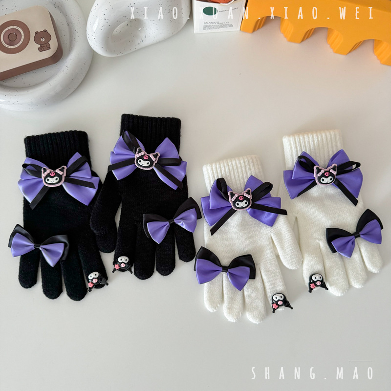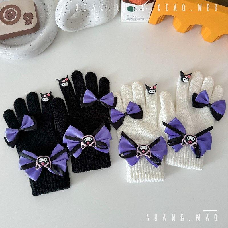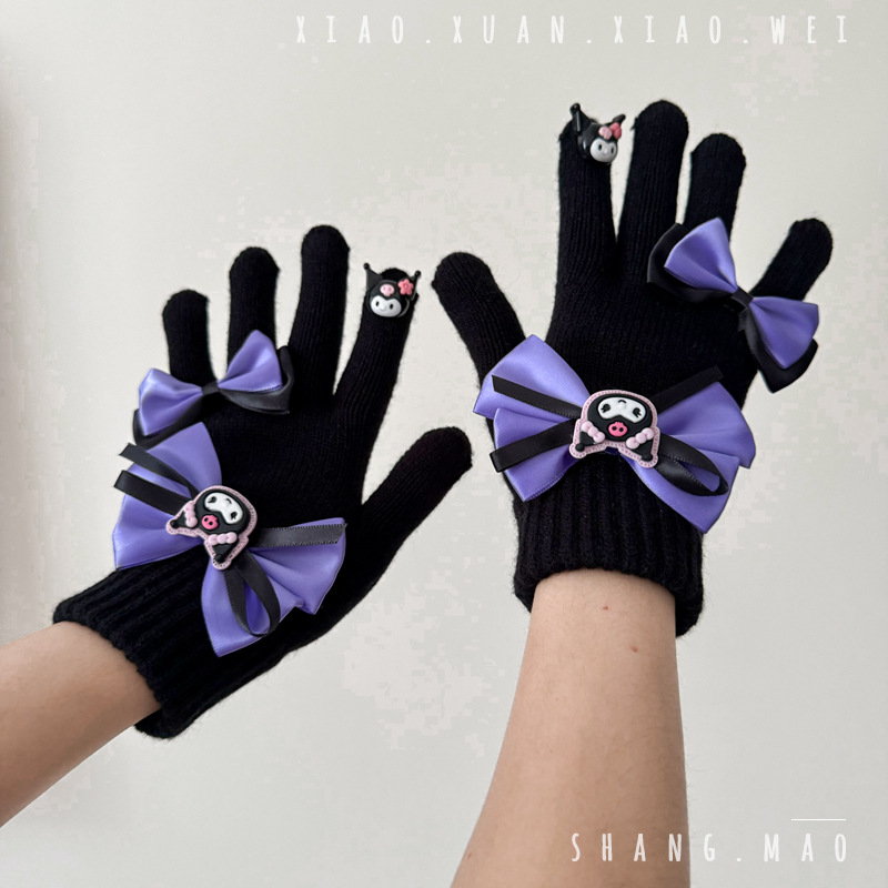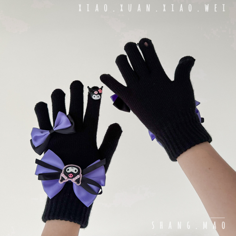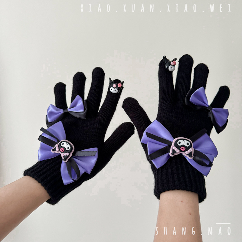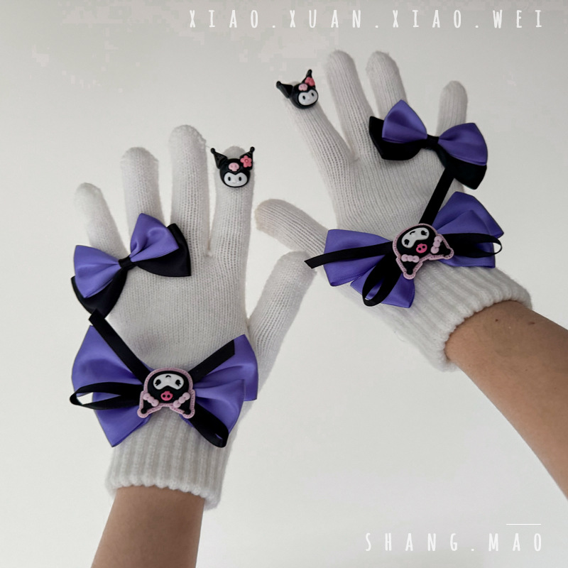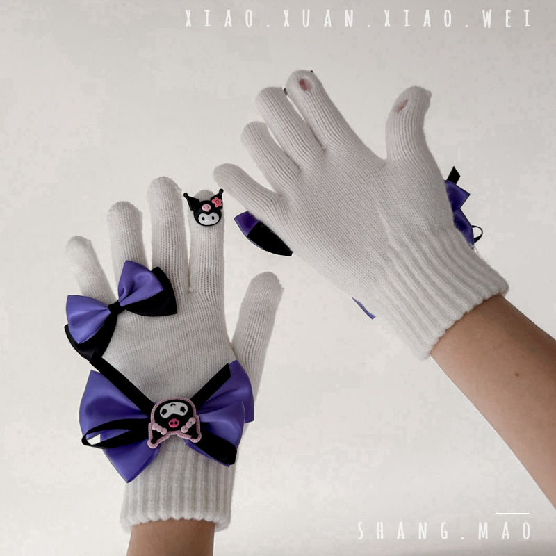 만화 장갑 여성 Kulomi 귀여운 손가락 누설 터치 스크린 재생 휴대 전화 따뜻한 양털 손가락 니트 장갑 조수