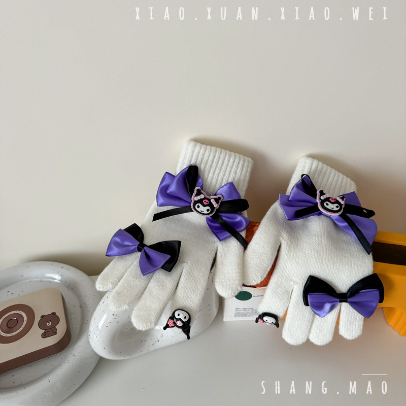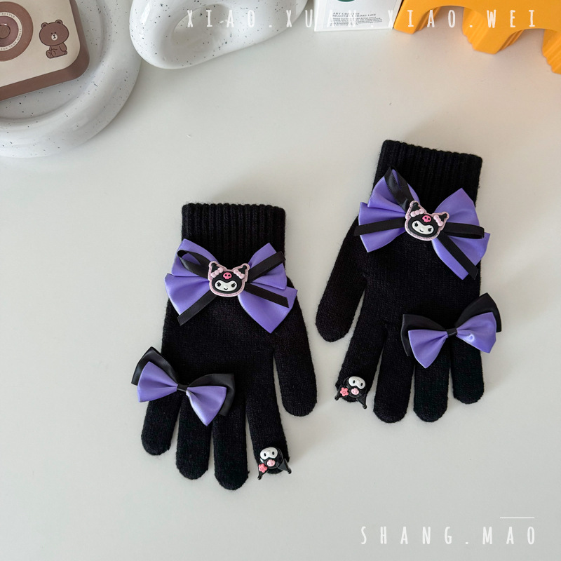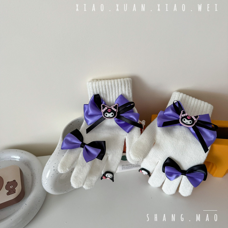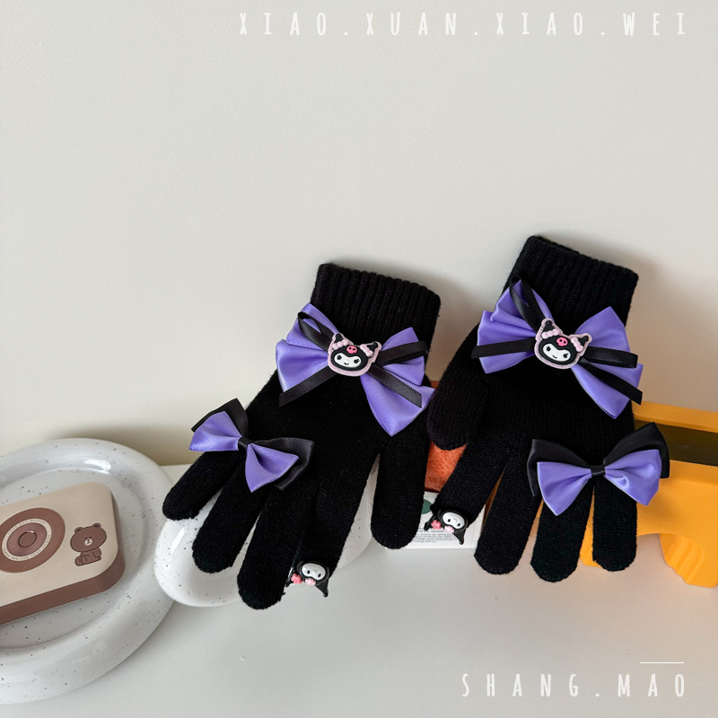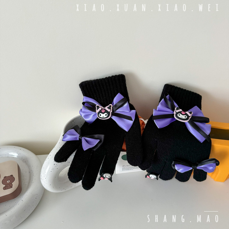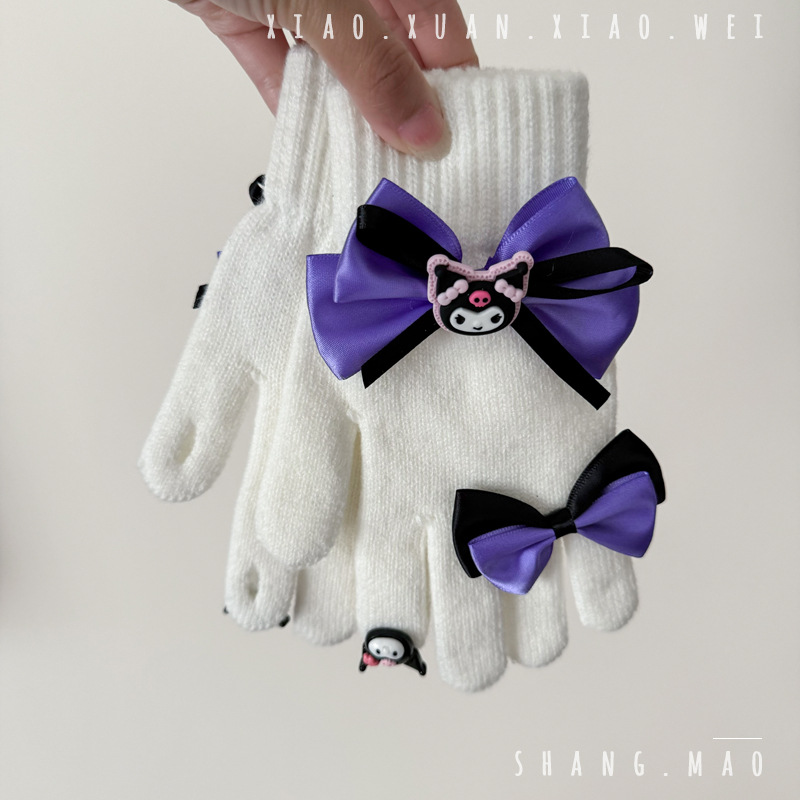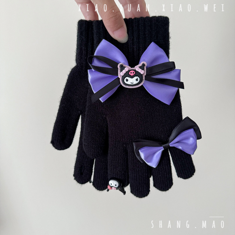 만화 장갑 여성 Kulomi 귀여운 손가락 누설 터치 스크린 재생 휴대 전화 따뜻한 양털 손가락 니트 장갑 조수스토어 가기