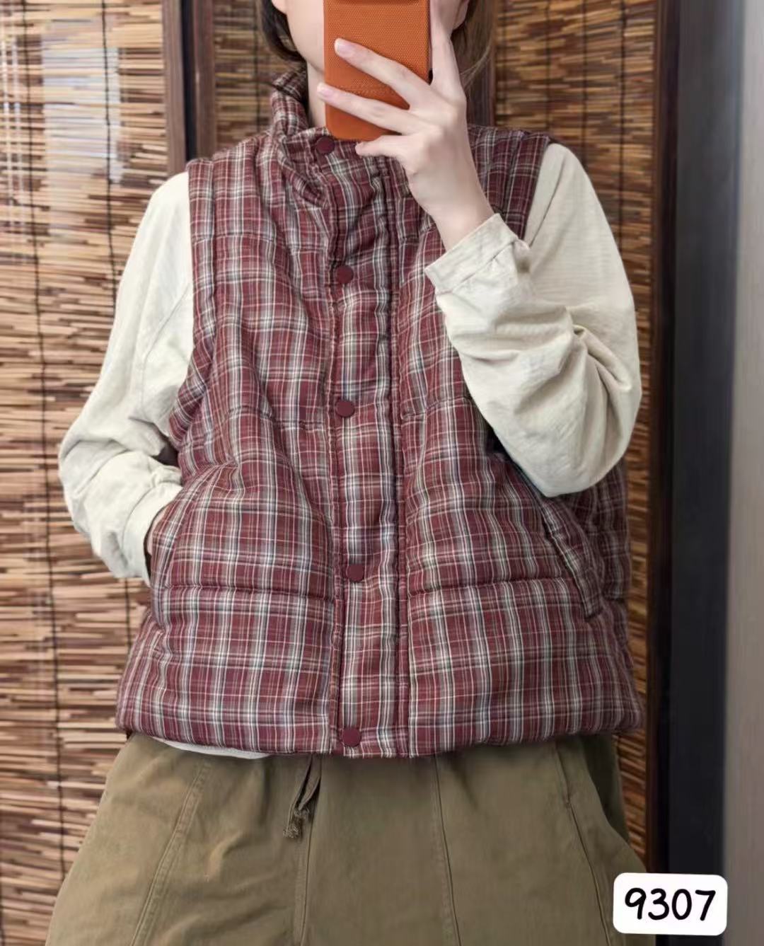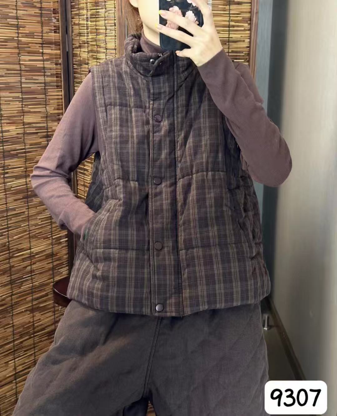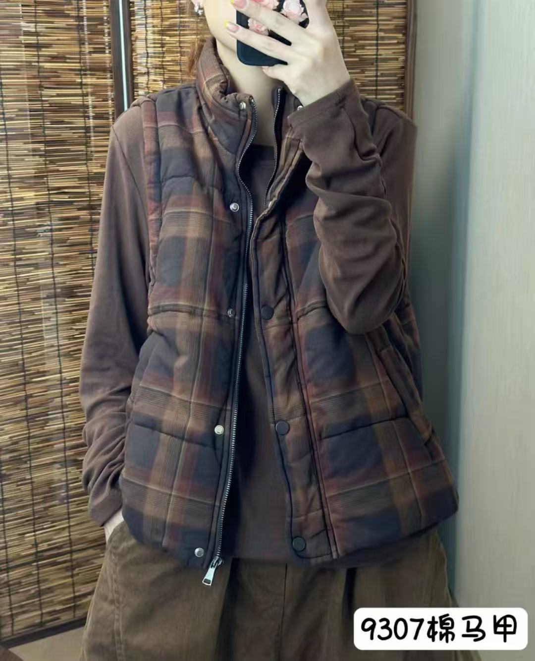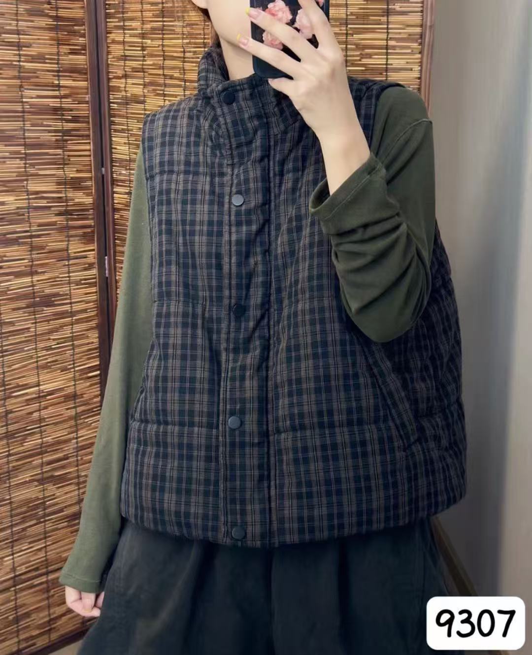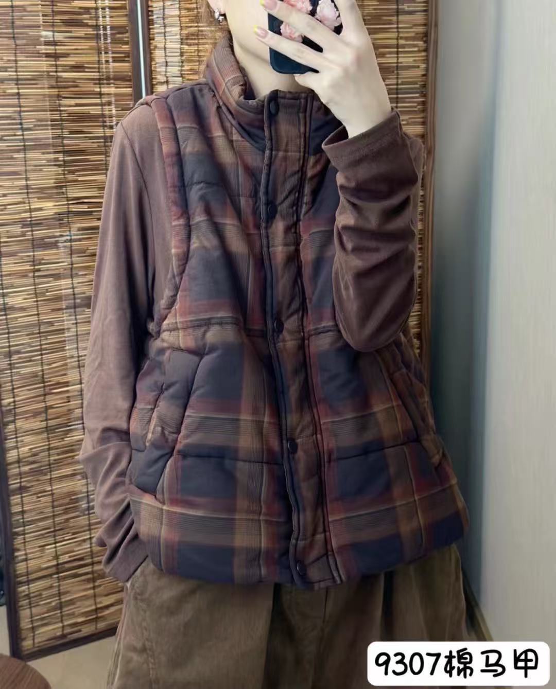 2024 가을과 겨울 한국 스타일 느슨한 간단한 칼라 코튼 체크 조끼 모든 경기 캐주얼 민소매 최고 9307스토어 가기