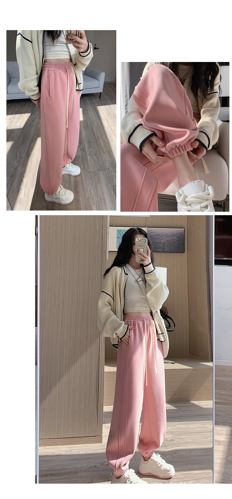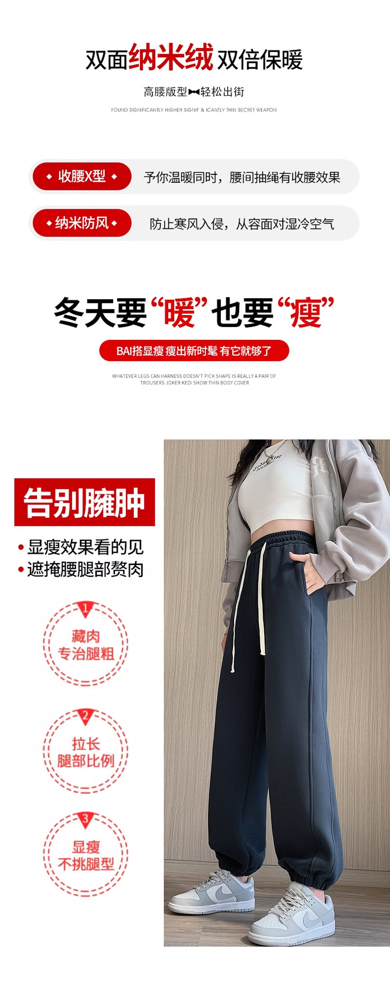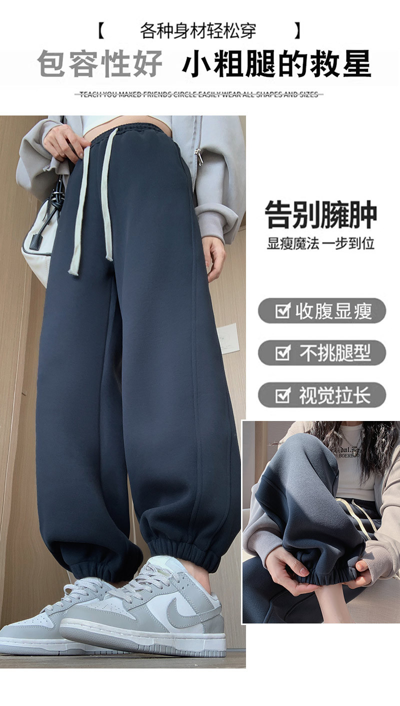 여성용 그레이 스포츠 팬츠, 2025 봄 가을 신상 캐주얼 루즈핏 발목 묶는 따뜻한 스웨트 팬츠, 벨벳 소재, 두꺼운 방풍 팬츠스토어 가기