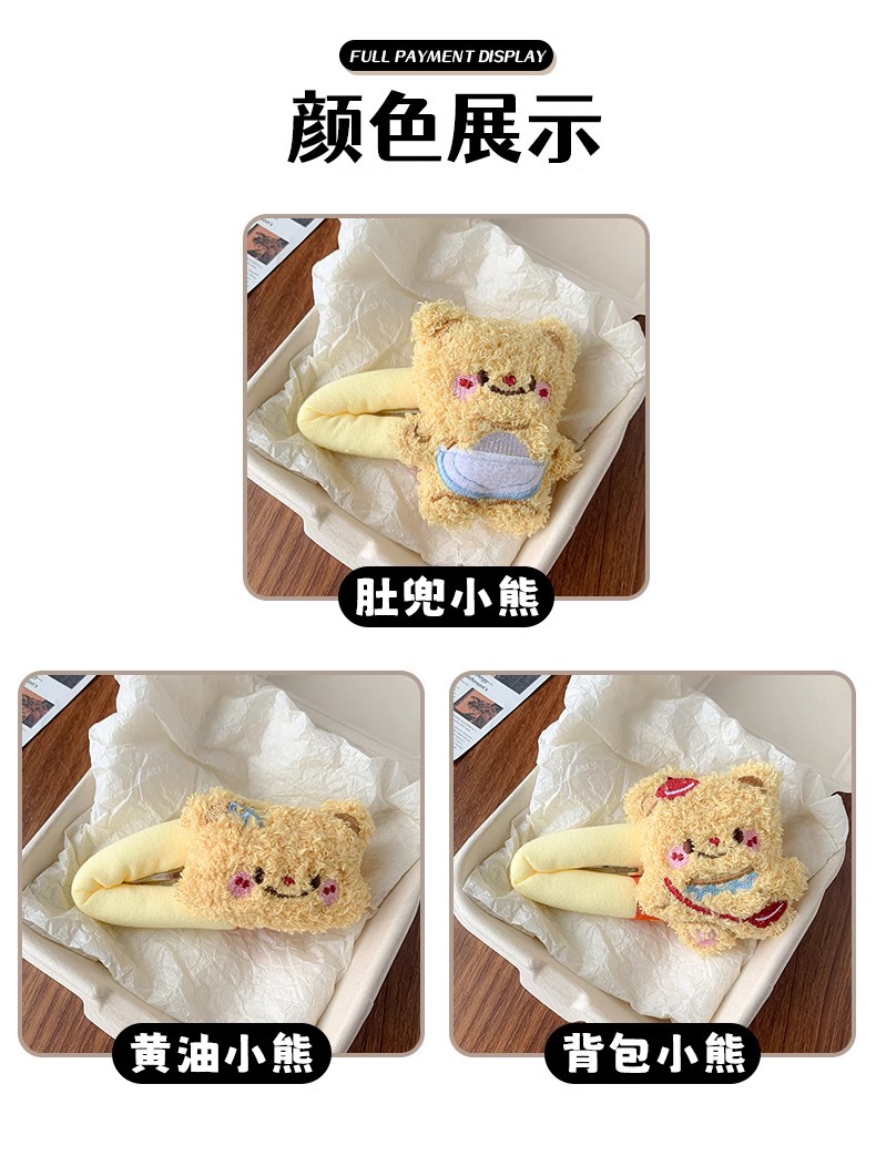재미있는 만화 버터 곰 머리핀 여성용 봉제 귀여운 앞 머리 부러진 머리 마무리 방귀 머리 머리핀 클립스토어 가기