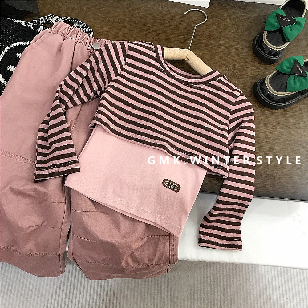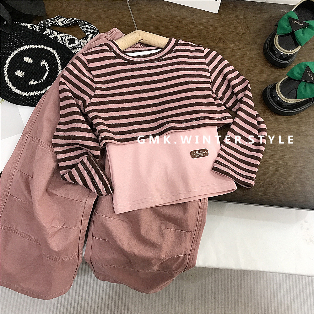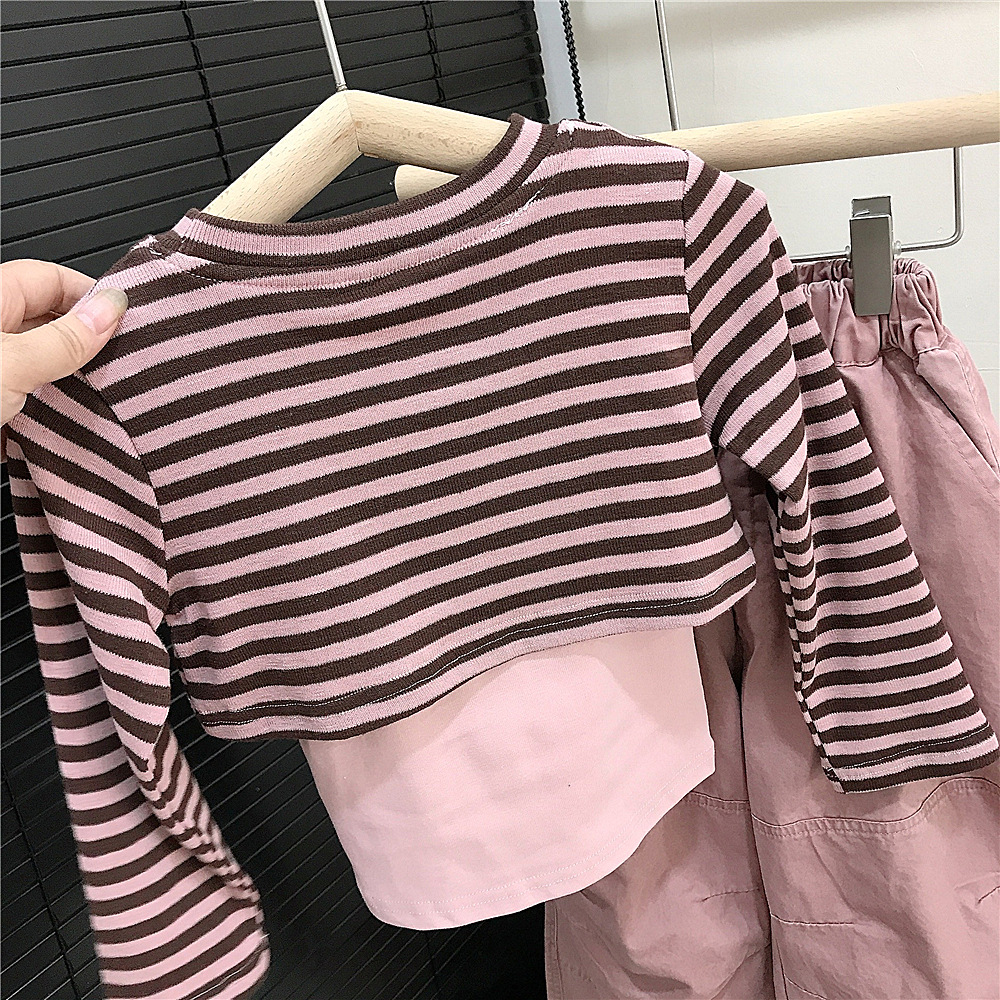 여자 가을 세트 새 어린이 한식 줄무늬 트렌디 쿨웨어 아기 소녀의 가을 스포츠 투피스 대외 무역 세트