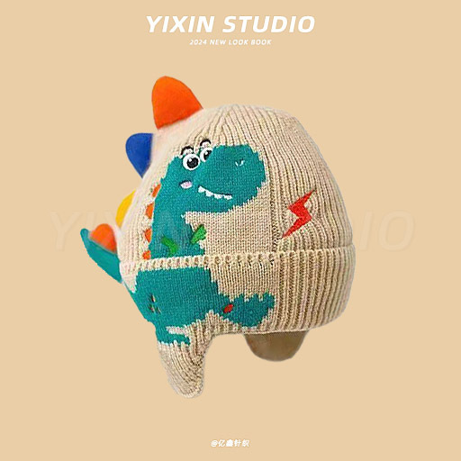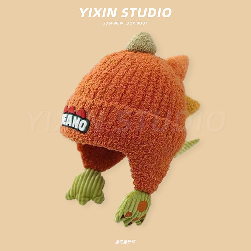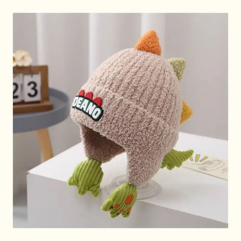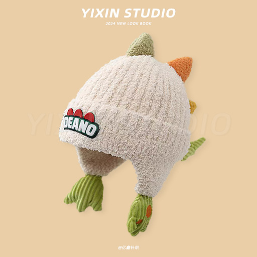3 차원 공룡 봉제 어린이 모자 가을과 겨울 소년과 소녀의 귀 보호 기모 두꺼운 중년 어린이 니트 양모 모자 트렌디스토어 가기