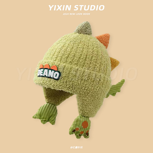 3 차원 공룡 봉제 어린이 모자 가을과 겨울 소년과 소녀의 귀 보호 기모 두꺼운 중년 어린이 니트 양모 모자 트렌디