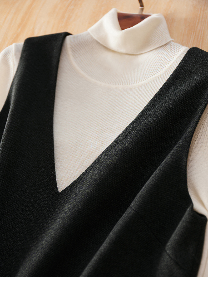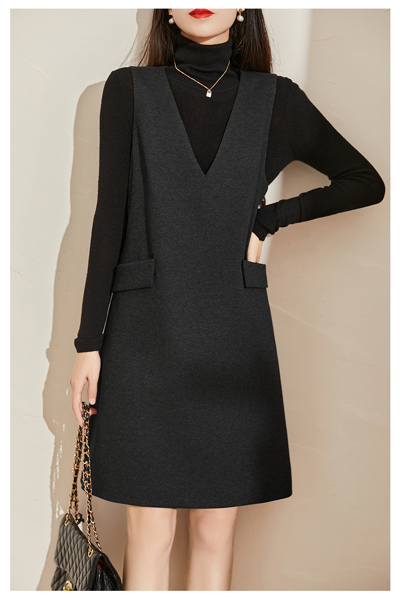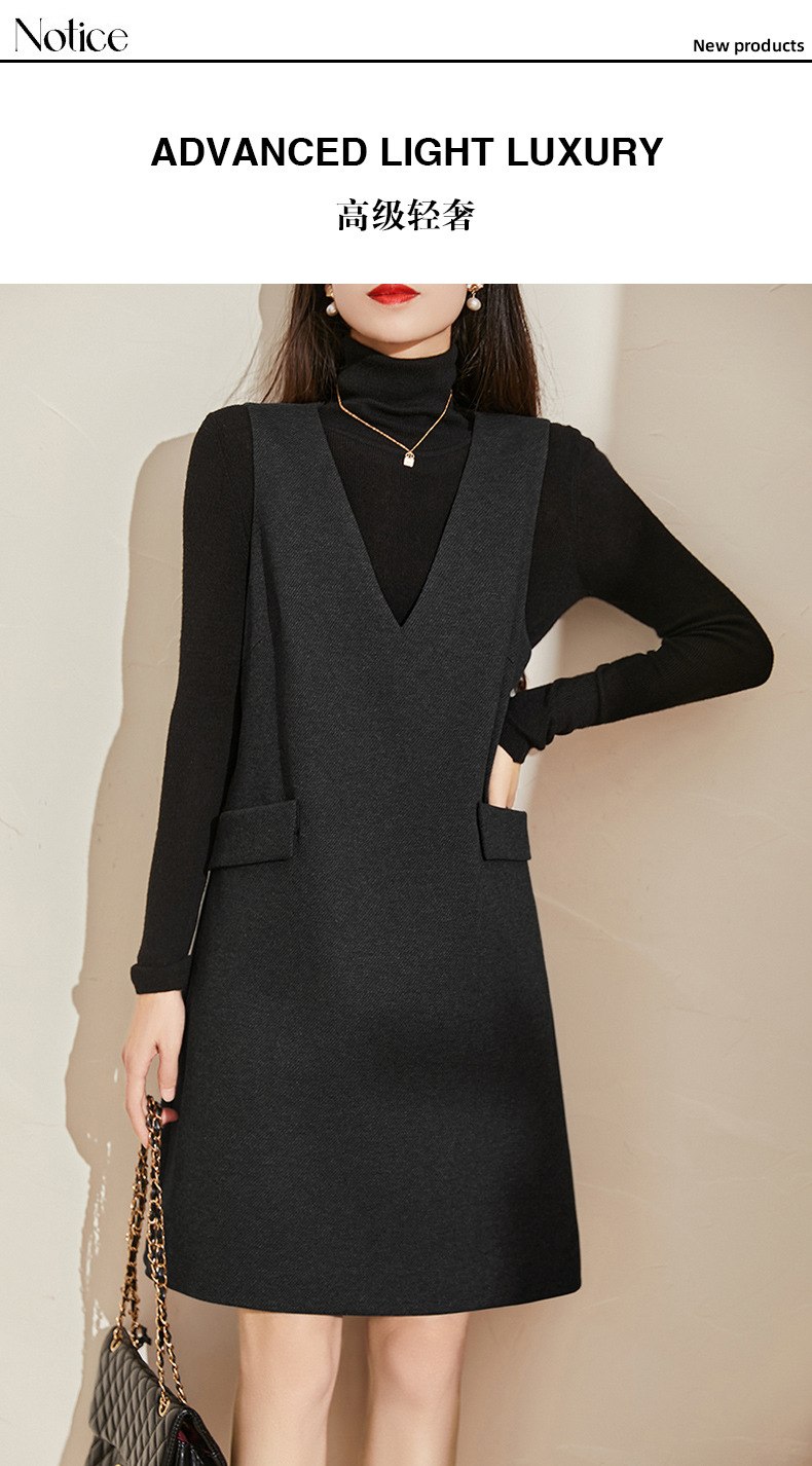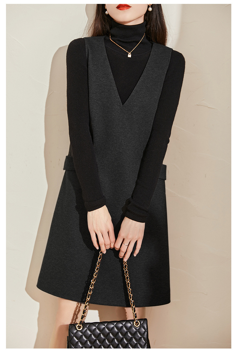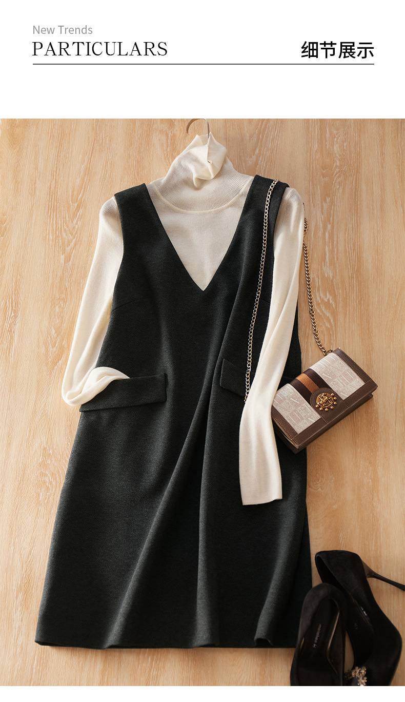 프렌치 허번 스타일 브이넥 울 그레이 원피스 여성용 가을 겨울 신상 2025 민소매 우아한 조끼 원피스스토어 가기