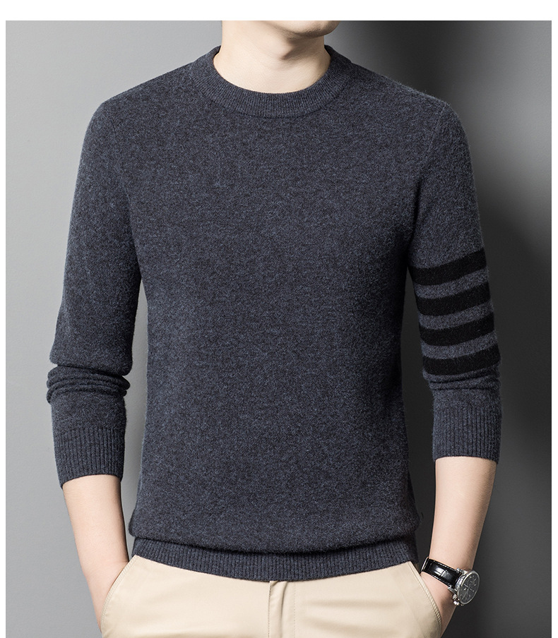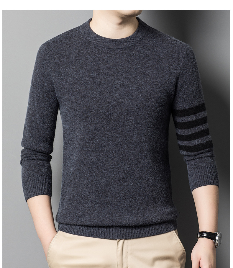 양모 남성 패션과 함께 가을과 겨울 모든 경기 단색 두꺼운 따뜻한 니트 베이스 셔츠 남성용 최고 스웨터
